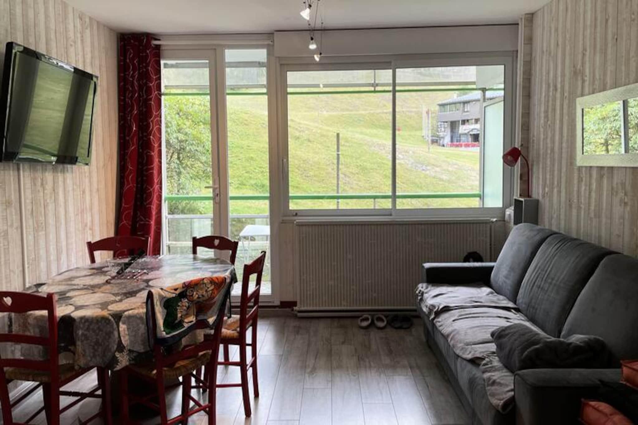 I de maleriske franske Pyrenæer, hvor bjergene møder himlen, tilbyder Residence Sarrière et hyggeligt tilflugtssted for både eventyrere og naturelskere. Denne sydvendte studiolejlighed, beliggende på niveau 1P, kan prale af en betagende udsigt over pisterne og de omkringliggende tinder, hvilket skaber den perfekte kulisse for din alpine flugt. Uanset om du er her for at stå på ski, vandre eller bare slappe af, placerer denne charmerende bolig dig i hjertet af det hele, med butikker kun 100 meter væk og skiløjper blot 50 meter fra din dørtrin. Indenfor har den 29 m² store lejlighed komfortabel plads til op til seks gæster, hvilket gør den ideel til familier eller små grupper. Indgangen fører til et soveområde med en enkeltseng og køjesenge, mens stuen har en dobbelt sovesofa og et tv til hyggelige aftener. Det fuldt udstyrede køkken inkluderer keramisk kogeplade, ovn, mikrobølgeovn/grill, køleskab, opvaskemaskine og endda en vaskemaskine/tørretumbler, hvilket sikrer alle hjemmets bekvemmeligheder. Centralvarme holder rummet varmt og indbydende, mens sengelinned er inkluderet for ekstra bekvemmelighed. Ud over boligen lokker Pyrenæerne med uendelige muligheder for udforskning. Fra spændende skiløjper til rolige vandrestier tilbyder regionen noget for enhver friluftsentusiast. Gæster får eksklusive rabatter på leje af skiudstyr og liftkort gennem SKIPLUS-tilbuddet, hvilket gør det nemmere end nogensinde at omfavne vintereventyrlandet. Om sommeren forvandles området til et paradis for cyklister og vandrere med frodige landskaber og levende lokal kultur at opdage. Uanset om du søger eventyr eller afslapning, lover Residence Sarrière et uforglemmeligt ophold i hjertet af Pyrenæerne. Med valgfri måltidsplaner, rengøringsservice og kæledyrsvenlig indkvartering er hver eneste detalje designet til at gøre din ferie problemfri og mindeværdig.