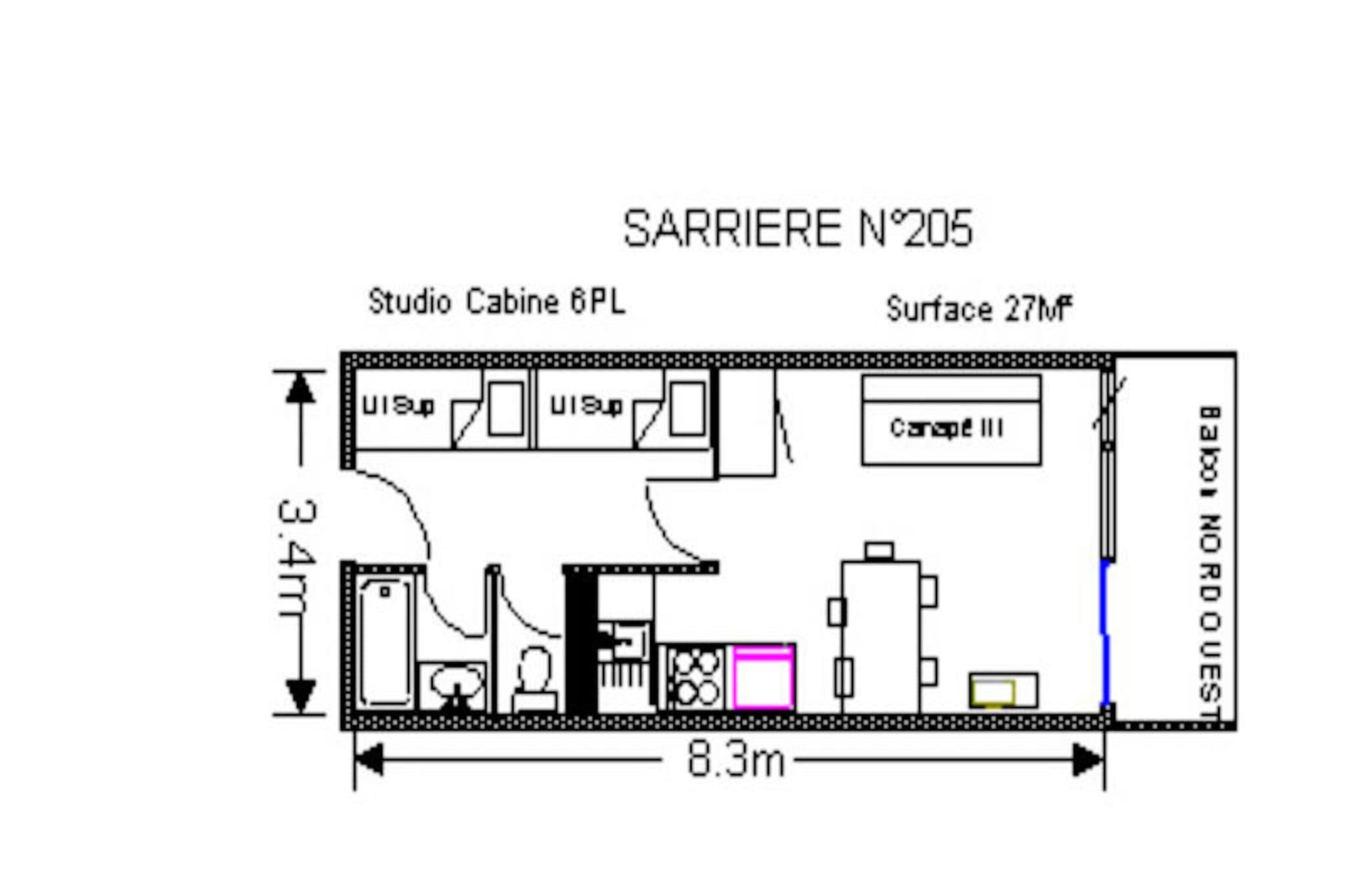 Højt over Pyrenæernes dale tilbyder Residence Sarrière et hyggeligt tilflugtssted for dem, der søger den perfekte alpine ferie. Med en betagende udsigt over bjergene fra den vestvendte balkon inviterer dette studie dig til at slappe af og fordybe dig i de franske Pyrenæers fredfyldte skønhed. Uanset om du er her for spændende vintersport eller rolige sommervandreture, sikrer beliggenheden en uforglemmelig oplevelse i enhver sæson. Kun 50 meter fra pisterne og 100 meter fra lokale butikker møder bekvemmelighed charme i denne veludstyrede bolig. \n\nDette komfortable studie har plads til op til seks gæster, hvilket gør det ideelt for familier eller små grupper. Indgangsalkoven har fire køjesenge, mens stuen har en dobbelt sovesofa for ekstra fleksibilitet. Et fuldt udstyret køkken med keramisk kogeplade, ovn, mikrobølgeovn, køleskab, opvaskemaskine og mere giver dig mulighed for at tilberede lækre måltider efter en dag med eventyr. Badeværelset har badekar, hårtørrer og separat toilet, hvilket sikrer komfort og praktisk anvendelighed. Centralvarme holder rummet varmt og indbydende, mens sengelinned er inkluderet for din bekvemmelighed. \n\nGæster kan nyde eksklusive rabatter på leje af skiudstyr og liftkort gennem SKIPLUS-tilbuddet, hvilket gør din vinterferie endnu mere fornøjelig. Ekstraudstyr såsom måltidsplaner, håndklædeudlejning og rengøringsservice gør dit ophold endnu nemmere. Kæledyr er velkomne mod et gebyr, så du kan tage dine pelsede venner med på eventyr. \n\nUanset om du udforsker pisterne om vinteren eller opdager de frodige stier i Pyrenæerne om sommeren, er Residence Sarrière den perfekte base for at skabe varige minder. Med sin førsteklasses beliggenhed og gennemtænkte faciliteter tilbyder dette bjergferiested alt, hvad du behøver for en afslappende og foryngende ferie.