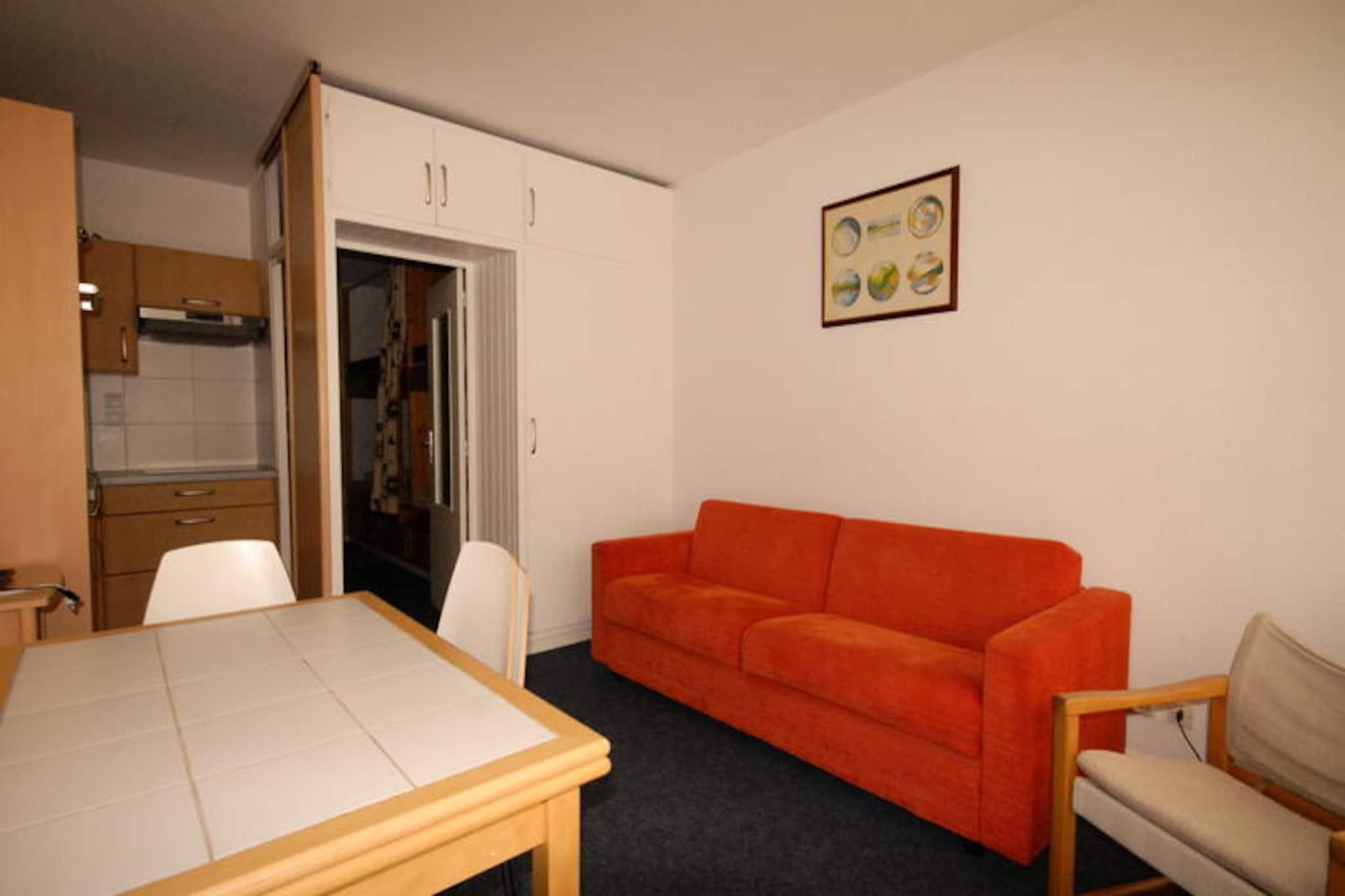 Højt over Pyrenæernes naturskønne skråninger byder Sanctus Residence dig velkommen til et hyggeligt alpint tilflugtssted designet til uforglemmelige bjergoplevelser. Med en betagende udsigt fra sjette sal og en østvendt balkon tilbyder denne studiolejlighed en rolig oase, hvor den friske bjergluft og de fredfyldte omgivelser sætter tonen for din ferie. Uanset om du er her for at stå på ski, vandre eller blot slappe af, lover boligen en perfekt blanding af komfort og bekvemmelighed. Butikker ligger kun 100 meter væk, mens pisterne kun ligger 50 meter fra din dør, hvilket sikrer ubesværet adgang til al den spænding, regionen har at byde på. \n\nIndenfor er det 27 m² store studio omhyggeligt indrettet til at rumme op til seks gæster. Indgangsalkoven har to sæt køjesenge, mens stuen har en dobbelt sovesofa og et tv til afslappede aftener. Køkkenet er fuldt udstyret med keramisk kogeplade, kombineret mikrobølgeovn/ovn, køleskab med frostboks, opvaskemaskine, filterkaffemaskine og brødrister, hvilket gør det nemt at tilberede måltider efter en dag med eventyr. Badeværelset har håndvask, badekar og separat toilet, hvilket sikrer praktisk komfort og komfort under dit ophold. Centralvarme holder rummet hyggeligt, og sengetøj er inkluderet for ekstra bekvemmelighed. Sanctus Residence tilbyder også en række valgfrie ekstrafunktioner, herunder måltidsplaner, håndklæder, rengøringsservice og tidlig indtjekning. Gæsterne kan nyde eksklusive rabatter på leje af skiudstyr og liftkort gennem SKIPLUS-programmet, hvilket gør det til et ideelt valg for vintersportsentusiaster. Kæledyr er velkomne mod et gebyr, og der tilbydes vaskeriservice i receptionen. Uanset om du udforsker pisterne eller nyder udsigten over bjergene, er Sanctus Residence den perfekte base for at skabe dyrebare minder i hjertet af Pyrenæerne.