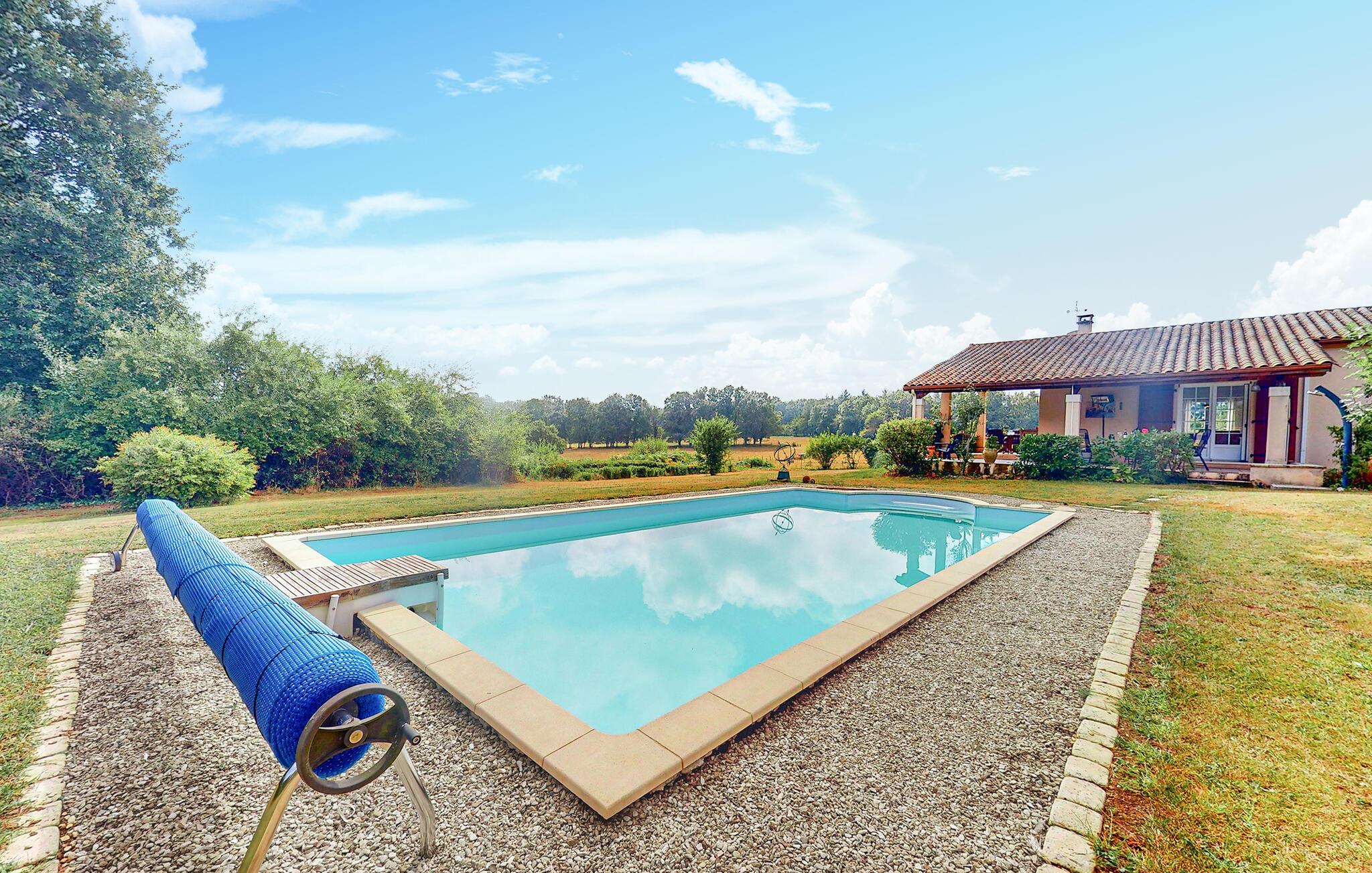 Slap af i dette komfortable og indbydende feriehus med pool.