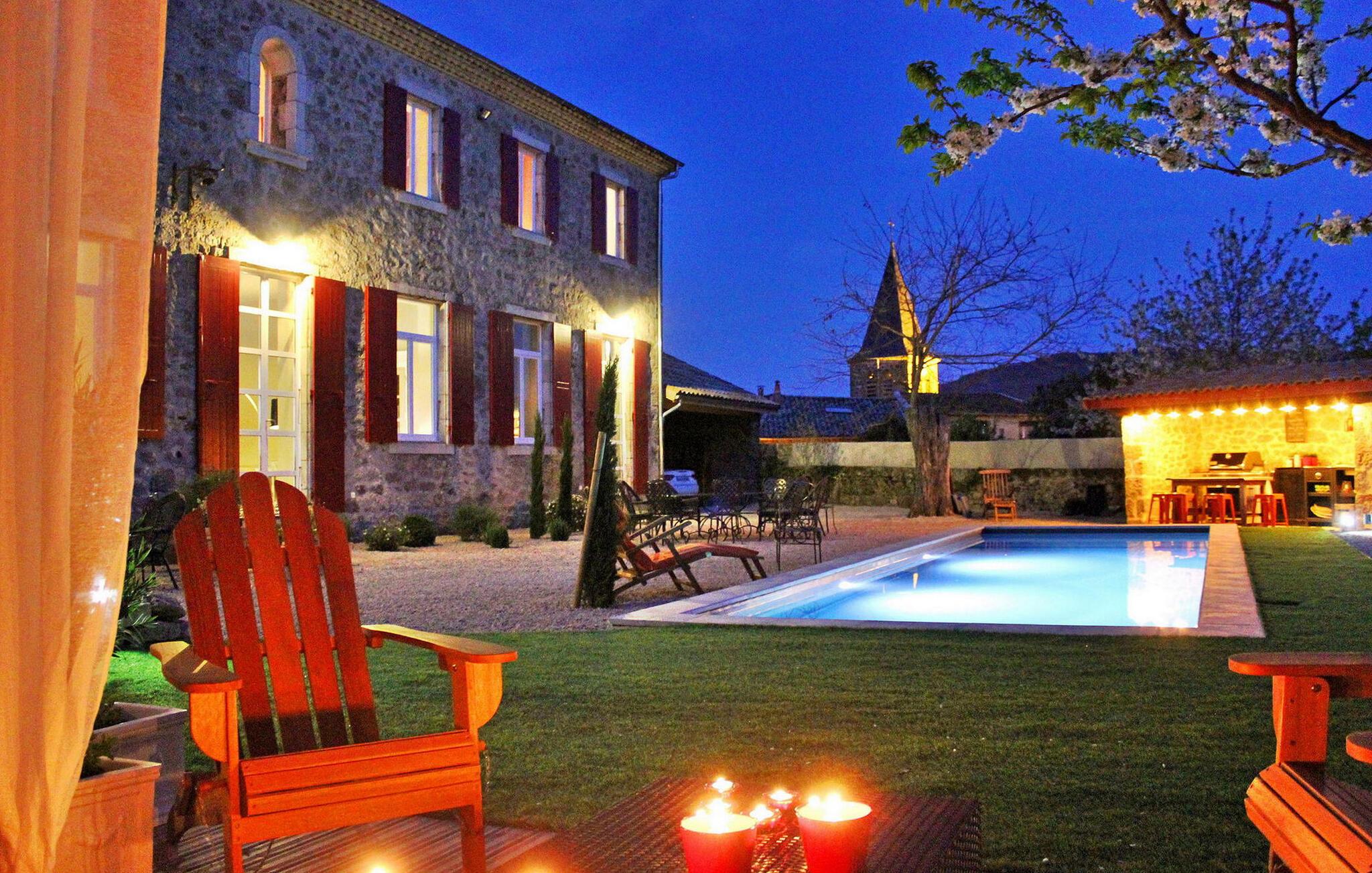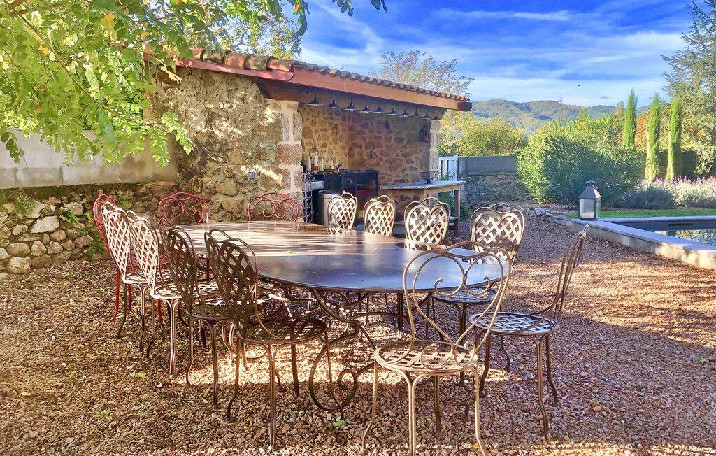 Oplev et rummeligt ferieparadis beliggende i hjertet af landsbyen Empurany, der tilbyder en privat opvarmet swimmingpool til en idyllisk ferie i Ardèche. Denne tidligere drengeskole, nænsomt renoveret i 2021, præsenterer en blanding af historisk charme og moderne bekvemmeligheder. Stueetagen har et generøst opholdsområde med et veludstyret køkken, en hyggelig pejsestue og et dedikeret brætspilsområde. Køkkenet kan prale af moderne apparater, herunder en central ø, hvilket gør det til et knudepunkt for kulinariske lækkerier. På første sal tilbyder soveværelserne forskellige sovearrangementer, suppleret med brusere og flere toiletfaciliteter. En lille tv-stue tilbyder et afslappende sted at slappe af. Udenfor lokker flere terrasser, herunder en grus spiseplads i skyggen af et gammelt akacietræ, perfekt til udendørs måltider. To overdækkede terrasser indbyder til afslappede stunder - en designet som et loungeområde og en anden udstyret med et tekøkken med en Weber-grill, ideel til kulinariske eventyr. Udendørsrummets højdepunkt er den private opvarmede swimmingpool, der måler 10m gange 3m, komplet med et alarmsystem for sikkerhed. Solsenge og liggestole tilbyder afslapning midt i en fantastisk udsigt. Huset ligger i hjertet af landsbyen Empurany i det historiske område, med en uhindret udsigt. En købmandsbutik med et brøddepot, et bar-tobak-postkontor, en restaurant, bowlingbaner, en bypark, en klatrevæg, svømning muligt i floden le Doux nedenfor landsbyen. Flere butikker ligger 8 km væk. Sportsaktiviteter: Tennisbaner, minigolf, swimmingpool, restauranter, boulodrome, cykelskinne, Turistaktiviteter: Le mastrou, lille veterantog, Tourno, Boucieu le Roi, Lamastre Sightseeing i området: Lake Devesset på 1 time: Windsurfing, sejlads både, vandcykler, minigolf, tennis... Chambon sur Lignon 1 time væk: 18-hullers golfbane. Mont Mezenc, Mont Gerbier de jonc-kilden til Loire, 1,30 times kørsel. Ridning i Cheylard: 20 min
