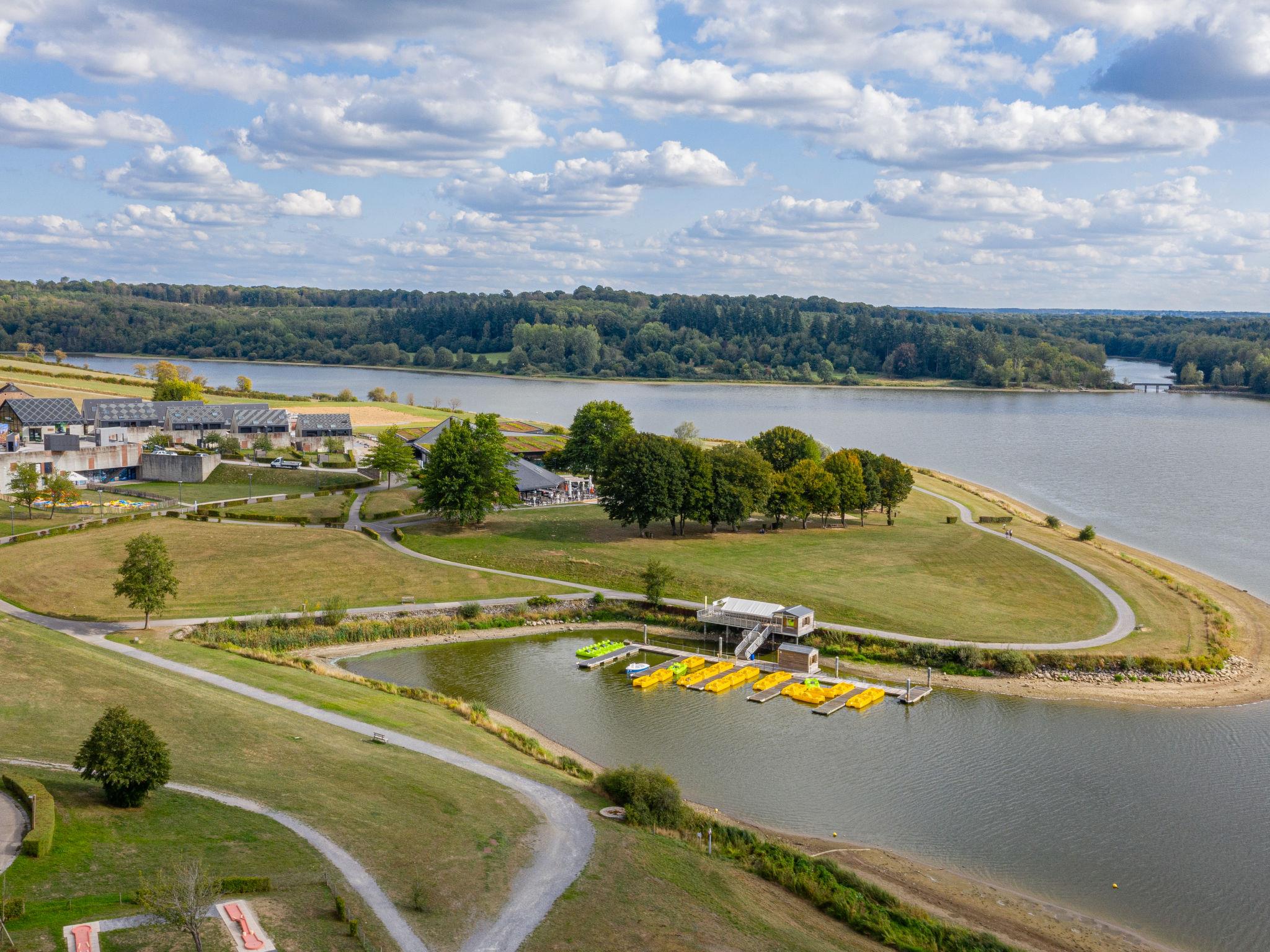 On the north shore of Lac du Valjoly, the residence is made up of 180 accommodations divided into semi-detached cottages or hamlets of semi-detached single-storey timber-framed cottages residence, surrounded by trees and meadows. Outside the resort, 3 km from the centre of Eppe Sauvage. In the complex: reception, internet access, washing machine, tumble dryer (for shared use, extra). Parking. Grocery, restaurant 500 m. Hiking paths: Parc Naturel Régional de l'Avesnois. Please note: car recommended. The photograph shows a typical example. Additional accommodations can be booked. Free access to the indoor aquatic center with wave pool, rapid river, waterfalls, massage jets.... Relaxation area, activities to be paid on site: sauna, hammam, nautical base, equestrian centre, mountain biking. Satellite TV (extra). TV rental 35 euros/week. Free Wi-Fi at reception.