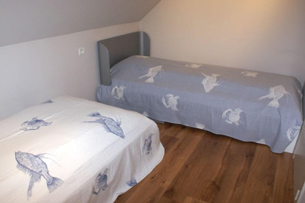 Stueetage: (Stue(enkeltsovesofa, Fjernsyn(kabel), Fjernsyn(digital), Fjernsyn(antenne), kakkelovn), guest toilet(, toilet)) På 1. etage: (soveværelse(, , enkeltseng, enkeltseng, enkeltseng), soveværelse(, , dobbeltseng)) , , Køkken(kogeplade, brødrister, komfur, kaffemaskine, ovn, køleskab), badeværelse(, toilet, badekar, bruser, håndvask), balkon, varme, terrasse(havemøbler, solstole), parkering