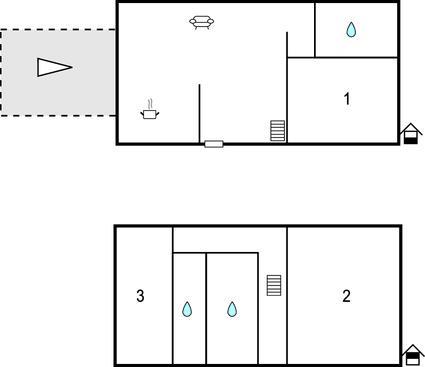 Badeværelse (nr. 1) - WC. Varmt og koldt vand. Bruser