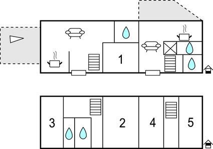 Indkvarteringen er ideel til 2 familier og består af 2 parcelhuse, hver med egen indgang, køkken og stue. Indvendigt kommunikerer de 2 dele kun gennem en dobbeltdør mellem soveværelse 2 og 4 på 1. sal.