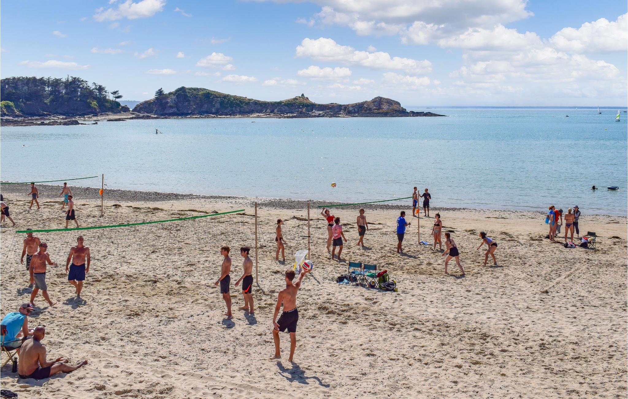 Et par skridt væk ligger havnen i Erquy, en fiskehavn, hvor fiskerne losser skaller og sælger dem på auktion. Erquys store, fine sandstrand er meget travl i sommersæsonen, og det er hyggeligt at være en del af.