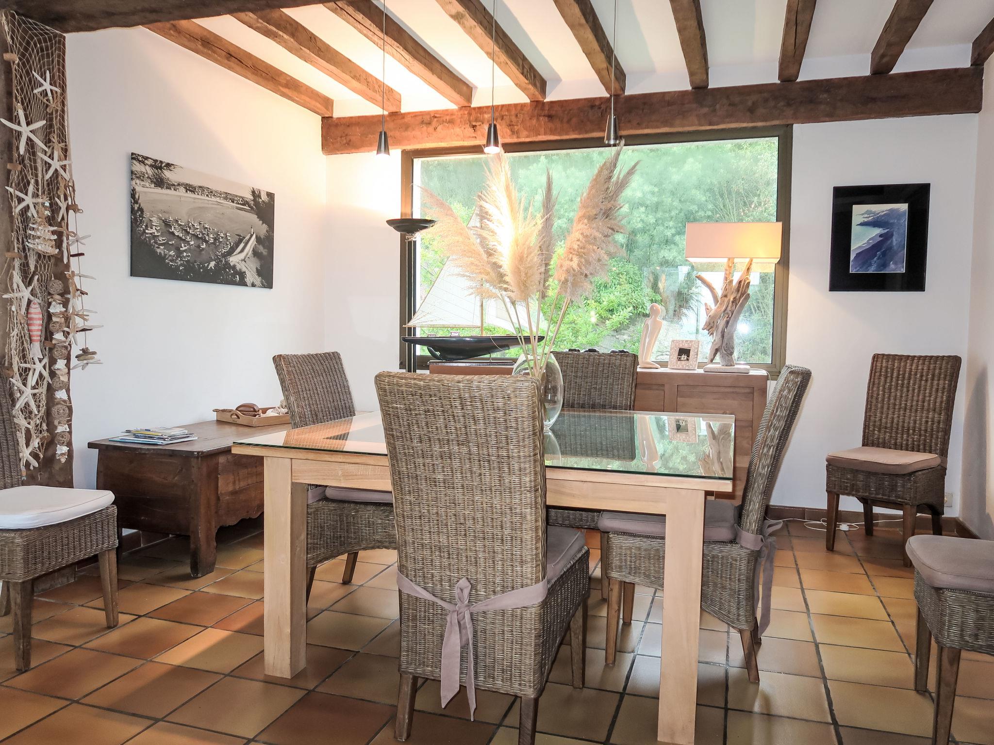 Beautiful, cosy single-family house "Etoile de Mer", 3 storeys. 1 km from the centre of Erquy, 7 km from the centre of Frehel, 30 km from the centre of St. Brieuc, in the residential district, 800 m from the sea. Private: large garden 1'000 m2 (not fenced) with lawn and wildlife garden, parking (for 2 cars), single garage. Shop, grocery 800 m, supermarket 3.5 km, restaurant 800 m, bus stop 1 km, sandy beach "Plage du Centre" 800 m. Sports harbour 1.5 km, golf course (18 hole) 8 km, walking paths from the house 800 m. Nearby attractions: Cap d'Erquy 2 km, Cap Fréhel 17 km, Fort La Latte 17 km.