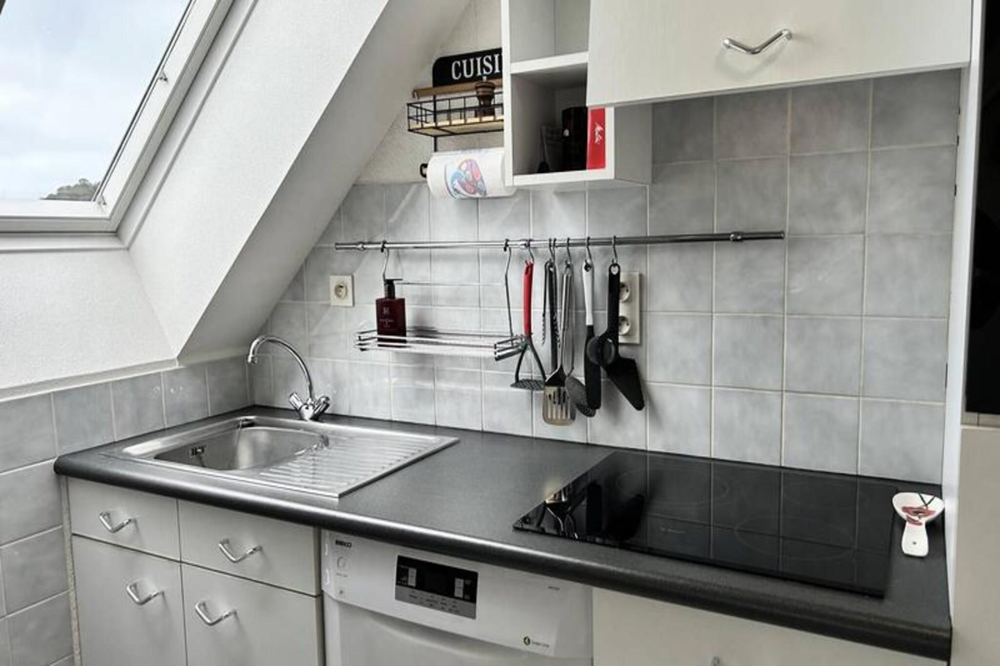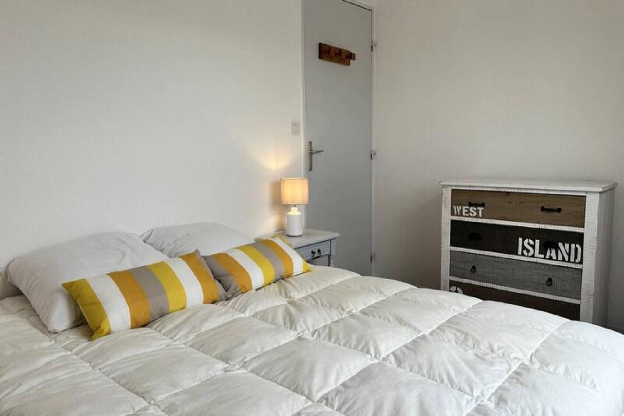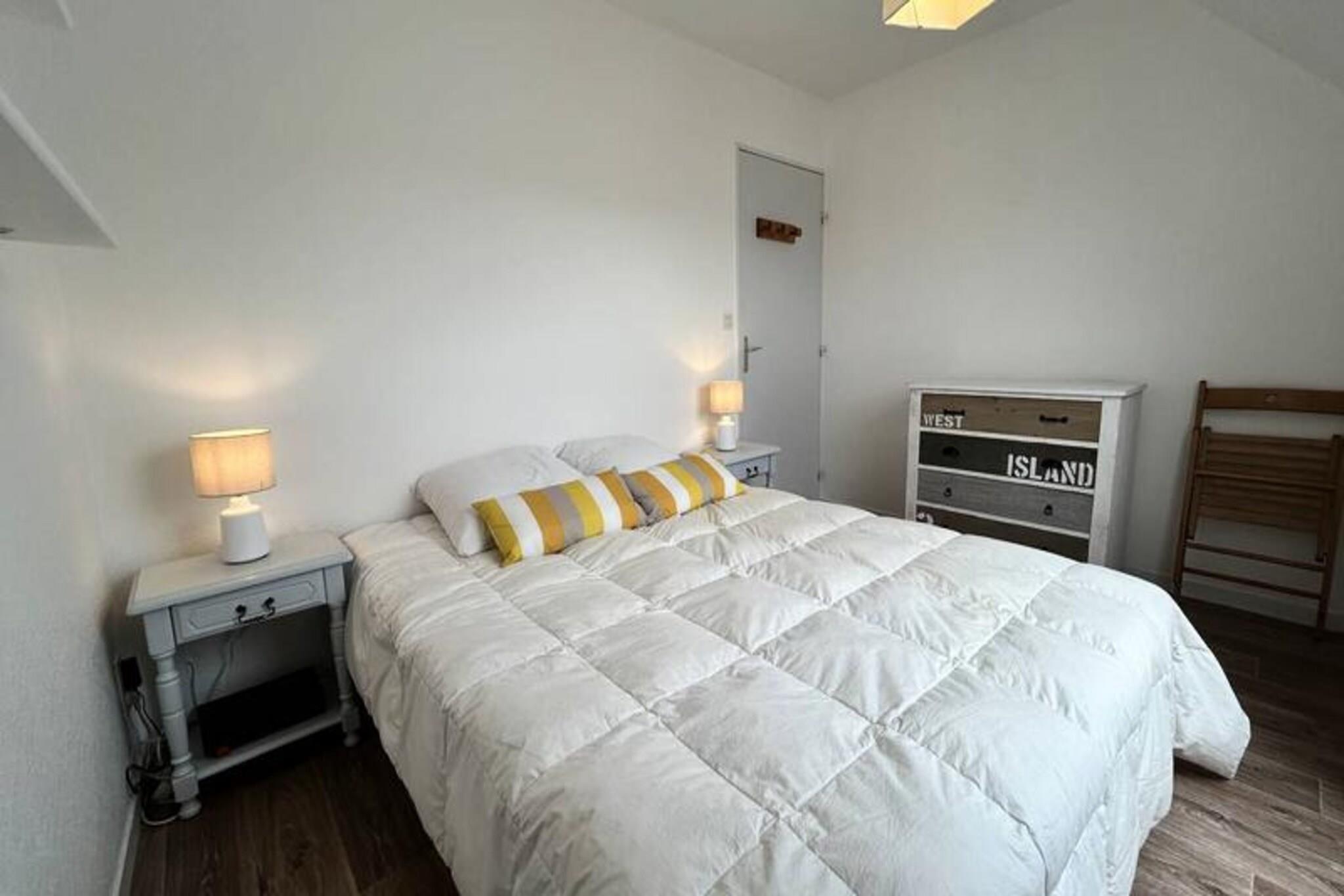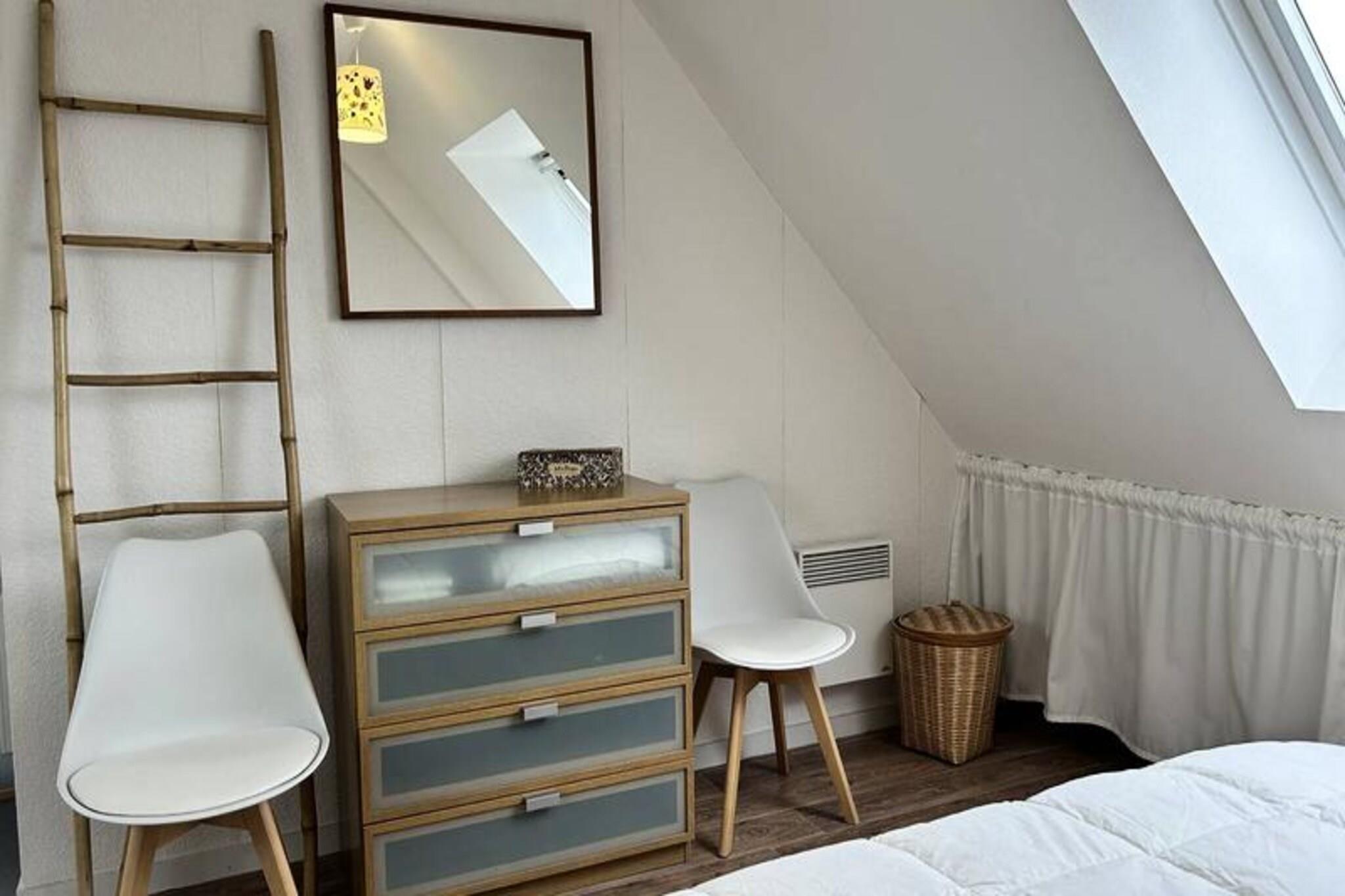 Væk dine sanser til Bretagnes fredfyldte skønhed med denne dejlige lejlighed med to soveværelser, perfekt placeret i hjertet af Erquy. Med udsigt over den maleriske havn og den gyldne sandstrand ved Bourg d'Erquy tilbyder denne private bolig et roligt tilflugtssted kun få skridt fra det pulserende bycentrum og lokale butikker. Uanset om du nyder den friske havbrise eller ser tidevandet rulle ind, er hvert øjeblik her fyldt med kystcharme. Indvendigt er lejligheden omhyggeligt designet til at kombinere komfort og moderne bekvemmeligheder. Den lyse stue med hyggelige lænestole, tv og hi-fi-system åbner op til en fantastisk udsigt over stranden og havnen. Den tilstødende spiseplads har komfortabel plads til fire personer, mens det fuldt udstyrede køkken kan prale af alt, hvad du behøver, fra en Nespresso-maskine til en opvaskemaskine, til at tilberede lækre måltider. Stueetagen har et roligt soveværelse med en queensize-seng, et badeværelse med badekar og bruser samt et separat toilet. Ovenpå tilbyder mezzaninen et ekstra soveværelse med en queensize-seng, et opholdsområde med sofa og smart-tv samt et indbydende sted at slappe af. Træd udenfor, og du vil befinder dig kun få skridt fra sandstranden Bourg d'Erquy, med direkte adgang via en privat indgang til Boulevard de la Mer. Bymidten, der er fyldt med charmerende butikker og lokale spisesteder, ligger kun en kort gåtur væk. For dem, der rejser i bil, sikrer gratis parkering på Rue Foch et problemfrit ophold. Uanset om du er her for at udforske Bretagnes barske kystlinje, nyde frisk fisk og skaldyr eller blot slappe af ved havet, tilbyder denne lejlighed den perfekte base for en uforglemmelig ferie. Med Wi-Fi, sengelinned og valgfri slutrengøring er hver eneste detalje blevet tænkt over for at gøre dit ophold så problemfrit som muligt.