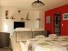 I den charmerende kystby Erquy tilbyder denne dejlige lejlighed i stueetagen et roligt tilflugtssted kun få skridt fra stranden i bymidten. Forestil dig at vågne op til lyden af ??bølger og nyde delvis havudsigt fra din rummelige private terrasse, perfekt til morgenkaffe eller aftenafslapning. Det pulserende bycentrum med butikker og restauranter ligger kun 700 meter væk, hvilket gør det nemt at udforske den lokale bretonske kultur og køkken. Indvendigt er lejligheden omhyggeligt designet til komfort og bekvemmelighed. Det åbne køkken og stue skaber et indbydende rum til familiesammenkomster eller rolige aftener. Soveværelset har en hyggelig dobbeltseng, mens det andet soveværelse er ideelt til børn eller ekstra gæster med to enkeltsenge og en ekstra enkeltseng. Et moderne brusebadeværelse med toilet og et separat vaskerum sikrer, at alle dine praktiske behov bliver opfyldt. Familier med små børn vil sætte pris på det inkluderede babyudstyr, såsom en tremmeseng, højstol og mere. Wi-Fi-adgang (afhængigt af 4G-dækning) og privat parkering bidrager til at gøre dit ophold endnu nemmere. Erquys fantastiske kystlinje og pulserende havn ligger kun en kort gåtur væk og tilbyder muligheder for stranddage, vandreture langs kysten og frisk fisk og skaldyr. Uanset om du udforsker de lyserøde sandstensklipper ved Cap d'Erquy eller nyder de livlige lokale markeder, placerer denne lejlighed dig i hjertet af det hele. Med sengelinned, håndklæder og husholdningsartikler inkluderet, begynder din ferie i det øjeblik, du ankommer. Vælg dette charmerende tilflugtssted for en afslappende ferie, hvor Bretagnes skønhed møder hjemmets komfort. Uanset om du er her på familieferie eller en romantisk flugt, lover Erquy uforglemmelige minder ved havet.