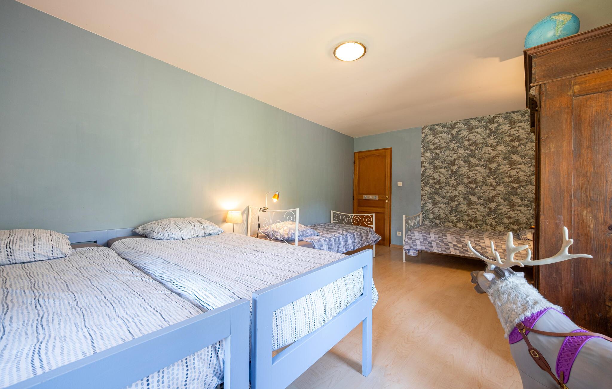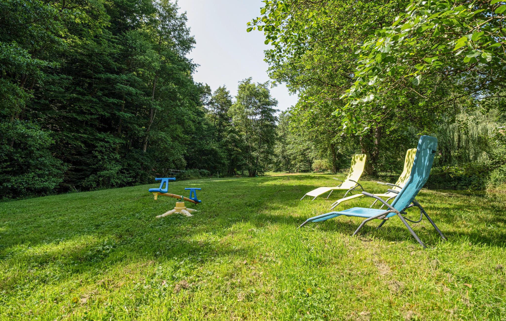 Sæt jer ud i den store, idylliske have, når I vil nyde solen. Huset ligger i et skovområde ved bredden af ??en dam, så her får I den skønneste kulisse til dagens måltider og børnenes leg i det fri. Der er også flere gode faciliteter til at have det sjovt udendørs, lige fra badminton til fodbold, petanque, cykler til børn og en gynge.