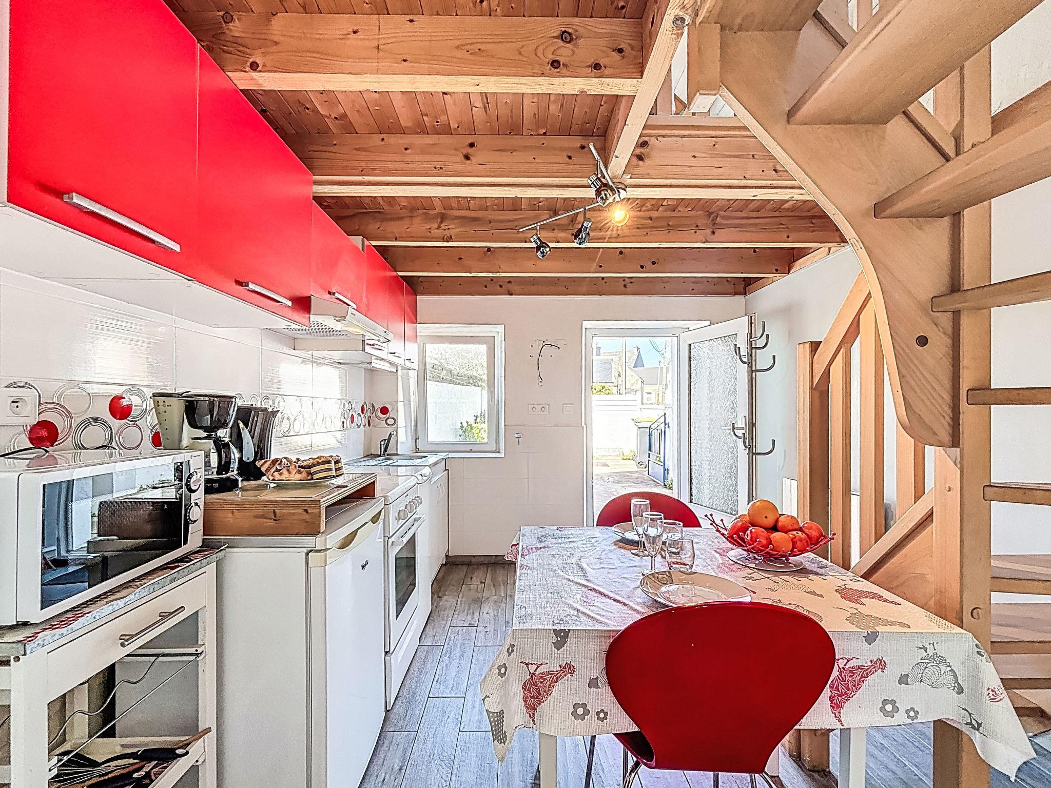 "Maison de pêcheur", 2-room house 20 m2. Comfortable furnishings: living/dining room. Exit to the terrace. Open kitchen (4 hot plates, oven, toaster, kettle, microwave, electric coffee machine). Shower/WC. Electric heating. Upper floor: 1 room with 1 french bed (1 x 140 cm, length 190 cm), TV (flat screen). Terrace. Terrace furniture. Facilities: washing machine. Parking at the house. Please note: non-smokers only. Smoke alarm. Offer by a private individual according to Art. 155, IV of CGI. 56055000026SH