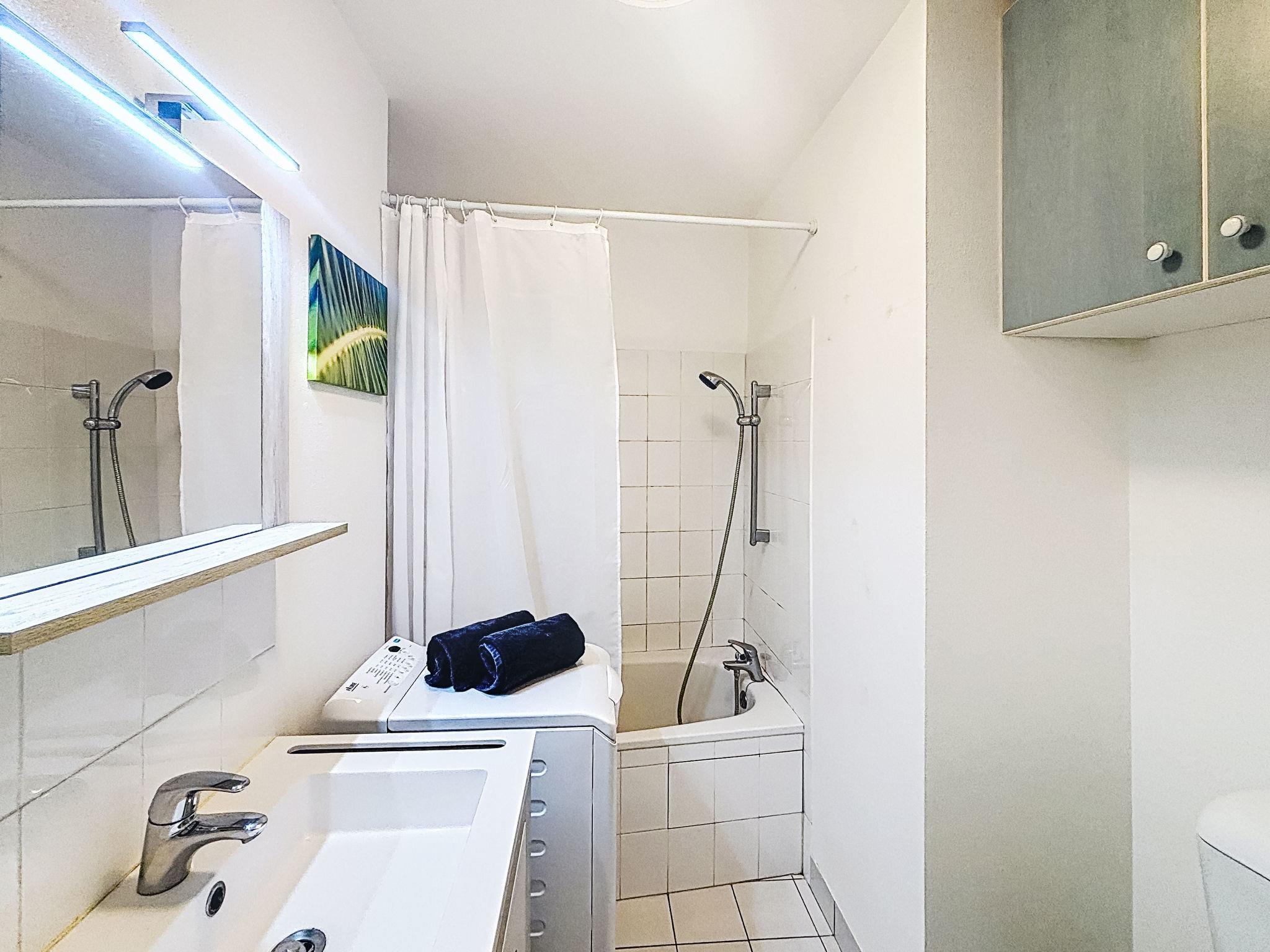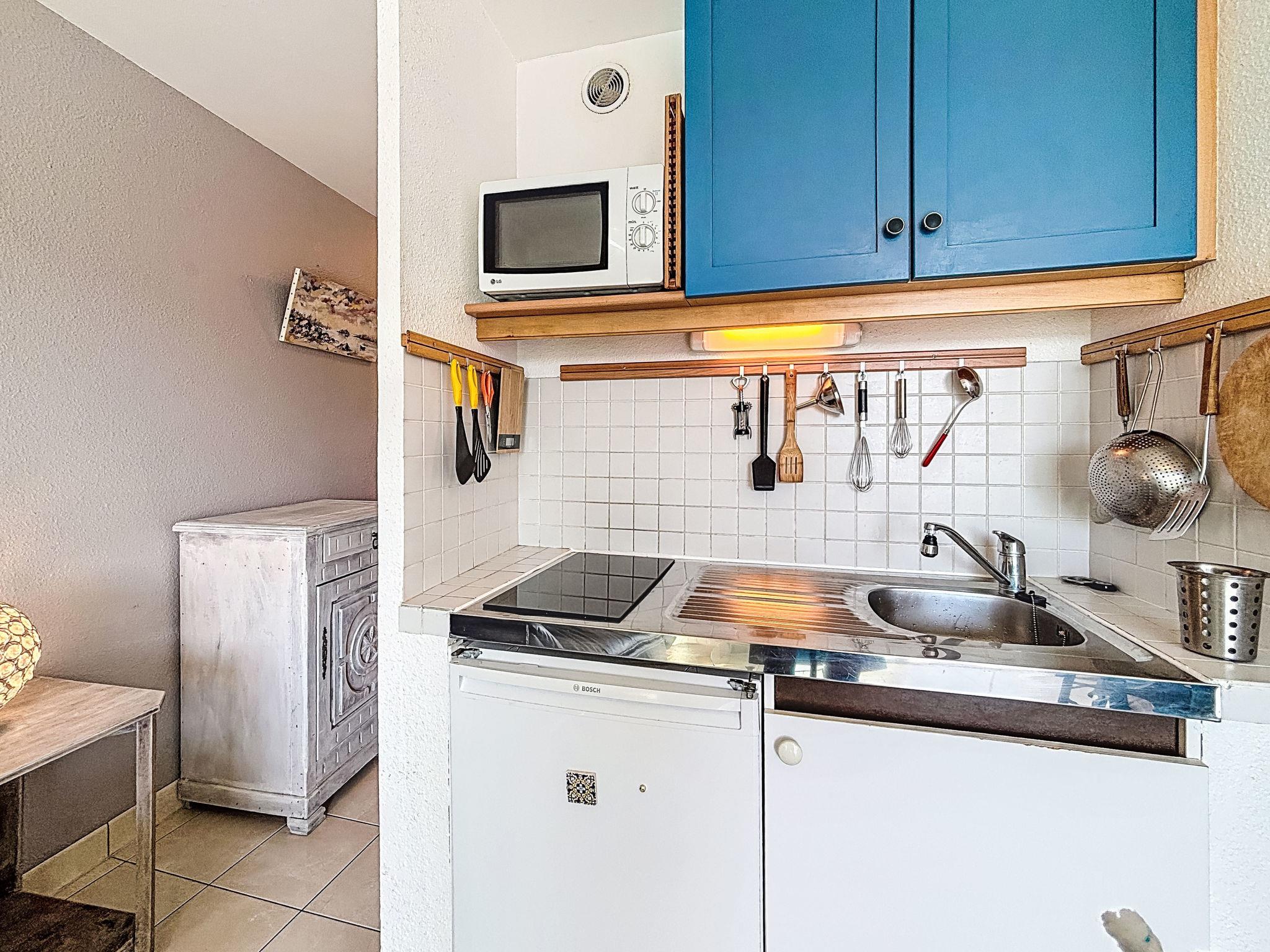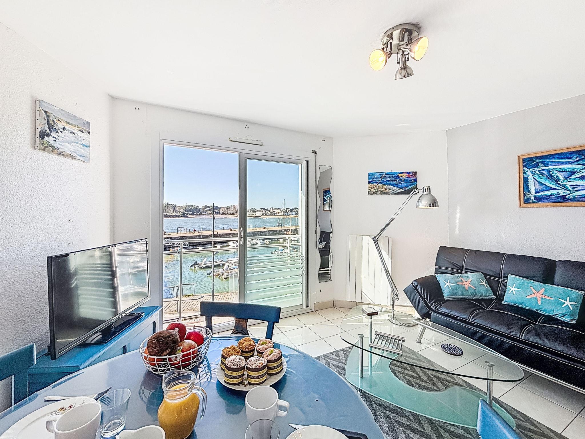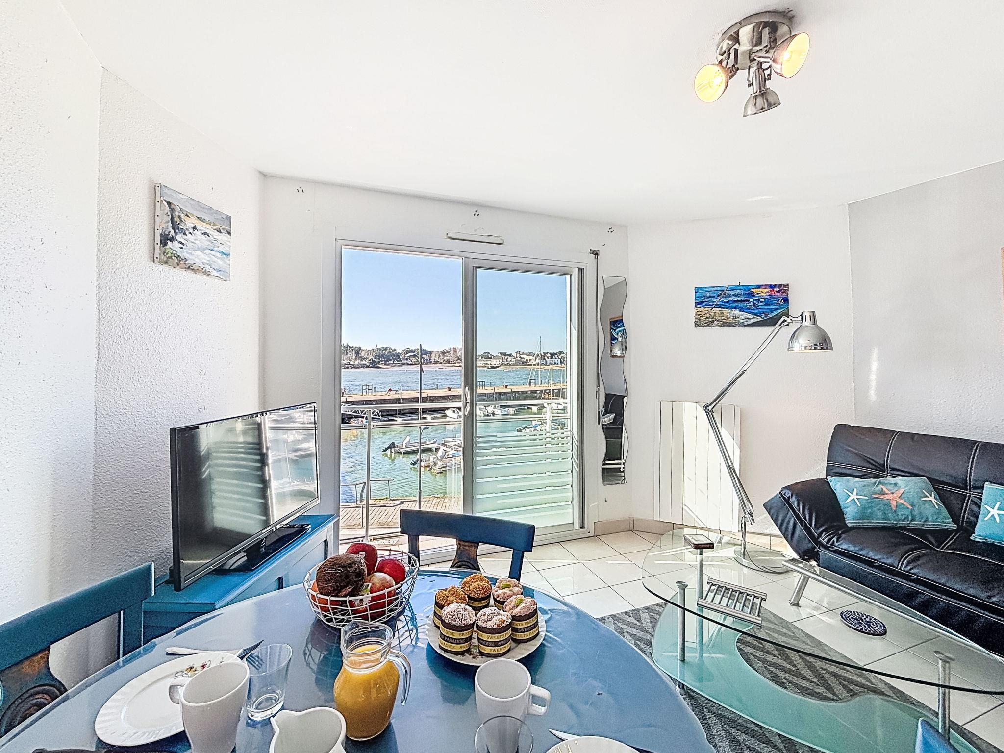 "Appartement La Frégate", 2-room studio 35 m2. Comfortable furnishings: living/dining room with 1 sofabed (140 cm, length 190 cm), TV (flat screen). Sleeping alcove with 1 bed (120 cm, length 190 cm). Kitchen (2 hot plates, oven, toaster, microwave, electric coffee machine). Bath/WC. Electric heating. View of the sea. Facilities: washing machine. Please note: non-smokers only. Smoke alarm. Offer by a private individual according to Art. 155, IV of CGI. 56055000013GD