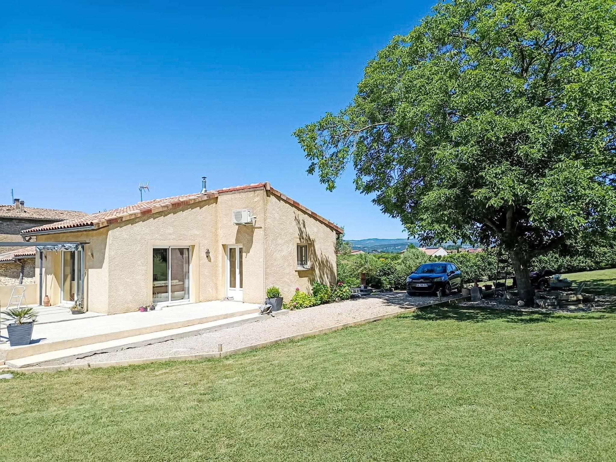Terraced house "Douce campagne". On the outskirts, 2 km from the centre of d'Etoile-sur-Rhône, in a quiet position on a slope, in a cul-de-sac. Private: well-kept garden 8'000 m2 lawn, swimming pool, indoor pool (10 x 4 m, depth 100 - 150 cm, seasonal availability: 15.May. - 15.Oct.). Boules, parking (for 3 cars). Shop 9 km, grocery 2 km, supermarket 3.5 km, restaurant 1 km, bakery 1 km, bus stop 1 km, railway station "Livron" 10 km, swimming bay 19 km. Sports harbour 11 km, golf course (18 hole) 13 km, sailing school 14 km, tennis 6.5 km, riding stable 6 km. Nearby attractions: Valence 16 km, Montélimar 36 km, Zoo d'Upie 11 km, Château de Crussol 18 km, La Tour de Crest 20 km, Rivière L'Eyrieux 19 km.