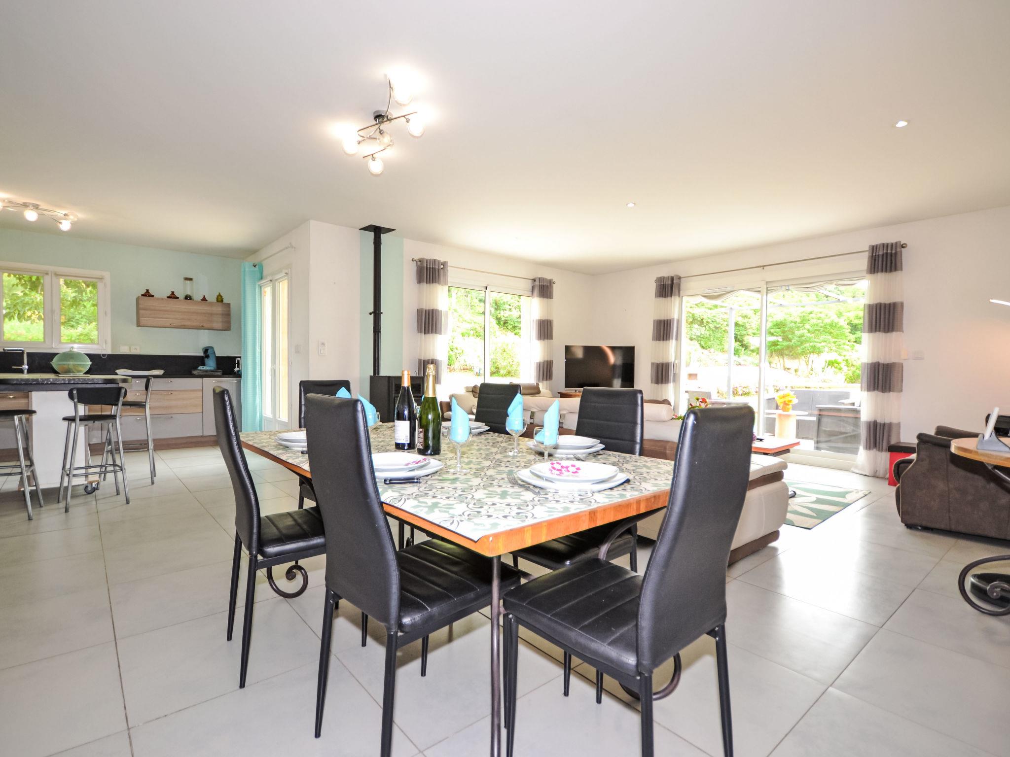 3-room terraced house 105 m2. Beautiful furnishings: living/dining room 25 m2 with Scandinavian wood stove and TV (flat screen), air conditioning and electric shutters. 1 room with 1 french bed (160 cm, length 200 cm), electric shutters. 1 room with 1 double sofabed (140 cm, length 190 cm), 1 french bed (140 cm, length 190 cm), electric shutters. Open kitchen (oven, dishwasher, 3 induction hot plates, toaster, kettle, microwave, electric coffee machine, Capsules for coffee machine (Senséo) extra). Bath/shower, sep. WC. Electric heating. Terrace 40 m2 partly roofed, south facing position. Terrace furniture, deck chairs (4). Very beautiful view. Facilities: washing machine, dryer, iron, mosquito net. Internet (WiFi, free). Please note: non-smoking house. Maximum 1 pet/ dog allowed. Smoke alarm. Offer by a private individual according to Art. 155, IV of CGI.