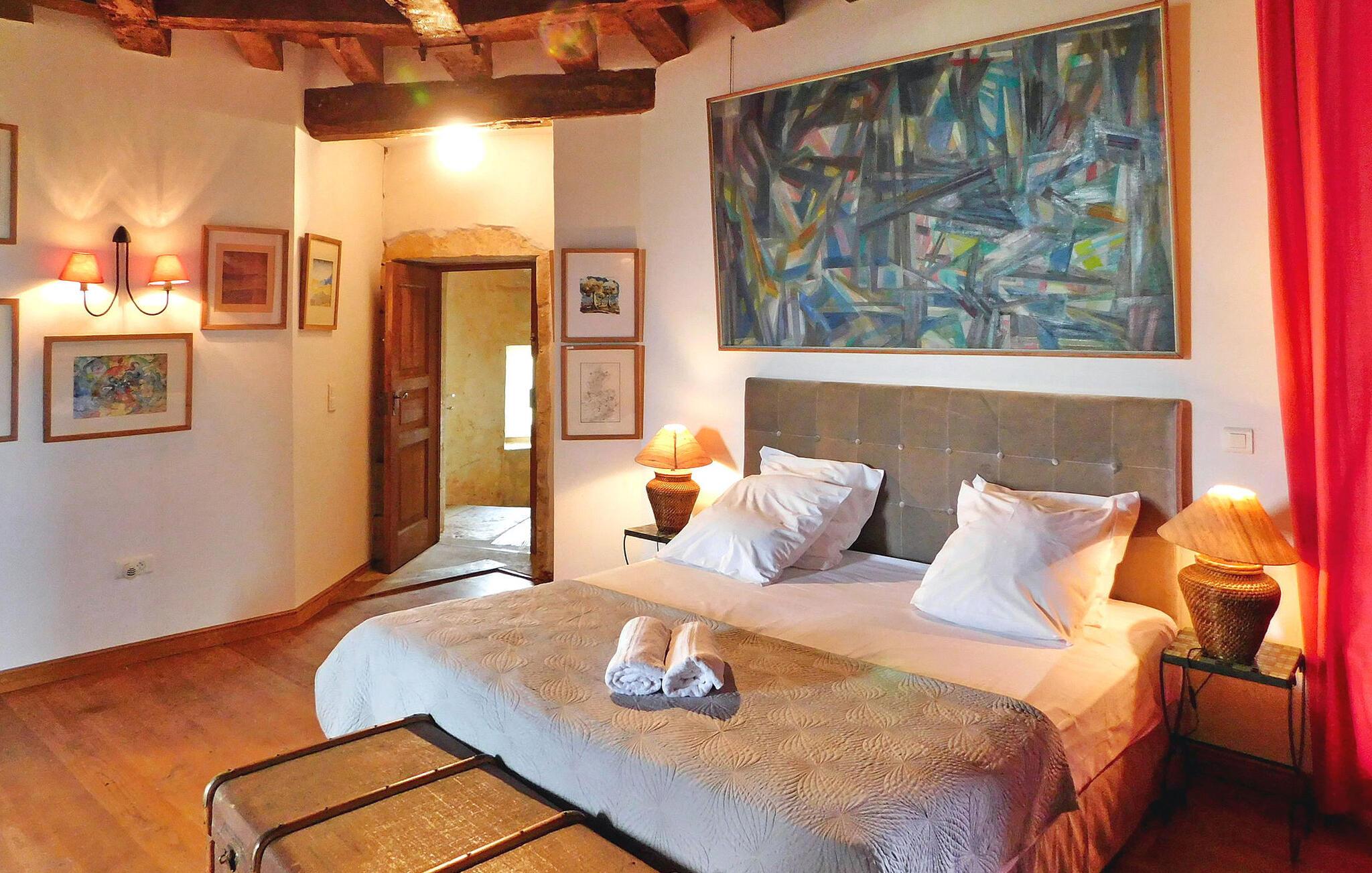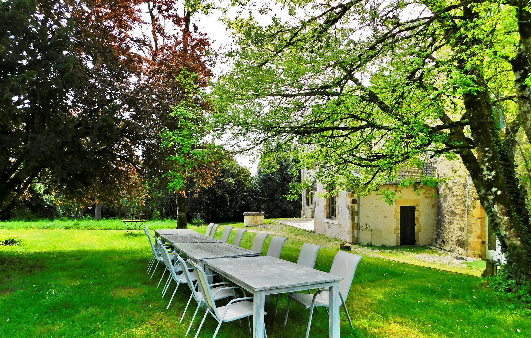 Oplev fortryllelsen ved et middelalderligt slot beliggende i hjertet af Périgord, der tilbyder en fortryllende ferieoplevelse midt i Dordognes fængslende skønhed. Denne historiske ejendom kan prale af et unikt fangehul og en vidtstrakt 5 hektar stor park, der tilbyder en 360° panoramaudsigt over det maleriske landskab, suppleret med en privat swimmingpool. Stueetagen byder dig velkommen med køkken og spiseplads samt et hyggeligt opholdsrum. Gå op til første sal via en trætrappe for at finde to soveværelser, hver med sit eget brusebad. Anden sal byder på yderligere to soveværelser og et fælles brusebad. Det fængslende fangehul, der er tilgængeligt via en "hemmelig passage", folder sig ud over tre niveauer og byder på en unik livsoplevelse. Det huser to soveværelser, en stor stue med billard og en fængslende udsigt. Træd udenfor for at omfavne den store 5 hektar store park, et paradis for afslapning og udforskning. Den private swimmingpool, som ligger omkring 70 meter fra terrassen, byder på et forfriskende tilflugtssted midt i de frodige omgivelser. En terrasse prydet med udendørsmøbler, borde, stole og liggestole indbyder til afslappede stunder. Slottet ligger i Périgord Blanc, ikke langt fra kendte turiststeder og ved porten til Périgord Noir. De lokale butikker ligger omkring 4 km væk i byen Excideuil. Forkæl dig selv med den historiske charme af dette slot, en port til regionens turistattraktioner, hvor middelalderlig storhed møder moderne komfort midt i en betagende naturskønhed.