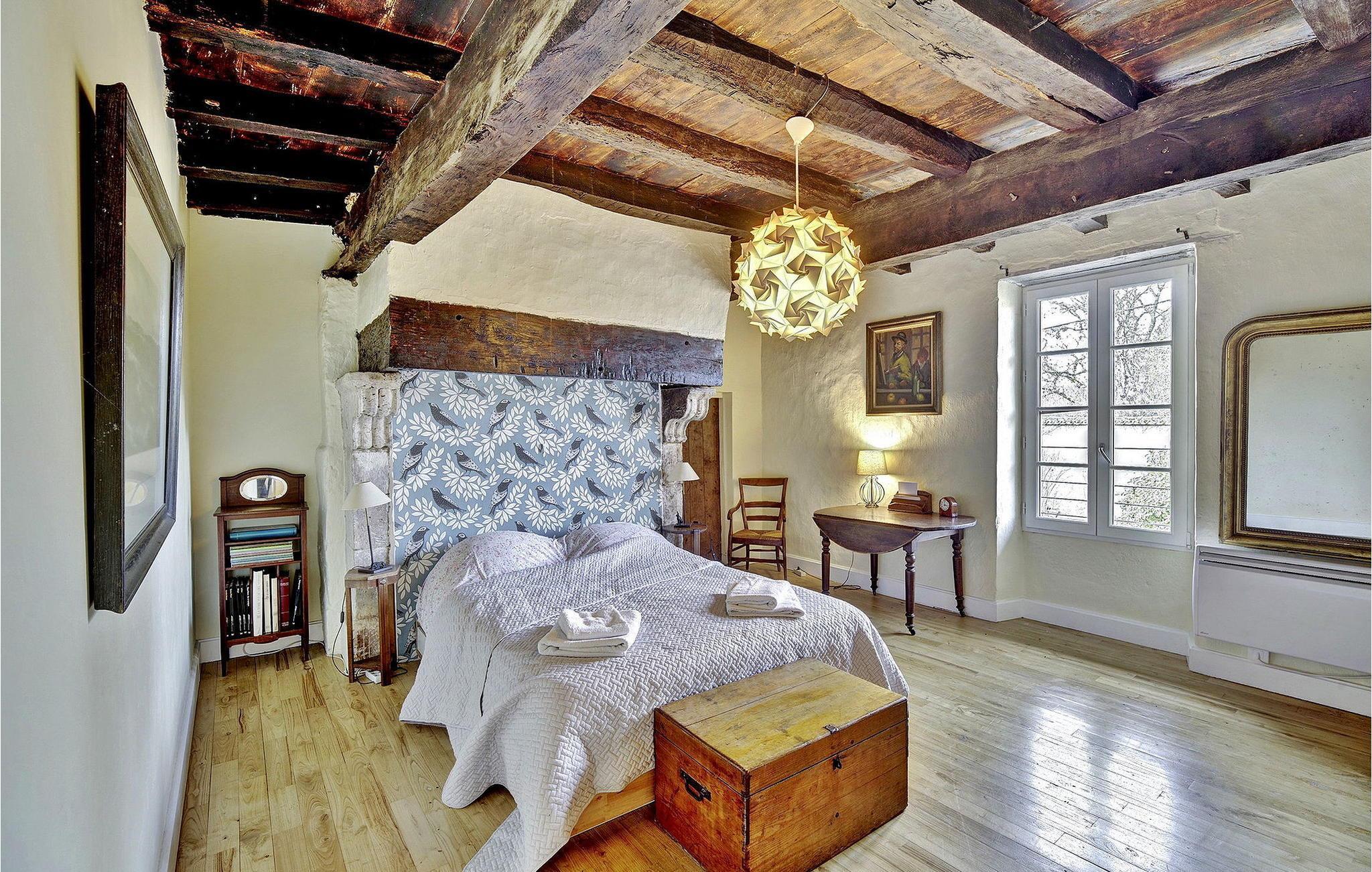 Beliggende i hjertet af Purple Périgord tilbyder denne autentiske bondegård en fredfyldt flugt, beliggende langs vinruterne Pécharmant og Montbazillac. Huset kan prale af en dejlig stueetage med en spisestue prydet med trægulve og synlige bjælker. Køkkenet, stuen og et hyggeligt lille opholdsrum med direkte adgang til haven giver rigelige områder til afslapning. Et biograflokale udstyret med skærm, lydsystem og underholdningsmuligheder sikrer dejlige aftener. Den tankevækkende inkludering af USB-stik i alle værelser giver mulighed for bekvem mobiltelefonopladning. Gå op til det øverste niveau for at finde de komfortable soveværelser med forskellige arrangementer, herunder køjesenge, der er ideelle til børn. Den lukkede have lokker fra flere adgangspunkter i huset, hvilket fører til et privat udendørs opholdsområde med havemøbler, en grill og en elektrisk plancha til udendørs kulinariske oplevelser. En indhegnet privat pool på 8m x 4m venter på din nydelse, ledsaget af en pergola med haveborde, liggestole og liggestole til ultimativ afslapning. Stuehuset er beliggende på landet i hjertet af en stille landsby i hjertet af Purple Périgord tæt på de berømte vinruter Pécharmant og Monbazillac. Nærmeste butikker 6 km, i Castillonnès (nær Lot et Garonne). Fordyb dig i skønheden i Purple Périgord, nyd roen i denne bondegård, og skab elskede minder i disse idylliske omgivelser.