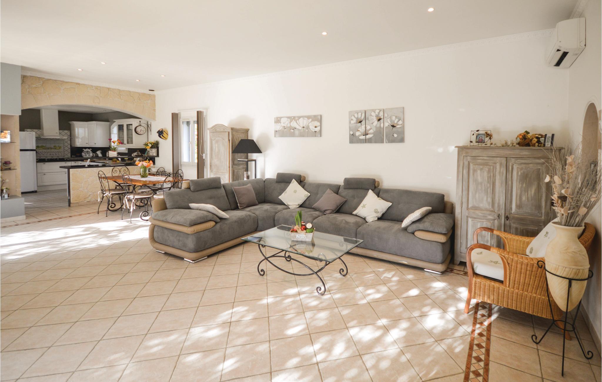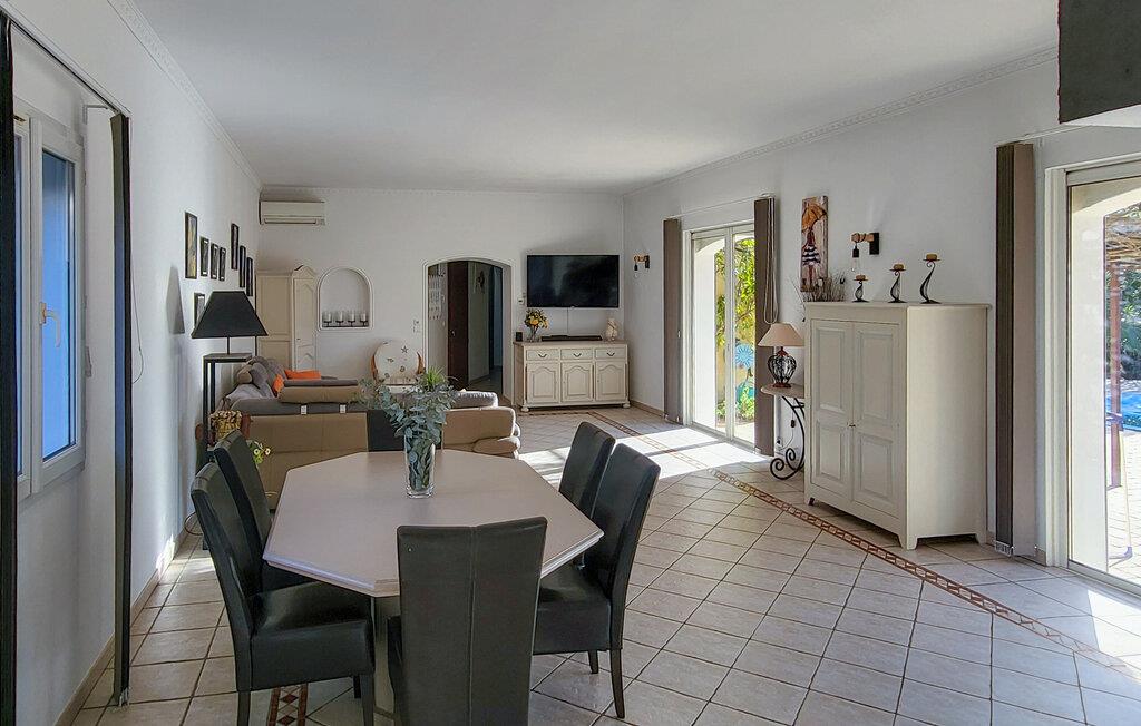 På bagsiden er der en diskret lejlighed, der bebos af ejerens datter. Poolhuset har et sommerkøkken og gasgrill, hvor I kan nyde lækre måltider, før I spiller et spil petanque på den udpegede mark (Kugler findes på stedet). De yngste kan lege i legehuset. Det indre af villaen er indbydende og behageligt, indrettet i moderne stil og smagfuldt.