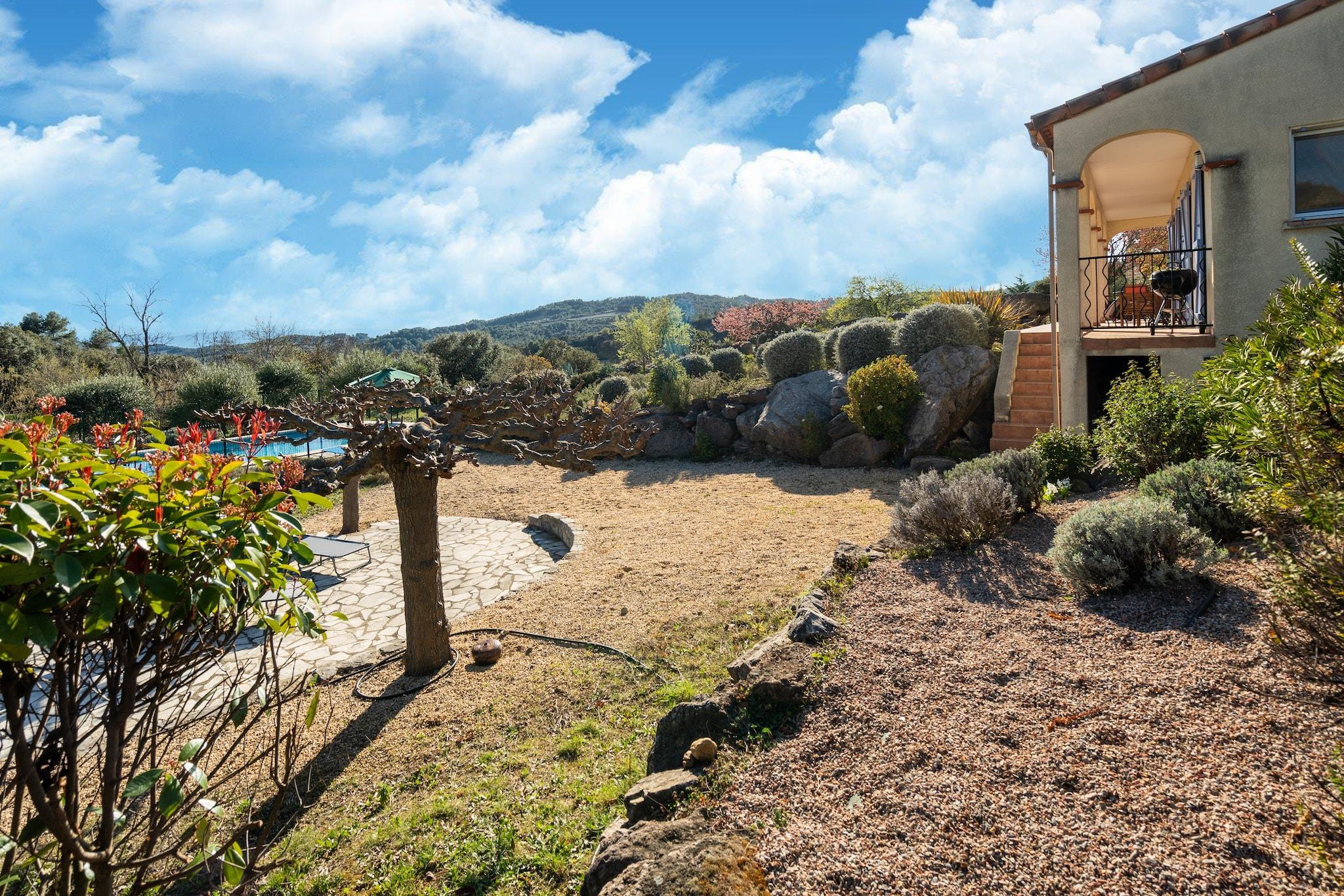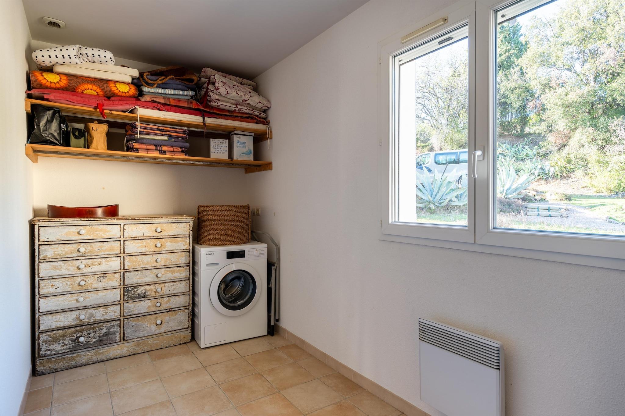 Flugt til dette charmerende 3-værelses feriehus i Félines-Minervois, perfekt til familier eller vennegrupper, der søger ro. Med en privat swimmingpool og flere terrasser er det designet til udendørs afslapning og afslappede stunder. Uanset om du slikker solen eller nyder en afkølet drink under stjernerne, tilbyder dette hjem de ideelle rammer for et fredeligt tilflugtssted. Den omkringliggende region er rig på kulinariske lækkerier og naturskønhed. Oplev lokale restauranter, der serverer læskende retter, og udforsk nærliggende vinmarker til vinsmagning. Naturelskere vil sætte pris på de tilgængelige vandrestier og den maleriske landsby Minerve, kun 15 km væk, sammen med andre fængslende turiststeder, der venter på at blive udforsket. Indenfor er hjemmet fuldt udstyret til komfort. Tilbered lækre måltider i det moderne køkken og samles om spisebordet med udsigt til terrassen. Den hyggelige opholdsstue inviterer dig til at slappe af efter en dag med eventyr. Med praktisk parkering og gennemtænkte faciliteter sikrer dette feriehus et problemfrit og mindeværdigt ophold for op til seks gæster.