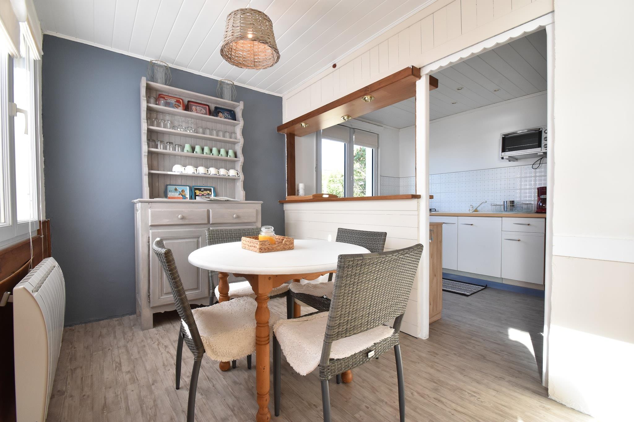 Beliggende i den naturskønne kystlandsby Fermanville, kan dette feriehus med 2 soveværelser rumme op til 4 gæster, hvilket gør det perfekt til en familie eller en gruppe af venner. Kun 200 meter fra Plage de l'Anse du Brick kan du gå direkte til stranden og nyde havets skiftende farver fra din private terrasse med et glas vin i hånden. Boligens kystinspirerede indretning skaber en beroligende atmosfære med et veludstyret køkken i stueetagen og en hyggelig stue med pejs og havudsigt. Udenfor er den delvist indhegnede have indrettet til grillaftener, mens børn kan lege frit på græsplænen. Essentials er tilgængelige på et minimarked kun 200 meter væk, og et supermarked er 4 km for bredere shoppingbehov. Udforsk nærliggende Cherbourg, St. Vaast-la-Hougue og Barfleur, kendt for deres østersfarme og charmerende havne. Bådture til Tatihou Island eller D-Day-strandene byder på rige kulturelle oplevelser. Uanset om du solbader, tager på sightseeing eller blot slapper af ved bålet, tilbyder dette hjem en fredelig og velforbundet flugt fra Normandiet.