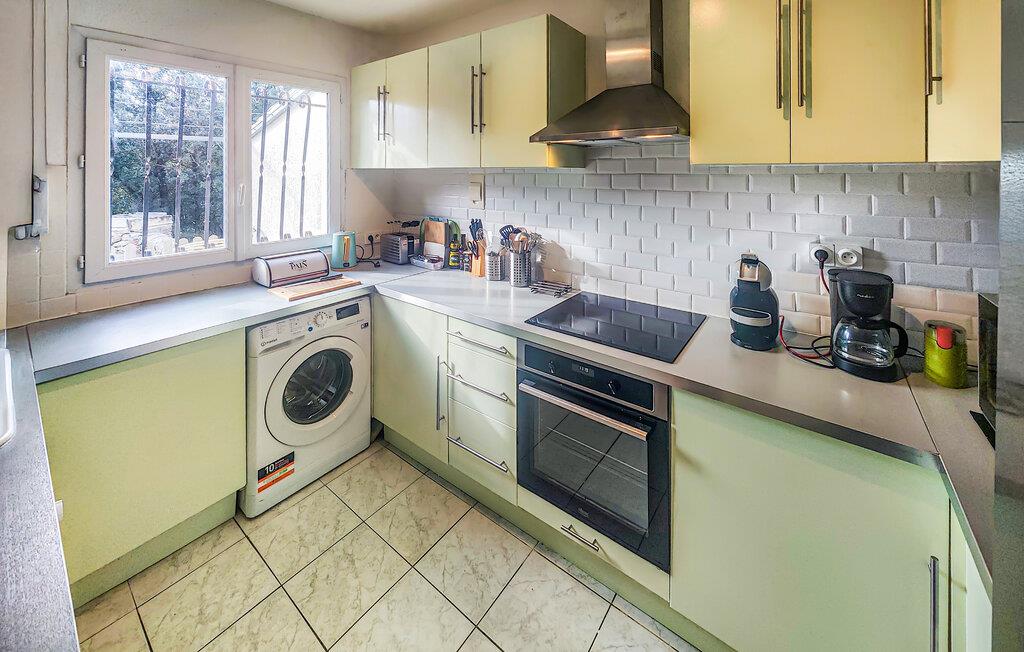 Dette rummelige feriehus byder jer velkommen til en idyllisk beliggenhed og tilbyder den perfekte base for en naturfyldt ferie med familien. Tilbered lækre retter og planlæg jeres aktiviteter over hyggelige måltider i det lyse, åbne opholdsområde. Efter en lang dag i den friske luft inviterer de komfortable siddepladser jer til at nyde sjove spilleaftener eller rolige timer med en god bog.