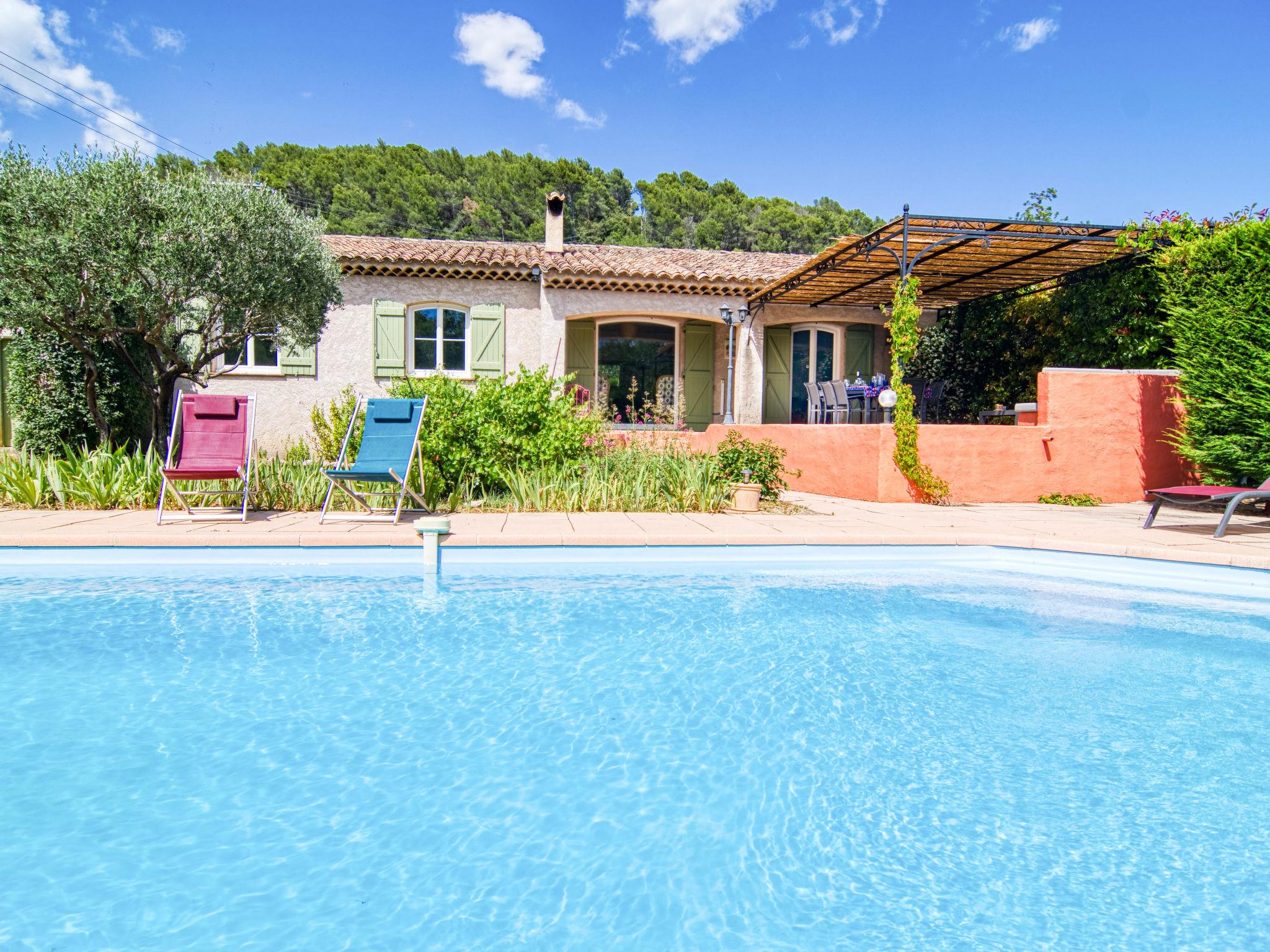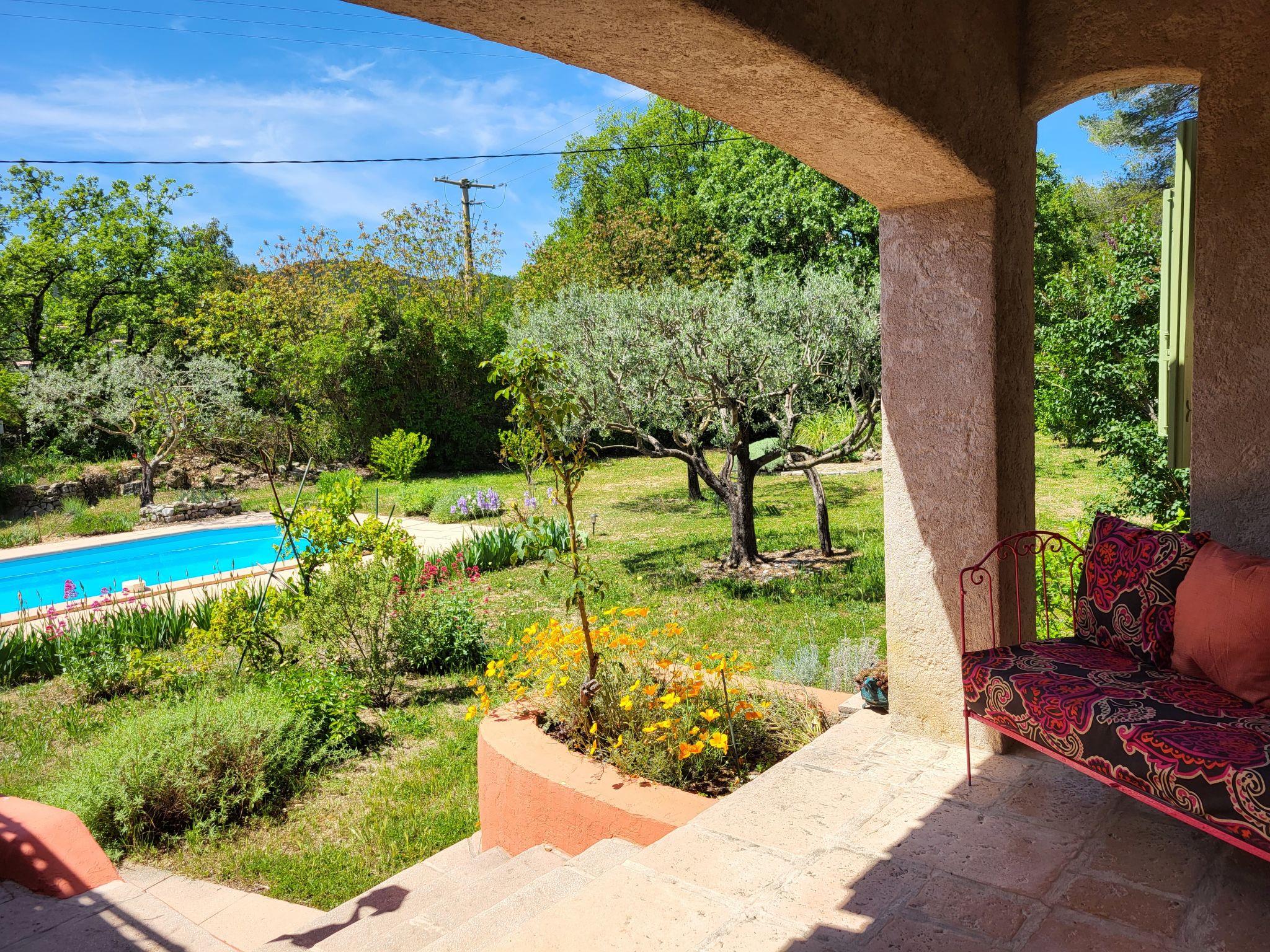 Single-family house. 2 km from the centre of Figanières, 8 km from the centre of Draguignan, 28 km from the centre of Fayence, in the residential district. Private: well-kept garden 3'900 m2, swimming pool (8 x 4 m, depth 70 - 180 cm, seasonal availability: 01.Jan. - 31.Dec.) with alarm system. Roofed, parking. Grocery 2 km, restaurant 2 km, bar 2 km, bakery 850 m, café 2 km, bus stop 6 km, railway station "Les Arcs Draguignan" 20 km, sandy beach "Fréjus" 38 km. Golf course (18 hole) 17 km. Nearby attractions: Gorges du Verdon, Gorges du Blavet, Tourtour. Well-known lakes can easily be reached: Sainte Croix 48 km, Saint Cassien 43 km. Please note: car recommended. The owner does not accept any youth groups.
