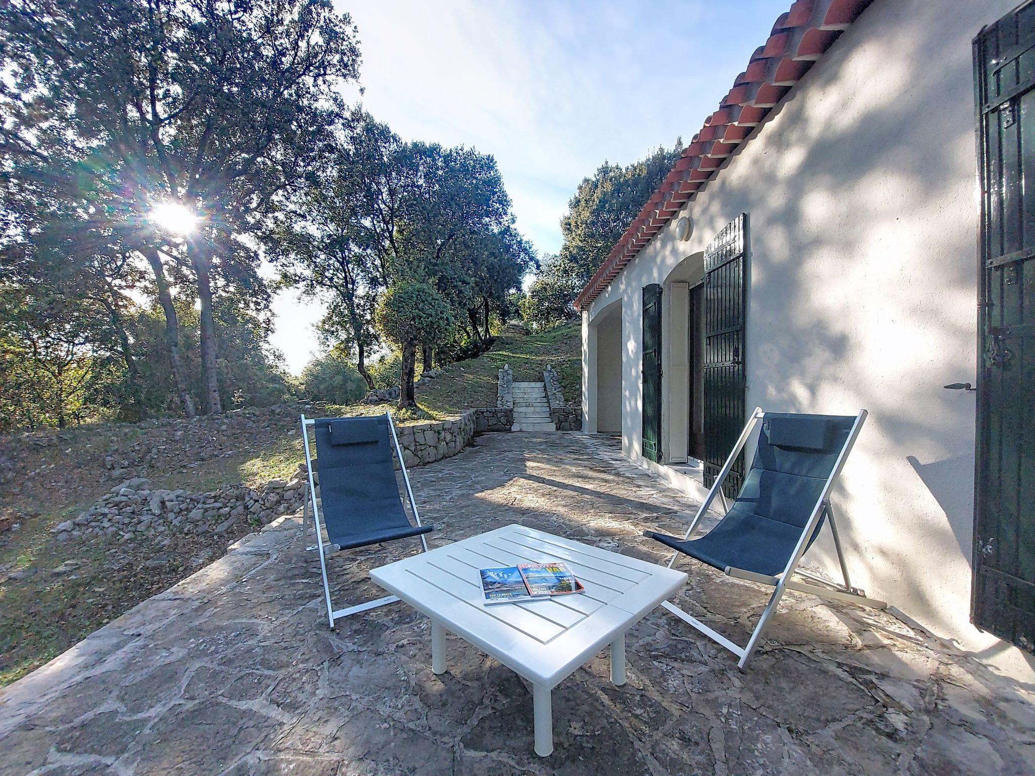2.2 km from the centre of Figanieres, 8.6 km from the centre of Draguignan, 37 km from the centre of Fréjus, in a secluded, quiet position on a slope, 39 km from the sea, 43 km from the lake, in the woods. Private: natural state property 2 ha. Motor access to 750 m from the house (250 m via unmade road, ramp). Parking (for 3 cars) on the premises. Grocery 2.2 km, supermarket 11 km, shopping centre 15 km, restaurant 2.2 km, bar 2.2 km, bakery 1.8 km, bus stop 3 km, railway station "Les Arcs Draguignan" 21 km. Golf course (18 hole) 18 km, riding stable 6 km. Nearby attractions: Moustiers SAinte Marie, Tourtour, Grottes de Villecroze, Abbaye du Thoronet, Cotignac, Gorges de Pennafort. Well-known lakes can easily be reached: Lac de Saint Croix 43 km, Lac de Saint Cassien 33 km, Lac de Carcès (pêche uniquement) 44 km. Hiking paths: Gorges du Blavet, Les Esterels, Gorges du Verdon. Please note: car recommended. The owner does not accept any youth groups.