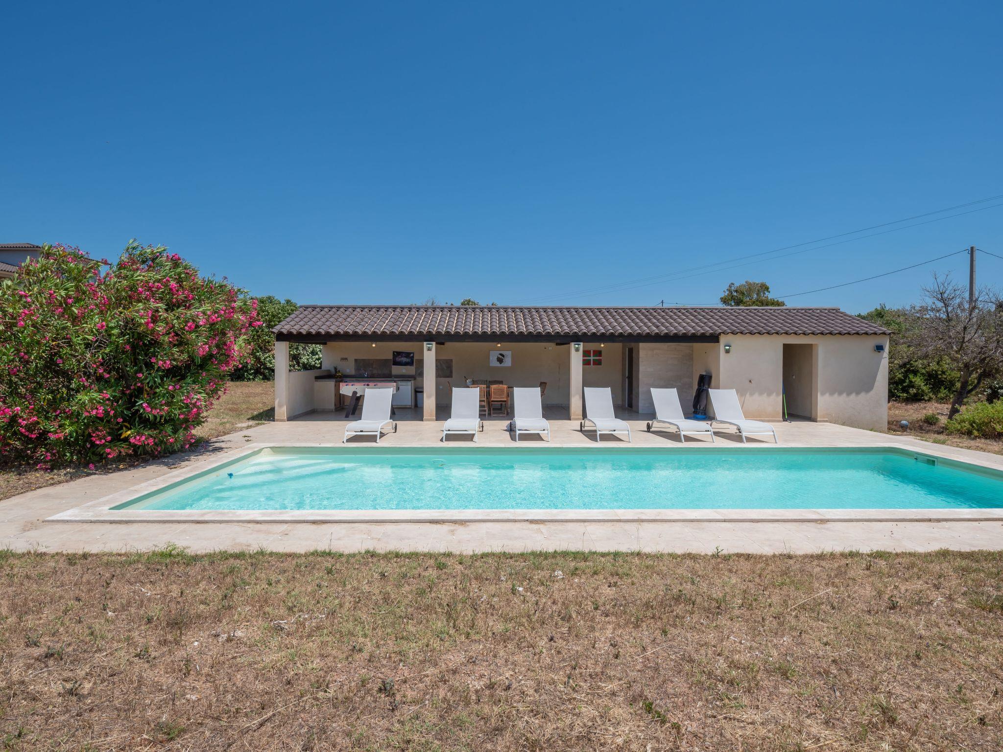 Pianatolli-Caldarello 7 km from Figari: Beautiful villa "Villa I Tre Fratelli". On the outskirts, 700 m from the sea, 700 m from the beach, in the countryside. Private: property 5'500 m2, swimming pool heated (12 x 4 m, depth 160 cm, seasonal availability: 01.Jun. - 30.Sep.). Shower/WC in the pool area, private beach. Hamam. Motor access (via unmade road, mountain road). Parking on the premises. Shop 3 km, grocery 1 km, supermarket 3 km, restaurant 3 km, bus stop "Pianottoli-Caldarello" 4.4 km, sandy beach "Plage de la Tour" 700 m. Nearby attractions: Bonifacio 19 km, Porto-Vecchio 28 km, Sartène 33 km, Iles Lavezzi. Please note: car recommended.