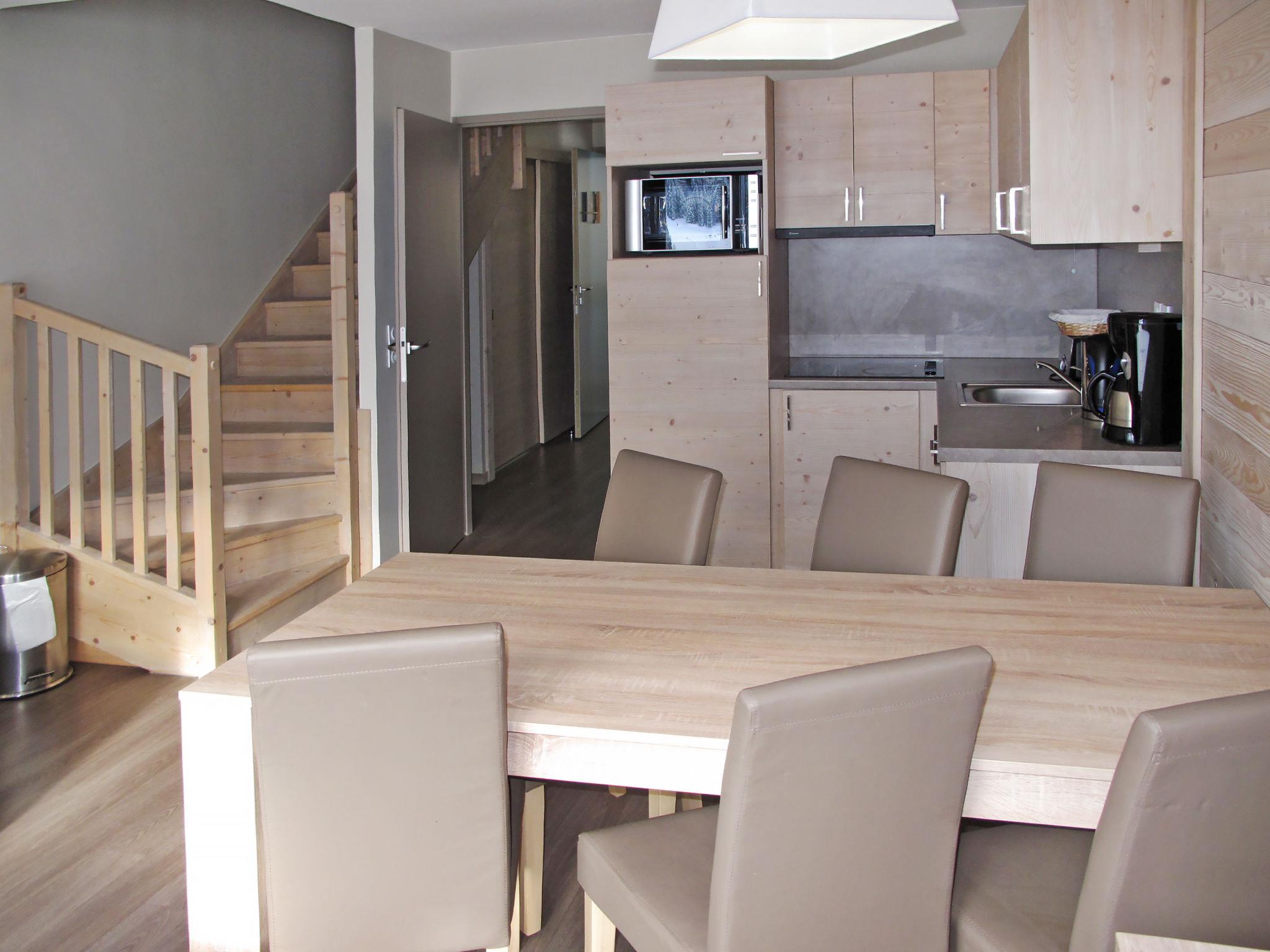 "Le Panoramic", 3-room apartment 63 m2. Tasteful furnishings: living/sleeping room with 2 sleeping facilities, dining table and TV. Exit to the balcony. 1 room with 1 french bed. 1 room with 2 beds. Entrance hall with 1 x 2 bunk beds. Small, open kitchen (dishwasher, 2 ceramic glass hob hotplates, toaster, kettle, microwave, electric coffee machine). Sep. WC, bath/WC or shower/WC. Electric heating. Balcony. Facilities: hair dryer. Internet (WiFi, free). Parking (roofed, 1 car). Maximum 1 pet/ dog allowed. This type of apartment can also be made on two levels.