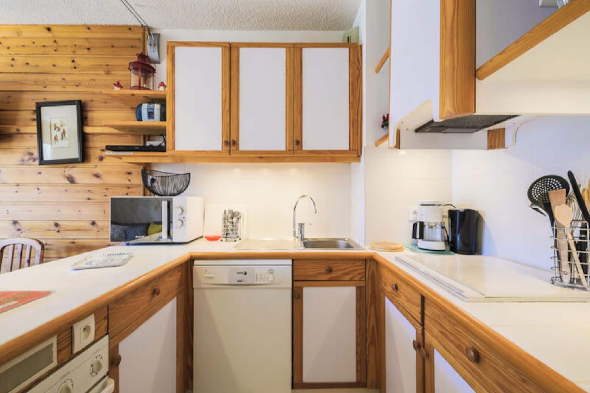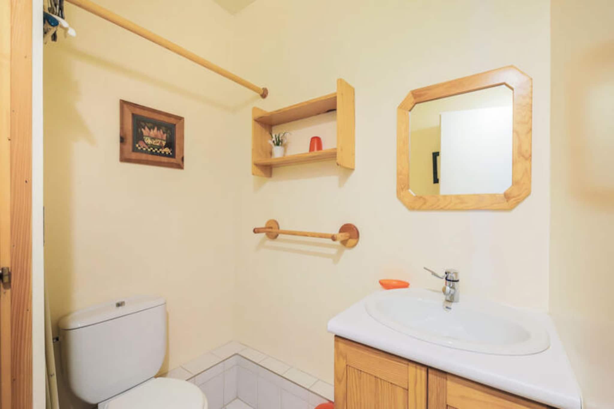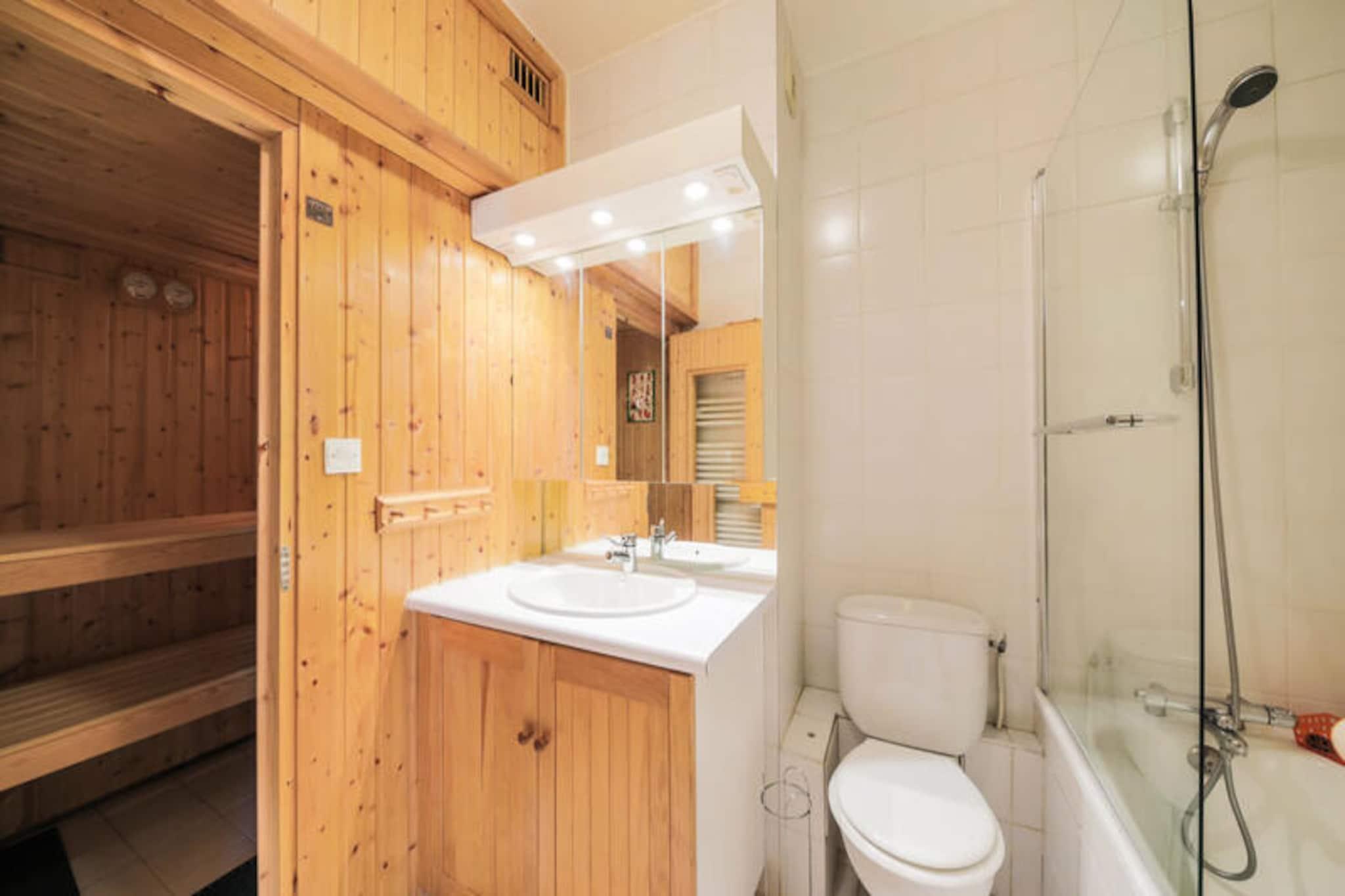 Højt over det maleriske feriested Flaine, i en højde af 1.800 meter, ligger det charmerende Le Château de Crans Residence. Dette skandinaviske træhus udstråler varme og elegance og tilbyder 11 fuldt udstyrede lejligheder designet til komfort og afslapning. Med en betagende panoramaudsigt over de omkringliggende alpetoppe er dette rolige tilflugtssted den perfekte base for dine bjergeventyr. Uanset om du besøger stedet for spændingen ved skiløb eller roen i bjergene, lover denne bolig et uforglemmeligt ophold. Lejligheden, der ligger på første sal, er 55 m² stor og er omhyggeligt designet til at rumme op til seks gæster. Stuen har en hyggelig sovesofa, lænestole, et tv og en Blu-ray DVD-afspiller, hvilket gør den ideel til at slappe af efter en dag på pisterne. Det åbne køkken er fuldt udstyret med moderne apparater, herunder ovn, mikrobølgeovn, opvaskemaskine og kaffemaskine, hvilket sikrer, at du har alt, hvad du behøver for at tilberede lækre måltider. Soveværelset kan prale af en komfortabel dobbeltseng, et tv og rigelig opbevaringsplads, mens den lukkede sovealkove har køjesenge, der er perfekte til børn. En privat sauna tilføjer et strejf af luksus, så du kan slappe af og lade op i dit eget hjem. Residensen er bekvemt placeret kun 500 meter fra ESF-mødestederne og Piou Piou Club og tilbyder nem adgang til pisterne via den nærliggende Gérats-stolelift eller den gratis shuttle-service. Landhandelen, kun to minutters gang væk, tilbyder fornødenheder, skiudlejning og spisemuligheder, mens Spar-supermarkedet henvender sig til større indkøbsbehov. De gratis Skibus- og Hameau-shuttlebusser gør det nemt at udforske Flaines pulserende Forêt- og Forum-distrikter og forbinder dig med livlige barer, restauranter og aktiviteter. Uanset om du søger roen i bjergene eller energien i feriestedet, tilbyder Le Château de Crans Residence det bedste fra begge verdener. Med sin fantastiske udsigt, moderne faciliteter og førsteklasses beliggenhed er det det perfekte valg til din alpeferie.