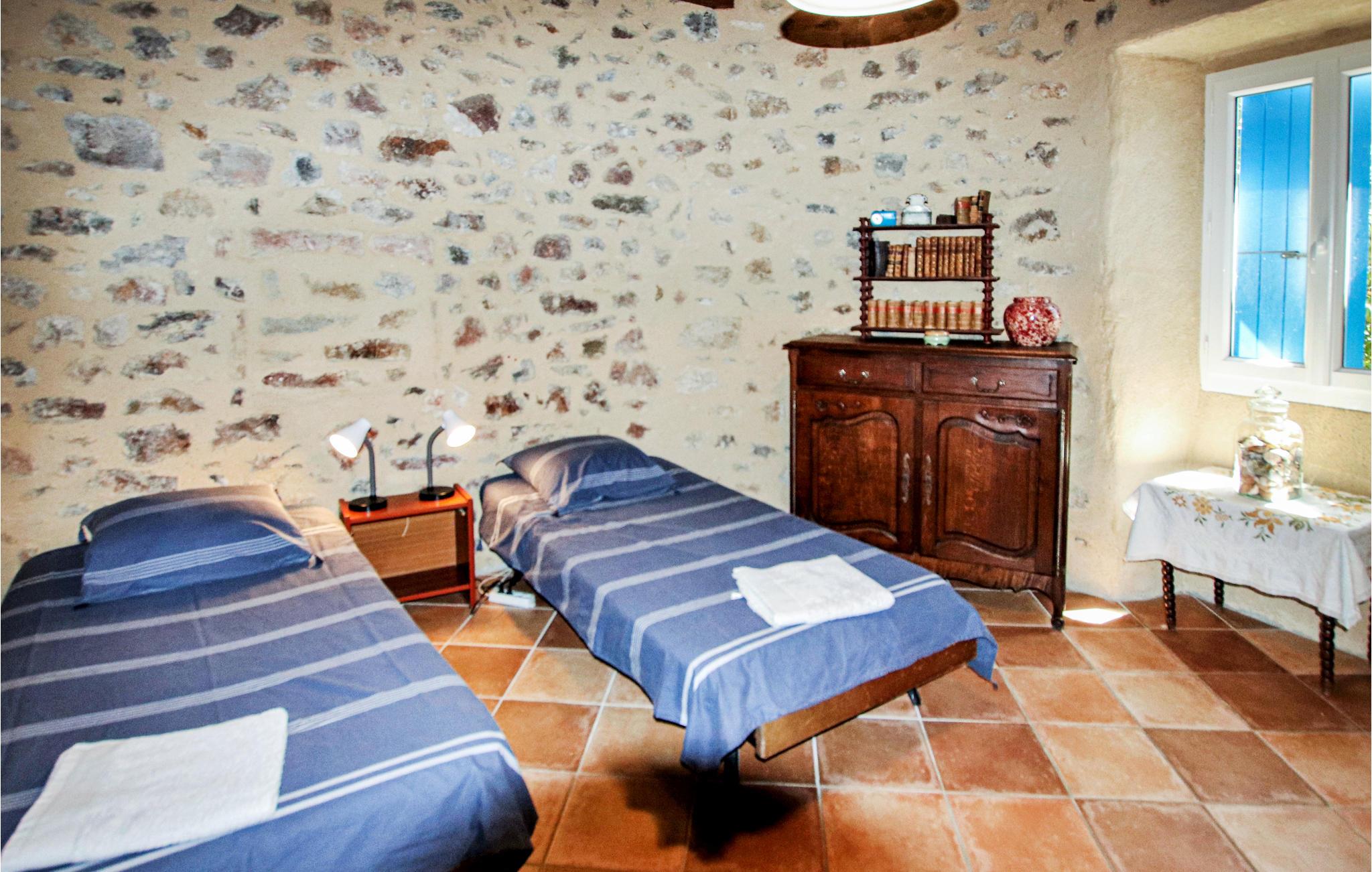 Dette charmerende stenhus med pool ligger på en 20 ha stor vingård og er et sandt paradis, perfekt til en afslappende ferie. Med høj beliggenhed i et bakket landskab hilser huset jer velkommen ved landsbyen Flaviac. Det indre areal er hyggeligt og komfortabelt og udenfor står en meget stor og solrig terasse med fabelagtig panoramaudsigt og et poolhouse, hvor I kan finde skygge, til rådighed. To runde tårne understreger husets middelalderlige charme. Når I besøger vinlageret og vinkælderen, er der selvfølgelig smagsprøver af de ædle dråber, der produceres her.