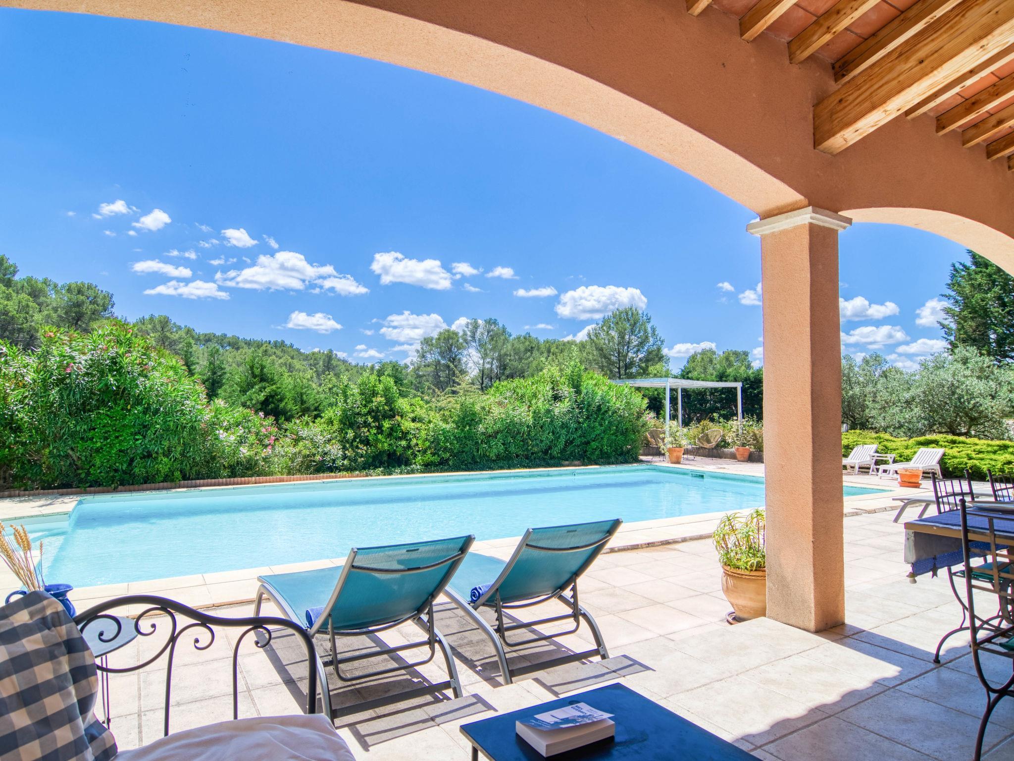 Very beautiful, rustic, comfortable cottage "Solena", surrounded by trees. 3 km from the centre of Flayosc, 15 km from the centre of Tourtour, 41 km from the centre of Saint Tropez, in the residential district, 40 km from the sea, 41 km from the lake, in a cul-de-sac, in the countryside. Private: large, well-kept terraced garden, 3'000 m2 (not fenced) with lawn and trees, swimming pool (12 x 6 m, depth 100 - 250 cm, seasonal availability: 01.Jan. - 31.Dec.) with internal staircase and alarm system. Terrace, garden furniture. 800 m long bumpy motor access. Parking (for 3 cars) on the premises. Shop 3 km, restaurant 3 km, café 3 km, bus stop 2.5 km, railway station "Les Arcs Draguignan" 16 km, sandy beach "Fréjus" 40 km. Golf course (18 hole) 21 km. Nearby attractions: Abbaye du Thoronet, Grottes de Villecroze, La cascade de Sillans, Cotignac, Cannes, Cassis. Well-known lakes can easily be reached: Sainte Croix 41 km. Hiking paths: Gorges du Verdon, Gorges du Blavet, Les Adrets de L Esterel. Please note: car recommended.