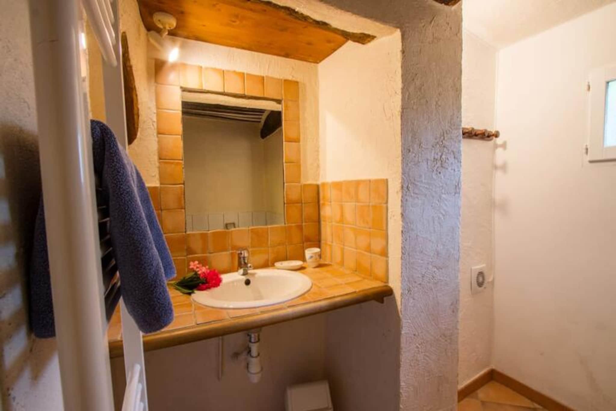 Beliggende i hjertet af Provence tilbyder dette charmerende bondehus et fredeligt og idyllisk tilflugtssted, perfekt for naturelskere og dem, der søger ro. Ejendommen er designet til at rumme 4 til 6 personer og nyder det smukke gyldne lys fra den nedgående sol. I stueetagen har den rummelige stue et hyggeligt område med brændeovn og et fuldt udstyret køkken, ideelt til at tilberede traditionelle provencalske retter som "tian" eller "aïoli". Den skyggefulde terrasse, i læ af et smukt morbærtræ, inviterer dig til at slappe af og nyde måltider al fresco. Et badeværelse med bruser og separat toilet fuldender dette niveau. Ovenpå er det første soveværelse udstyret med to enkeltsenge, der kan sættes sammen til en stor dobbeltseng, mens et soveværelse på mezzanin tilbyder ekstra enkeltsenge. Det store soveværelse, uafhængigt af de andre, har også to enkeltsenge, der kan omdannes til en king-size dobbeltseng. Dette gør stuehuset ideelt for både familier og vennegrupper, der søger et komfortabelt, privat tilflugtssted. Ejendommen ligger på en 6 hektar stor ejendom og er omgivet af frodig middelhavsvegetation, herunder århundredgamle stenege, fyrretræer og enge. Gæsterne kan nyde den fælles 15x5 meter store swimmingpool, som er det perfekte sted til afslapning. Ejendommen er forpligtet til økoturisme ved at bruge økologiske og biologisk nedbrydelige rengøringsprodukter. For ekstra luksus er en spa med sauna, hammam og jacuzzi tilgængelig efter aftale.