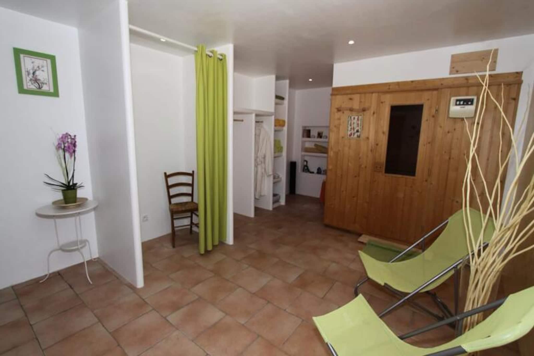 Dette charmerende feriehus, beliggende p? en 6 hektar stor ejendom, er perfekt til store familier eller sm? grupper, der s?ger ro i naturen. Ejendommen har fire sovev?relser, herunder en master med dobbeltseng og en enkeltseng, og yderligere to v?relser med enkeltsenge, der kan omdannes til dobbeltv?relser. En mezzanin med to enkeltsenge tilbyder ekstra soveplads. Det er ikke k?ledyrsvenligt, og der kr?ves et depositum p? ?500. G?sterne kan nyde adgang til en f?lles swimmingpool p? ejendommen. Dette feriehus ligger i hjertet af Provence Verte og tilbyder et fredeligt tilflugtssted omgivet af ?rhundredgamle egetr?er, fyrretr?er og middelhavsvegetation. Omr?det er ideelt til vandreture i naturen, og n?rliggende attraktioner omfatter Middelhavet og Verdon-s?erne. Landsbyens markeder og lokale caf?er tilbyder en smag af autentisk Provence, og ejendommens fredfyldte milj? g?r det perfekt til afslapning. Indvendigt har huset et ?bent amerikansk k?kken, fuldt udstyret med moderne apparater s?som en mikrob?lgeovn, ovn og opvaskemaskine. Den rummelige stue har br?ndeovn, og spisepladsen er et hyggeligt sted at spise. Yderligere faciliteter omfatter et badev?relse med bruser, et separat toilet og en udend?rs solterrasse med en fantastisk udsigt. For ekstra luksus er en spa med sauna, hammam og jacuzzi tilg?ngelig ved reservation.
