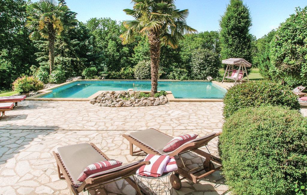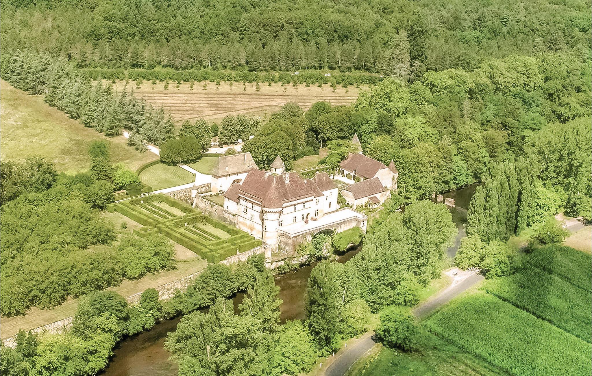 Ejendommen har både privat pool og fantastisk udsigt over slottet Fleurac, så der er rig mulighed for leg.