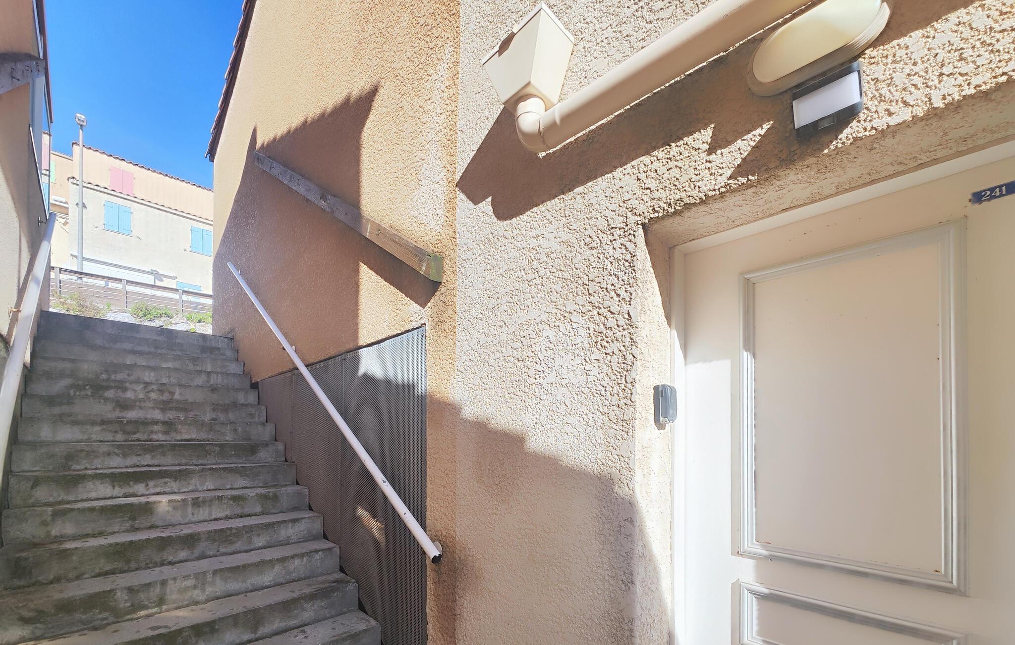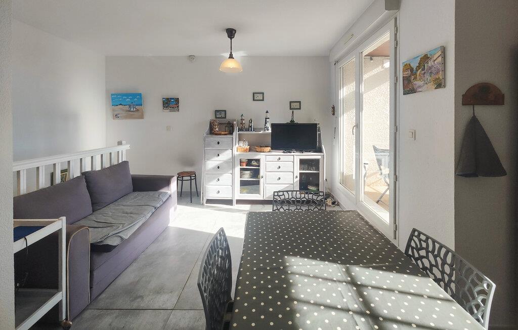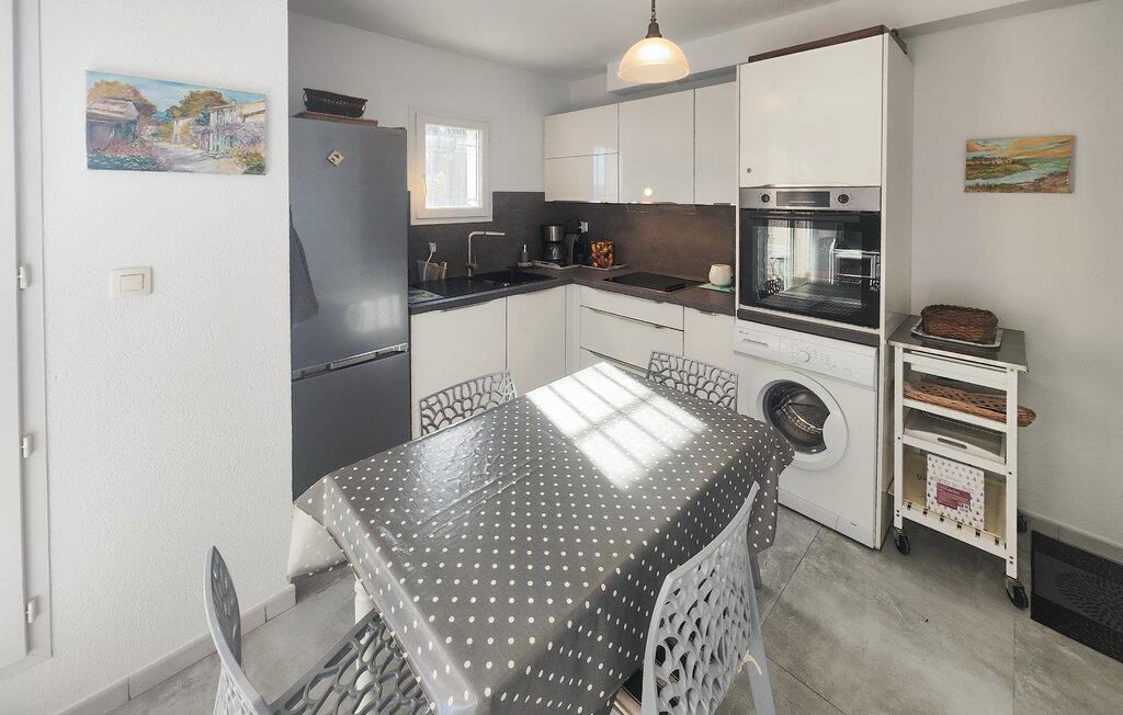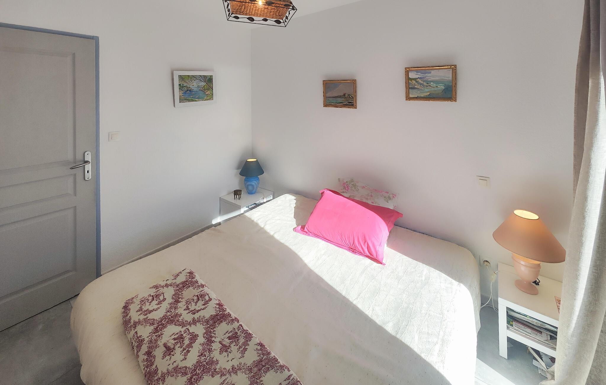 Denne indbydende lejlighed byder jer velkommen med et lyst interiør, beliggende nær Middelhavskysten. Føl jer hjemme, mens I tilbereder lækre retter sammen og nyder afslappede måltider ved det indbydende spisebord. Planlæg jeres aktiviteter og slap af om aftenen med et brætspil eller en god bog i sofaen.