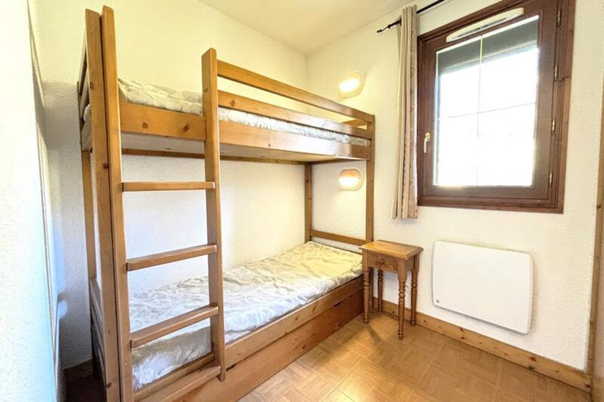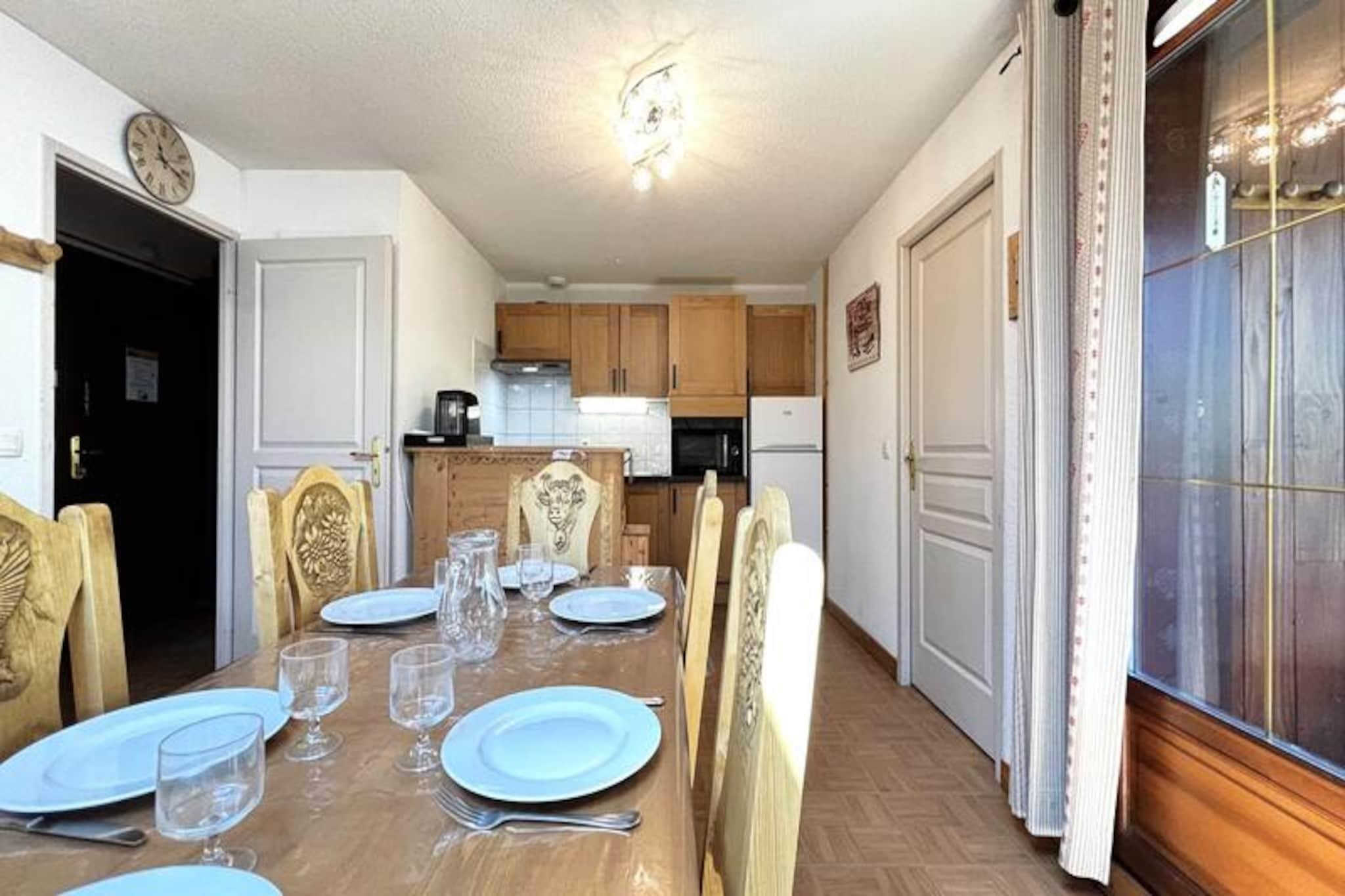 I de franske alpers fredfyldte omfavnelse tilbyder denne charmerende lejlighed i Les Chalets des Evettes et perfekt tilflugtssted for bjergentusiaster. Med en betagende udsigt fra sin rummelige terrasse er denne ejendom ideelt beliggende ved foden af ??Espace Diamant-skiløjperne, hvilket sikrer ubesværet adgang til 192 km sammenhængende pister, der strækker sig over seks maleriske skisportssteder. Uanset om du er en ivrig skiløber eller nybegynder, gør den venlige atmosfære og de uberørte landskaber hvert øjeblik uforglemmeligt. Den opvarmede indendørs swimmingpool er en dejlig bonus, der inviterer dig til at slappe af efter en dag med alpine eventyr. \n\nLejligheden er designet til op til seks gæster og har en hyggelig stue med fladskærms-tv og et åbent køkken udstyret med moderne apparater, herunder induktionskogeplader, en kombinationsovn og en opvaskemaskine. Sovearrangementerne er gennemtænkte med et soveværelse med dobbeltseng, et værelse med køjesenge og en udtræksseng samt en sovesofa i stuen. Badeværelset med badekar og separat toilet bidrager til komforten, mens faciliteter som et skiskab og privat parkering sikrer bekvemmelighed under hele dit ophold. \n\nUd over pisterne tilbyder landsbyens centrum Flumet, kun 3 km væk, en perfekt alpin oplevelse med sit fritidscenter, kunstneriske minigolfbane, skatepark og skyggefulde legepladser, der er perfekte for familier. Om sommeren giver Evettes-stoleliften adgang til panoramaudsigt over Aravis-bjergkæden, mens de nærliggende vandrestier og mountainbike-ruter lover endeløs udforskning. For et skifte i landskabet kan du besøge Megève, Chamonix eller Annecy, der hver især tilbyder unik charme og aktiviteter inden for en times kørsel. \n\nUanset om du søger spændende vintersport eller rolige sommerferier, kombinerer denne bolig komfort, bekvemmelighed og Alpernes magi, hvilket gør den til et ideelt valg til din næste ferie.