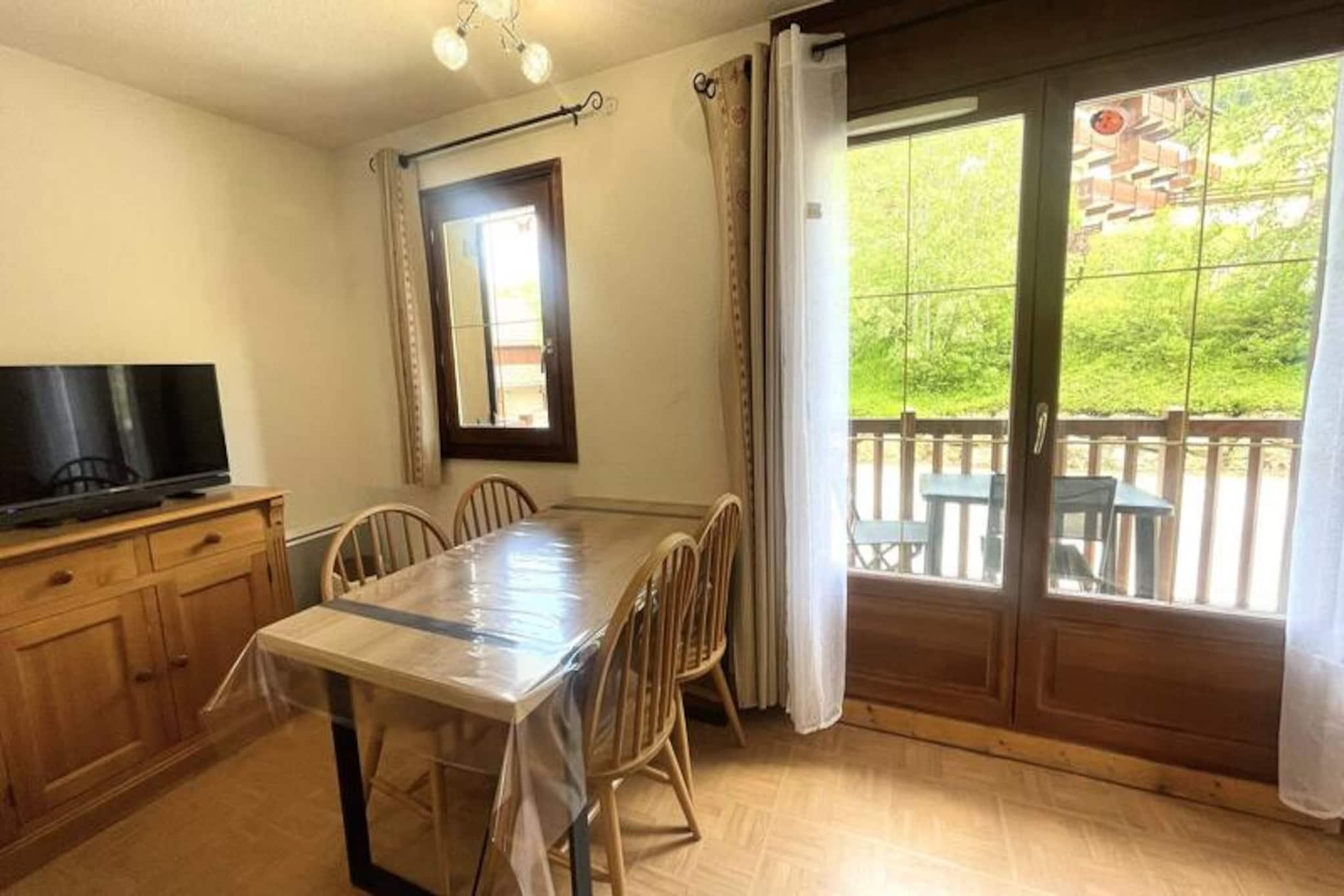 I hjertet af de franske alper, hvor charmen fra traditionelle alpelandsbyer møder spændingen ved skiløb i verdensklasse, ligger Les Chalets des Evettes. Denne hyggelige bolig med opvarmet swimmingpool er perfekt placeret ved foden af ??Espace Diamant-skiløjperne og tilbyder uovertruffen adgang til 192 km uberørte løjper. Uanset om du er en erfaren skiløber eller en nybegynder, sikrer den nærliggende skiskole og det varierede terræn et uforglemmeligt vintereventyr. Den maleriske landsby Flumet, kun 3 km væk, bidrager til charmen med sin autentiske atmosfære og bekvemme faciliteter. \n\nSelve lejligheden er et varmt og indbydende tilflugtssted, designet til komfortabelt at rumme op til fire gæster. Dens bjerginspirerede indretning skaber en hyggelig atmosfære, mens den sydvendte balkon tilbyder en fantastisk udsigt over de omkringliggende tinder. Det åbne køkken er fuldt udstyret med moderne apparater, herunder induktionskogeplader, en kombineret mikrobølgeovn og en opvaskemaskine, hvilket gør det nemt at tilberede måltider efter en dag på pisterne. Opholdsstuen med en udtrækssovesofa og tv giver et perfekt sted at slappe af, mens det separate dobbeltværelse sikrer privatliv og komfort. Yderligere faciliteter såsom et skirum og privat parkering bidrager til bekvemmeligheden.\n\nUd over pisterne forvandles regionen til et sommerparadis. Vandrestier og mountainbike-ruter starter lige fra boligen, og Evettes-stoleliften tilbyder en betagende panoramaudsigt over Aravis-bjergkæden. Kun 3 km væk inviterer Flumet-søen familier til at nyde sit fritidscenter, komplet med minigolf, legeområder og sportsfaciliteter. For dem, der søger kulturelle og naturlige vidundere, ligger Megève, Chamonix og Annecy alle inden for en times kørsel og tilbyder alt fra elegante restauranter til ærefrygtindgydende landskaber.\n\nUanset om du jagter puddersne om vinteren eller udforsker alpine stier om sommeren, er Les Chalets des Evettes din port til det bedste af de franske alper. Med sin blanding af komfort, bekvemmelighed og fantastiske omgivelser lover det en ferie fyldt med værdsatte minder.