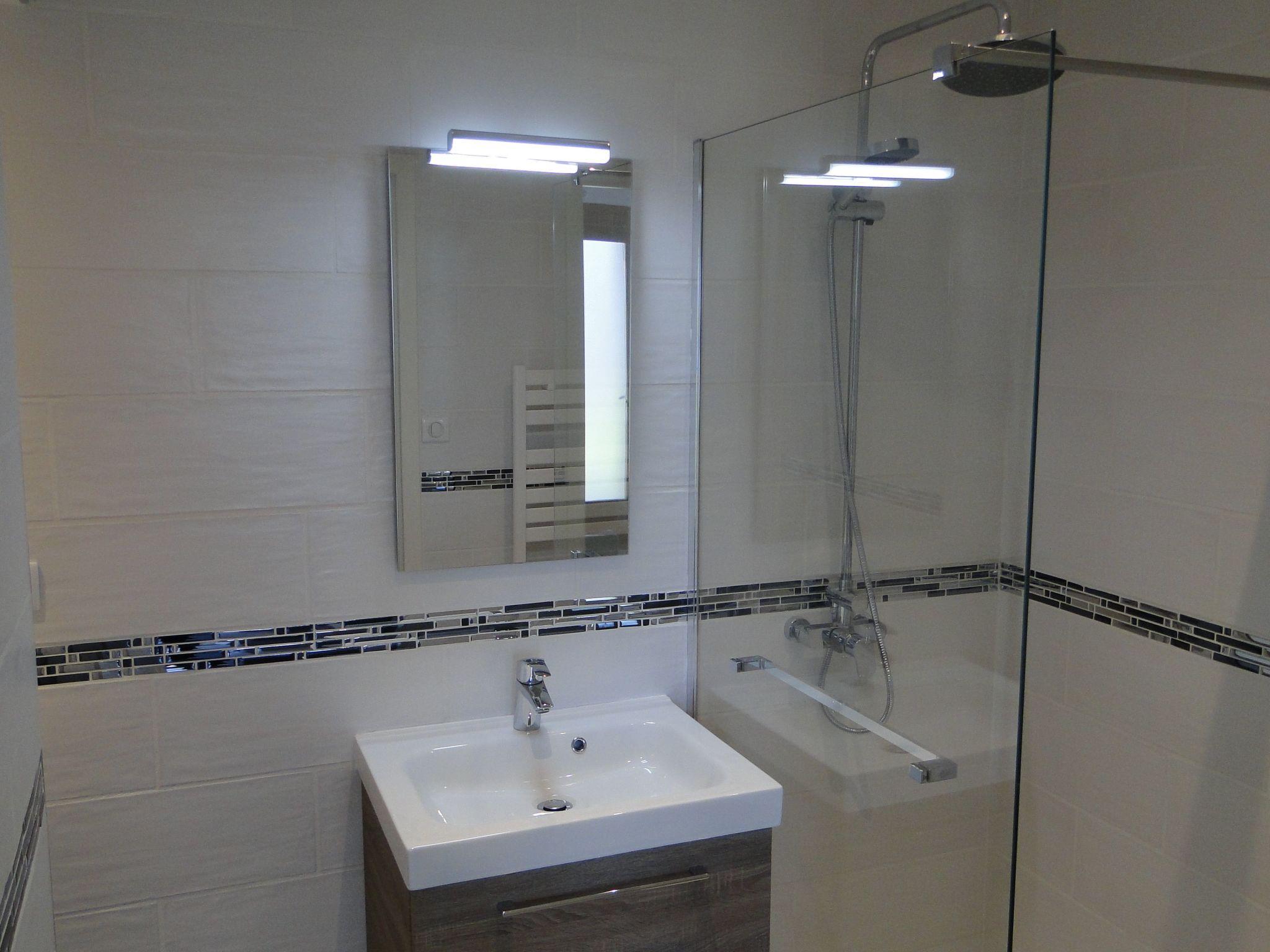 ~ Bathroom: Italian shower, washbasin, heated towel rail.