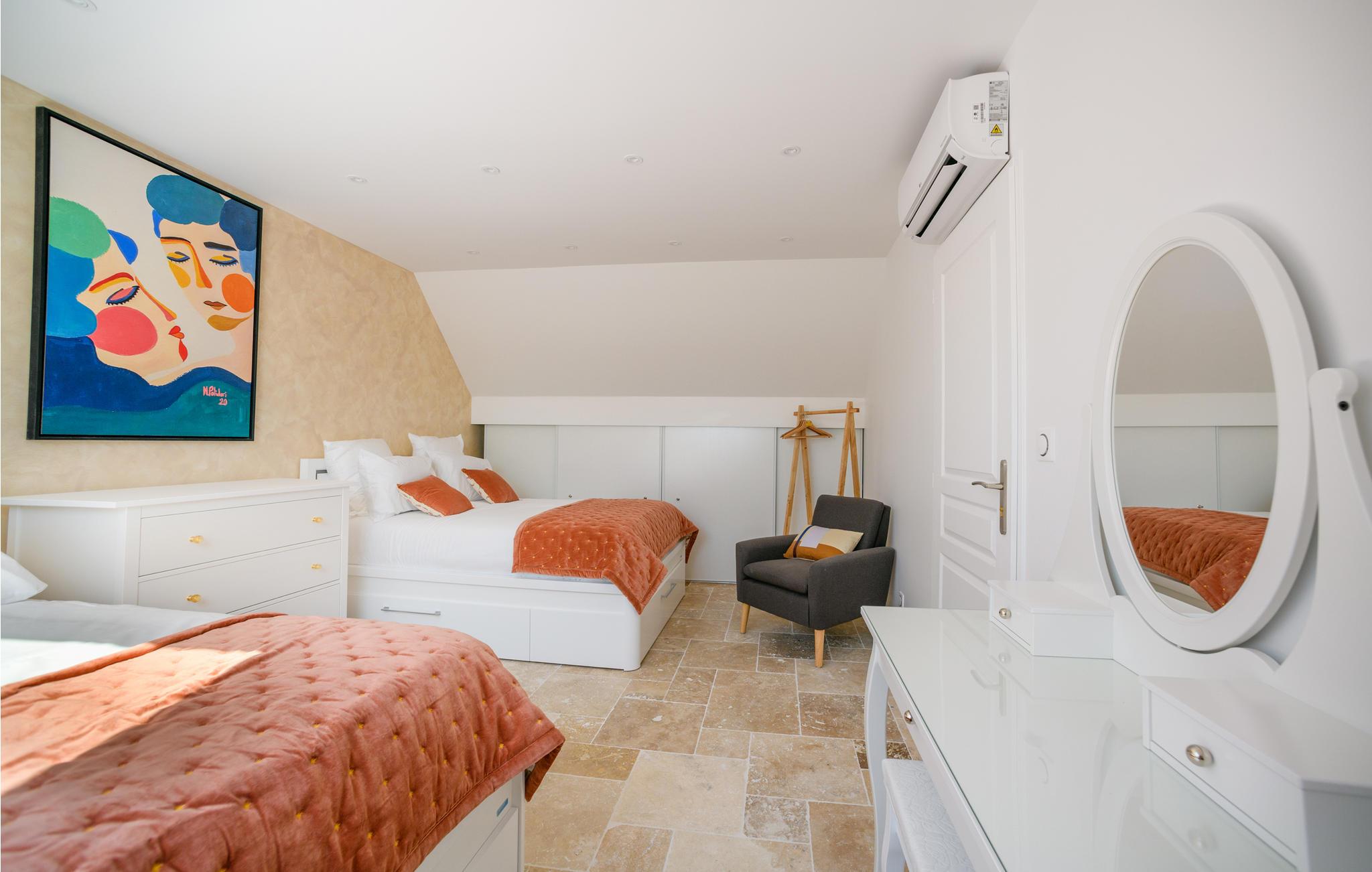 Her kan I slappe af med jeres kære i attraktive rammer. Dette komfortable hus byder jer velkommen i en rolig beliggenhed i Loire-dalen. Med sine lyse lokaler, som er moderne og indrettet med smart placerede farveaccenter, er huset det ideelle sted for en hyggelig pause med hele familien. Brug den som base for spændende udflugter og nyd tiden sammen, i opholdsstuen kan I finde jer tilpas om aftenen, spise sammen, se en film eller arrangere en spilleaften.