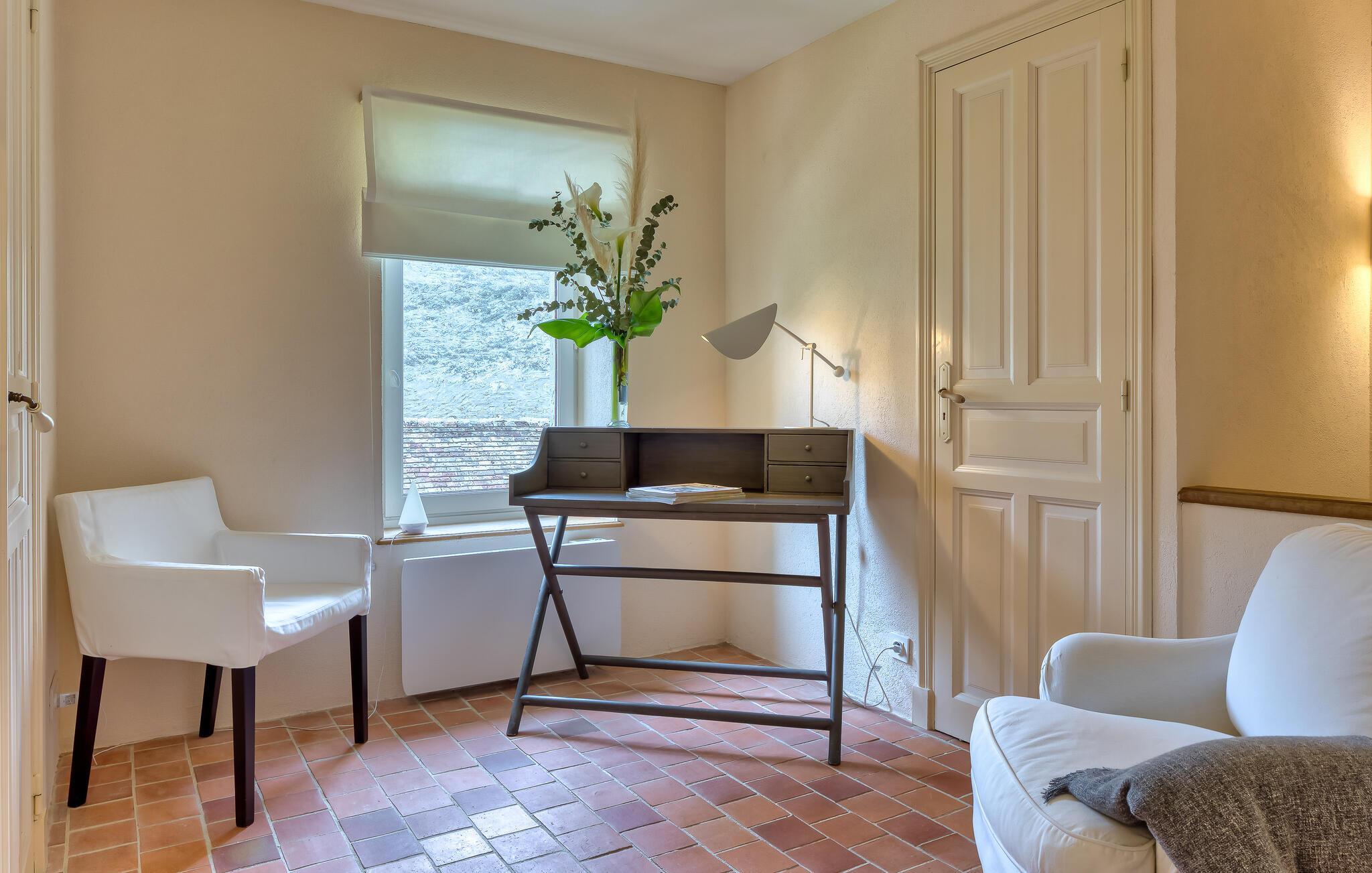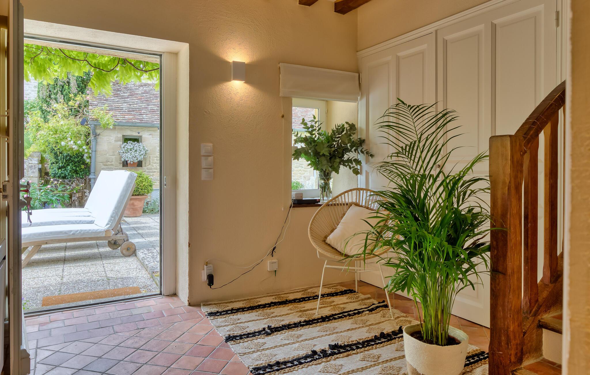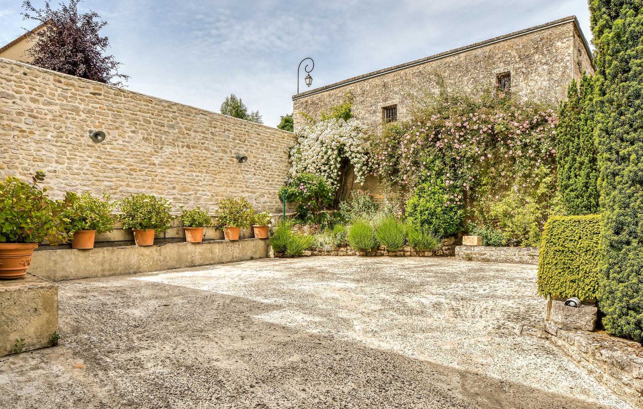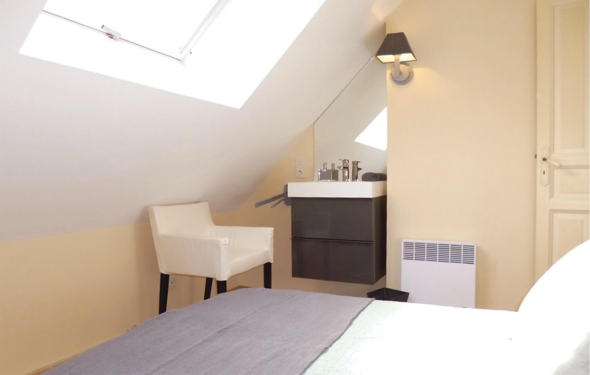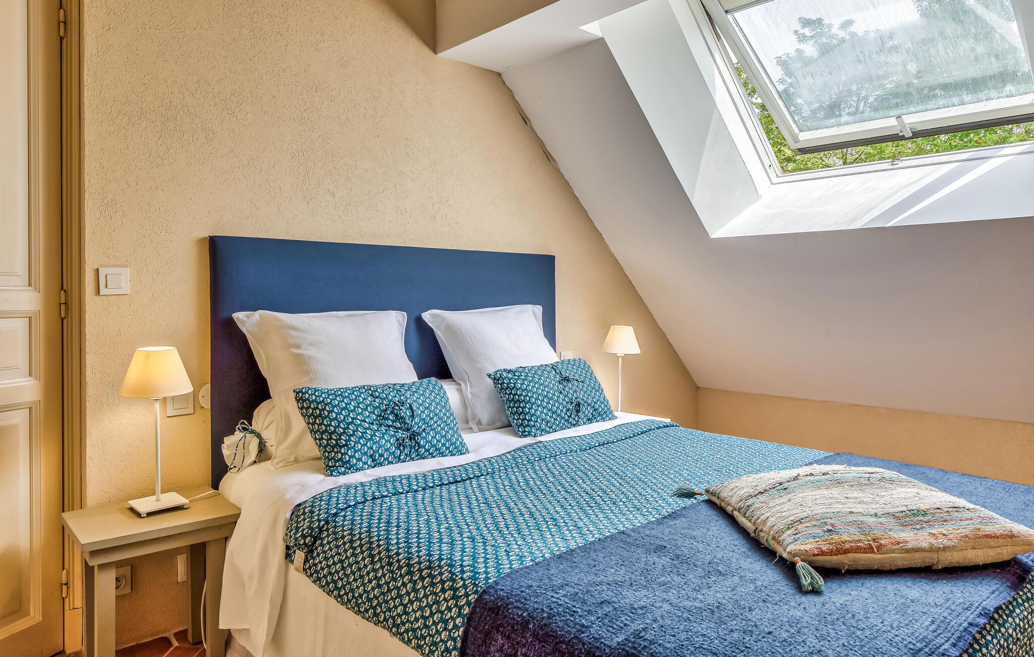 Ro og afslapning i det grønne! Det kan I opnå, hvis I vælger at holde jeres ferie i dette normanniske landhus fra det 19. århundrede. Slap af i den yderst velplejede have og spis jeres måltider på den solforkælede grillterrasse. Græsplænen er delvist omgivet af vandløb, og I kan gå herlige ture på den skovdækkede ejendom. I stuen er der en åben pejs, som er med til at gøre også de kølige eftermiddage til en hyggelig oplevelse. Mod forespørgsel kan I få stillet en strandkabin til rådighed i Bernières-sur-Mer, 8,5 km herfra. Opdag Juno Beach og de andre landingsstrande af de Allierede under 2. Verdenskrig. Her bor I mellem Caen og Bayeux, det helt rette sted til at opleve denne historierige region. I kan spille golf på Golf d’Omaha Beach (29 km) eller Golf Blue Green Caen i Biéville-Beuville (15 km), og I kan ride i Bernières-sur-Mer (11 km). For afveksling sørger også tennisbanerne i Thaon (3 km) og minigolfanlægget i Courseulles-sur-Mer (8 km). Kun 50 km mod øst ligger landskabet Pays d'Auge med hestegårde, æbleplantager og en æblevinsrute, og også Côte Fleurie, blomsterkysten, er et herligt mål for en dagstur. Langs denne kyst venter seværdige byer som Cabourg, Deauville, Trouville-sur-mer og Honfleur.