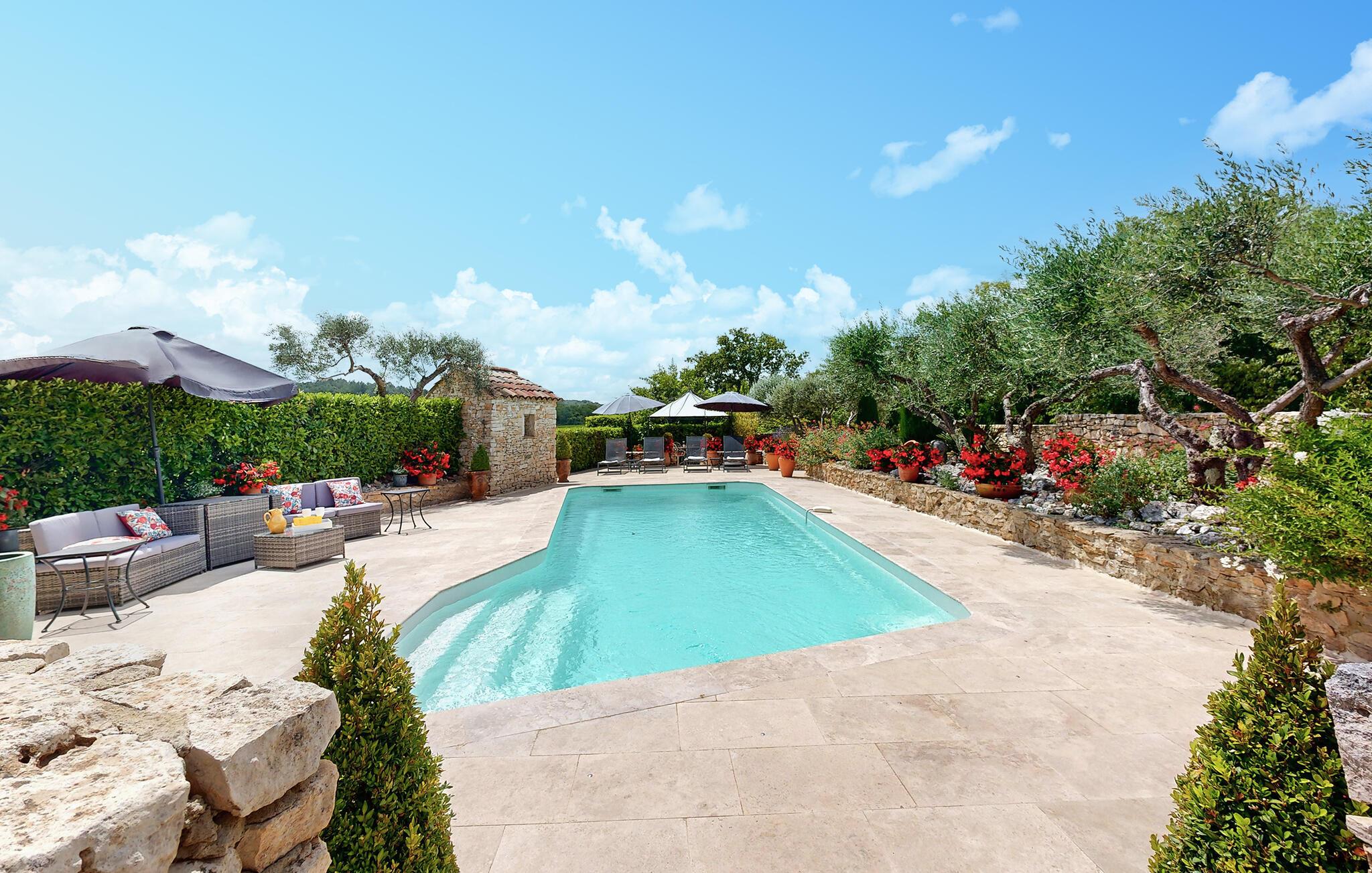 Gå udenfor for at nyde solen, tage en dukkert i saltvandspoolen og tilbring uforglemmelige sommeraftener under åben himmel i havens oliventræer og lavendel.