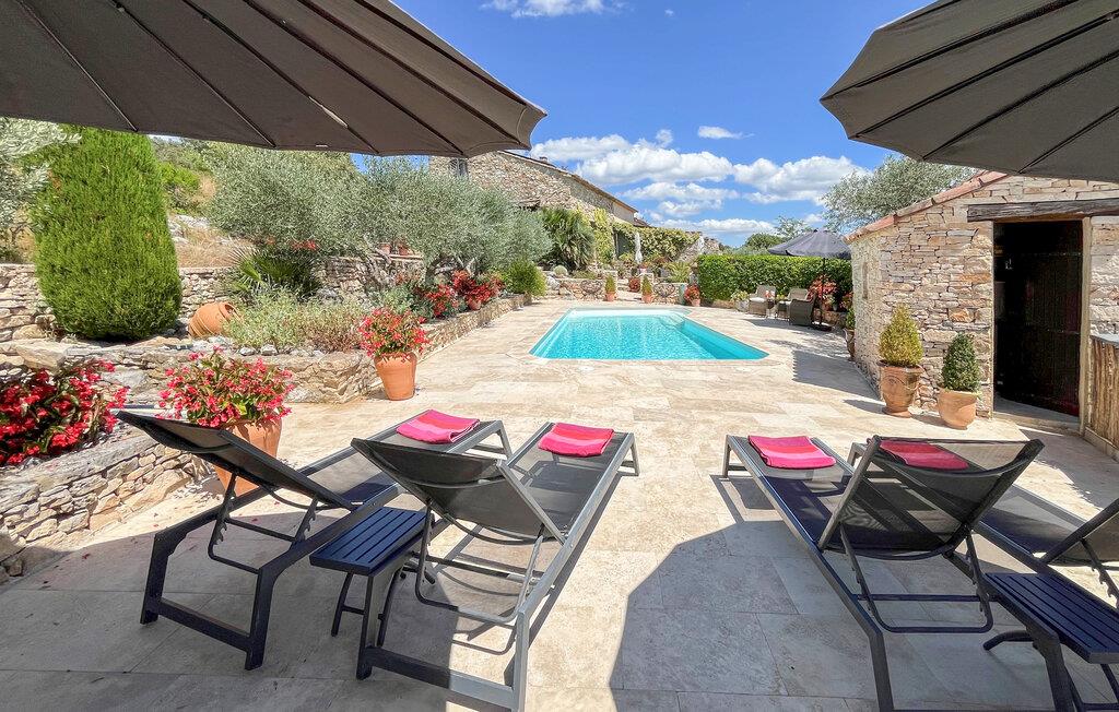 Dette indbydende hus er en smukt ombygget fårefold i en fortryllende beliggenhed midt blandt vinmarker. Det ligger kun en kort køretur fra Uzès, kendt for sin velbevarede middelalderarkitektur og den berømte Place aux Herbes. Tilbered måltider sammen i køkkenet og mindes dagens eventyr under middagen, før I slapper af på sofaen i den hyggelige stue.