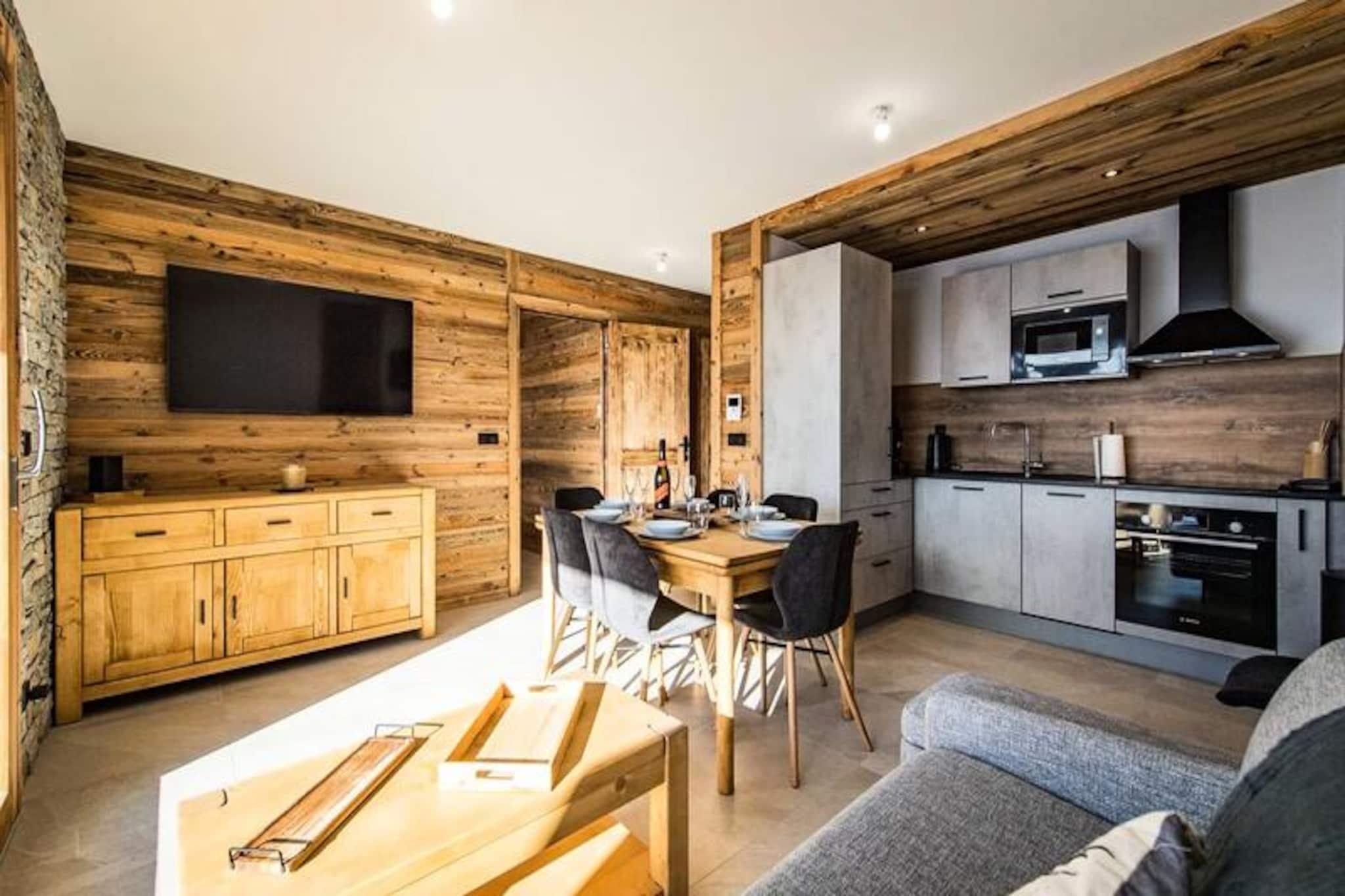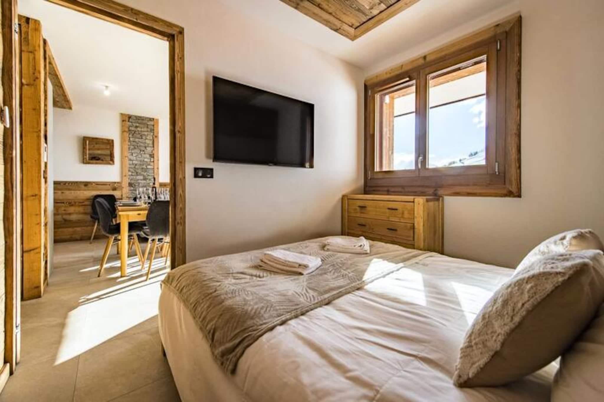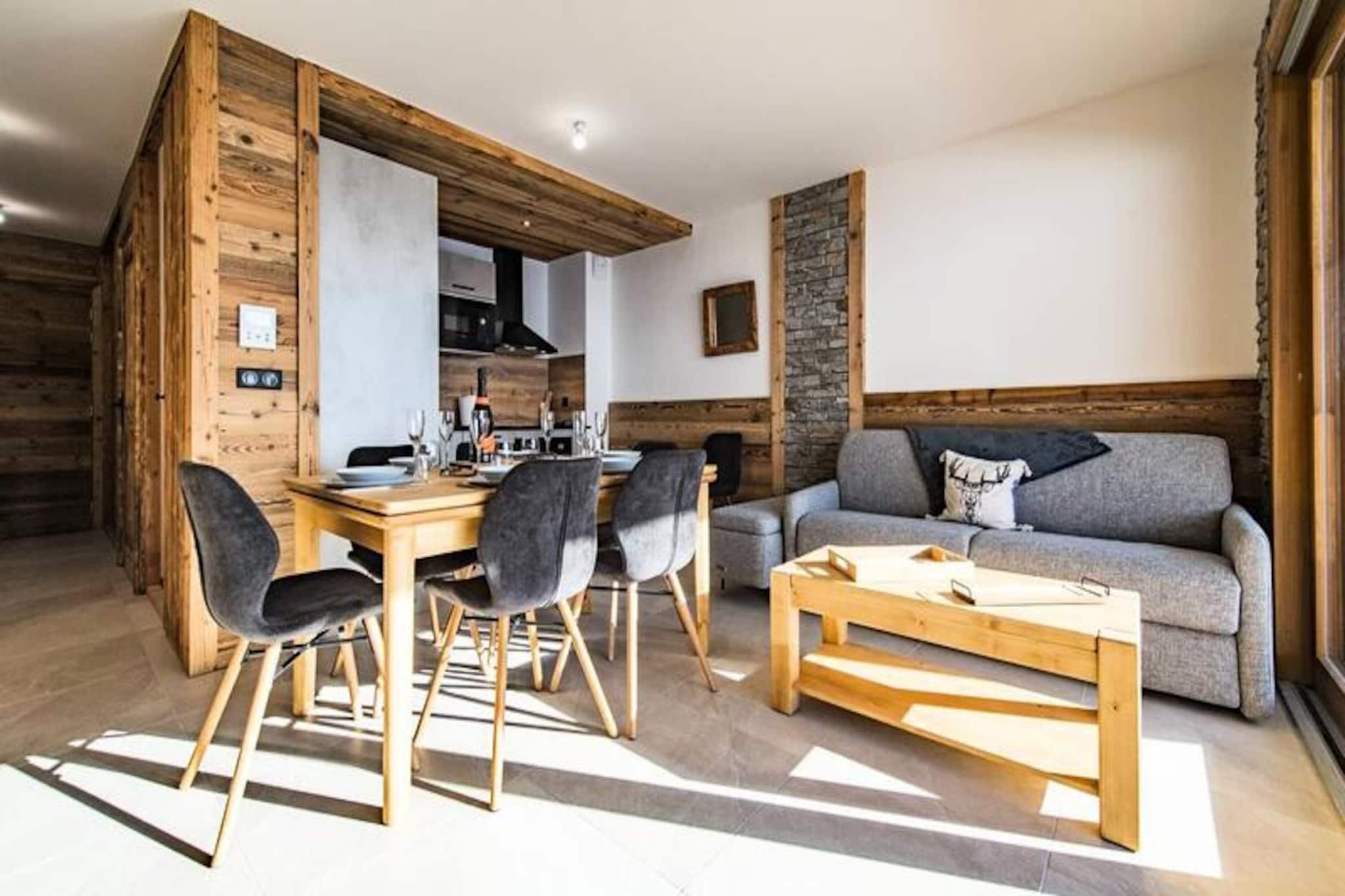 Under de tårnhøje tinder af Aiguilles d'Arves tilbyder denne helt nye alpine lejlighed en uovertruffen ski-in, ski-out oplevelse langs den blå Marmotte-piste. Forestil dig at træde ud af din bolig og glide direkte ud på snefronten, hvor Bellard-stoleliften og de vigtigste skilifter venter på at føre dig ind i hjertet af de franske alper. Med fodgængeradgang til feriestedet kun få minutter væk er du perfekt placeret til at nyde både spændende bjergeventyr og den pulserende landsbyatmosfære. \n\nIndenfor er den 53 m² store lejlighed en oase af varme og elegance med materialer af høj kvalitet og gennemtænkt design. Stuen åbner ud til en balkon med betagende udsigt over de omkringliggende tinder, hvilket skaber et roligt sted at slappe af efter en dag på pisterne. En hyggelig stue-spisestue og et fuldt udstyret køkken gør det nemt at dele måltider og øjeblikke med dine kære. Sovearrangementet er ideelt til familier eller grupper, med to soveværelser med queensize-senge - det ene med eget tv - og et tredje soveværelse med køjesenge. Et moderne badeværelse og separat toilet fuldender planløsningen og sikrer komfort og bekvemmelighed for alle gæster.\n\nResidensen kan prale af førsteklasses faciliteter, herunder en indendørs parkeringsplads, et skirum med støvletørrer og Wi-Fi. Slutrengøring, sengelinned og håndklæder er inkluderet, så du kan fokusere udelukkende på afslapning. Ved at booke på forhånd får du også eksklusive rabatter på liftkort og skiudstyr, der leveres direkte til din lejlighed ved ankomst.\n\nUanset om du er her for at grave dig gennem uberørt puddersne, udforske naturskønne stier eller blot nyde den alpine charme, lover denne lejlighed uforglemmelige øjeblikke for både familier og venner. Reserver dit ophold i dag og omfavn bjergenes magi i enhver sæson.