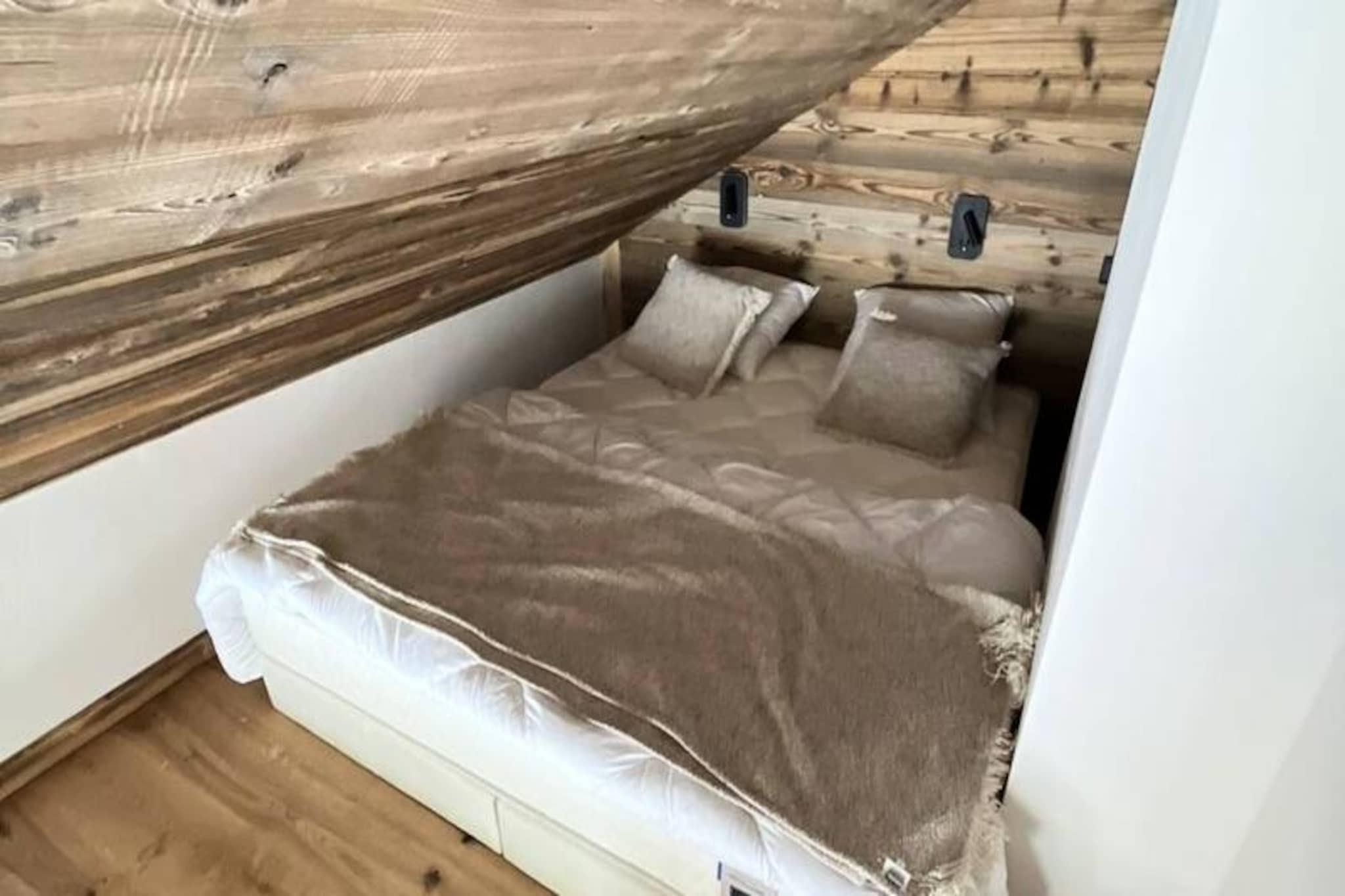 Højt over de glitrende skråninger i de franske alper tilbyder denne helt nye lejlighed i La Grande Verdette-residensen en uovertruffen ski-in, ski-out-oplevelse. Beliggende langs den blå Marmotte-piste glider du ubesværet til snefronten og de vigtigste skilifte på få sekunder. Med fodgængeradgang til resortet kun en kort gåtur væk kombinerer dette moderne tilflugtssted bekvemmelighed med alpin charme og tilbyder en perfekt base for dine bjergeventyr. Residensen, der forventes færdiggjort i efteråret 2024, blander moderne design med den tidløse skønhed i omgivelserne. \n\nIndenfor udstråler den 50 m² store lejlighed varme og elegance med materialer af høj kvalitet og gennemtænkte detaljer overalt. Stuen åbner ud til en hyggelig 8 m² nordvendt balkon, ideel til at nyde den fredfyldte udsigt over bjergene. Et fuldt udstyret køkken, spiseplads og et smart designet soveområde med en enkeltseng sikrer komfort og praktisk anvendelighed. Lejligheden har plads til op til syv gæster, med et soveværelse med en unik 160x200 køjeseng til fire og en mezzanin med en queensize-seng. Et elegant badeværelse og separat toilet fuldender planløsningen, mens faciliteter som indendørs parkering, et skirum med støvletørrer og inkluderet slutrengøring forbedrer dit ophold. \n\nUd over lejligheden ligger Bellard-stoleliften kun få skridt væk, hvilket gør det nemt at udforske det vidtstrakte skiområde. Uanset om du carver gennem puddersne eller nyder afterskiing, tilbyder resortet uendelige muligheder for sjov og afslapning. Om sommeren forvandles området til et paradis for vandreture, cykling og naturudforskning. Med nedsatte priser på liftkort og leje af udstyr, der er tilgængeligt ved forudbestilling, er hver detalje skræddersyet til at sikre en problemfri ferieoplevelse. \n\nPerfekt til familier eller vennegrupper inviterer denne alpine perle dig til at skabe uforglemmelige minder midt i de majestætiske tinder i Tarentaise-dalen. Book nu, og lad bjergenes magi udfolde sig foran dig.