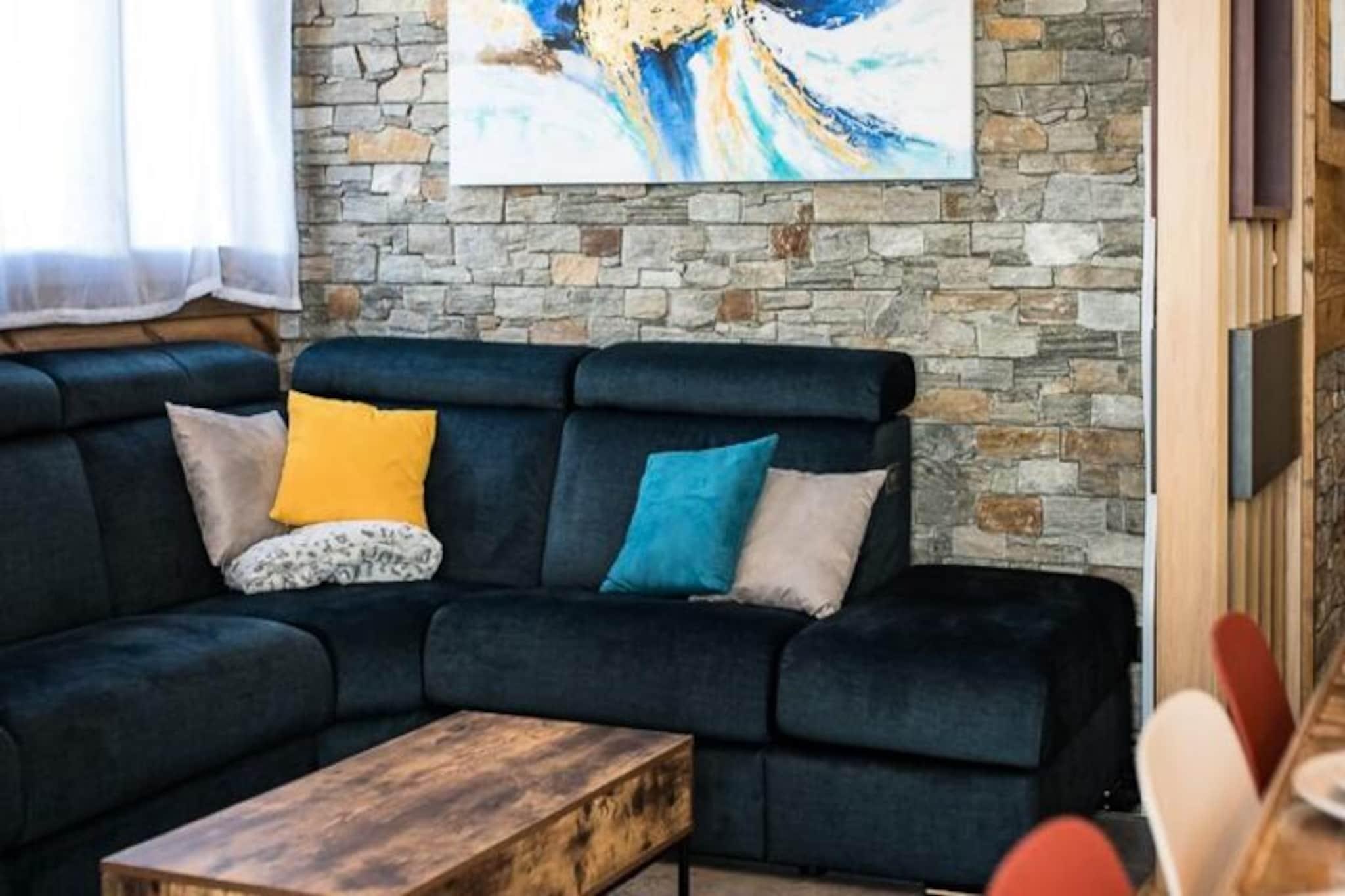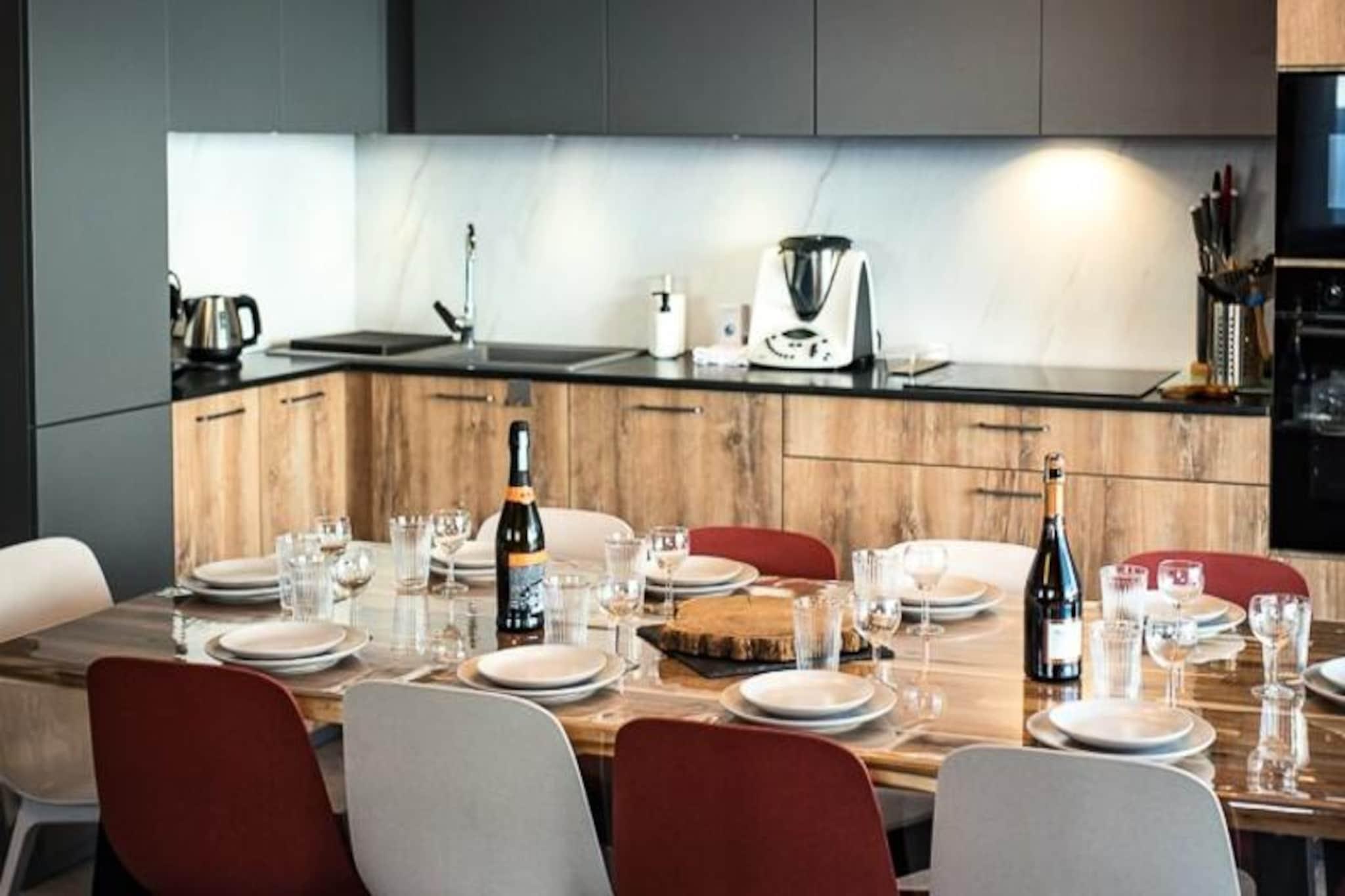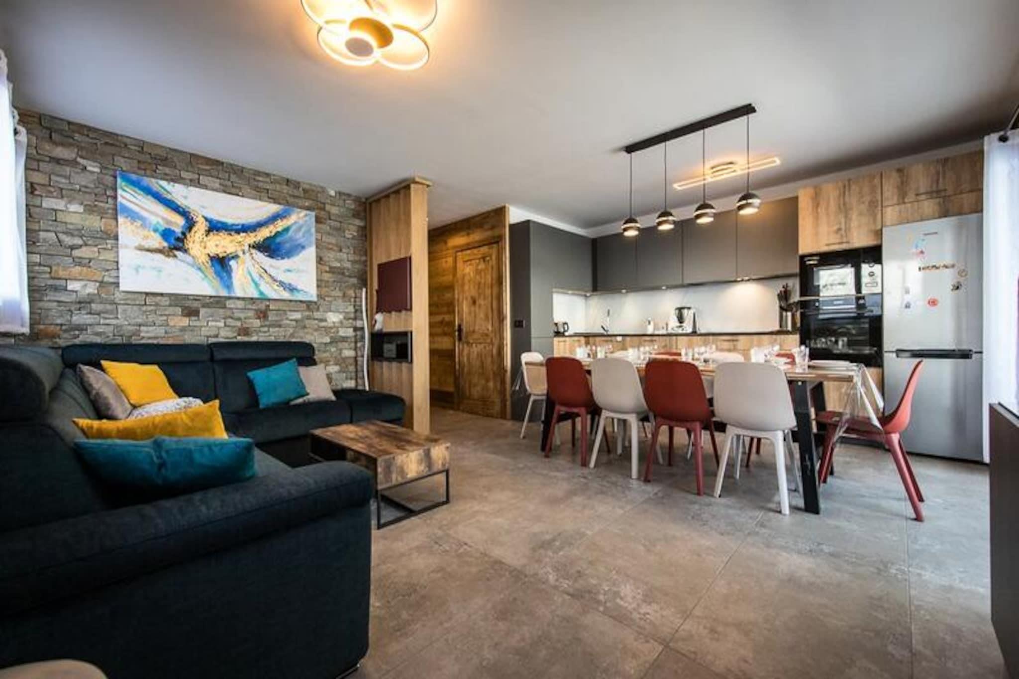 I hjertet af de franske alper, hvor Marmotte-pisten snor sig blidt op mod snefronten, ligger den helt nye residens La Grande Verdette. Dette moderne alpine tilflugtssted, der efter planen åbner i efteråret 2024, tilbyder den ultimative ski-in, ski-out bekvemmelighed med direkte adgang til Bellard-stoleliften og de vigtigste lifte i resortet. Forestil dig at træde ud af døren og glide ud på de uberørte pister på få sekunder, omgivet af betagende bjergudsigt og frisk alpeluft. En kort gåtur bringer dig til resortets pulserende gågade, hvor butikker, restauranter og afterski-oplevelser venter. Indenfor er denne 69 m² store lejlighed en oase af varme og komfort, designet med materialer af høj kvalitet og gennemtænkte detaljer. Opholdsstuen åbner ud til en møbleret terrasse, perfekt til at nyde de rolige omgivelser. Slap af i den hyggelige tv-stue med en sovesofa, eller saml jer omkring spisebordet til fælles måltider tilberedt i det fuldt udstyrede køkken. Lejligheden har tre soveværelser: en master suite med eget badeværelse og tv, et andet soveværelse med dobbeltseng og tv og et tredje soveværelse med to køjesenge, ideelt til børn eller venner. Et andet badeværelse og separat toilet sikrer bekvemmelighed for alle gæster. Praktiske faciliteter inkluderer to indendørs parkeringspladser, hvoraf den ene er tilgængelig og ligger i nærheden af ??elevatoren, et skirum med støvletørrer og Wi-Fi. Slutrengøring, sengelinned og badehåndklæder er inkluderet, hvilket gør dit ophold så problemfrit som muligt. Kæledyr er velkomne, og lejligheden er røgfri. For ekstra bekvemmelighed leveres liftkort bestilt gennem bureauet direkte til din lejlighed ved ankomst, og der tilbydes rabat på liftkort og leje af udstyr ved forudbestilling. Uanset om du er her for spændende dage på pisterne eller rolige aftener ved pejsen, lover La Grande Verdette uforglemmelige øjeblikke med familie eller venner i hjertet af Alperne.