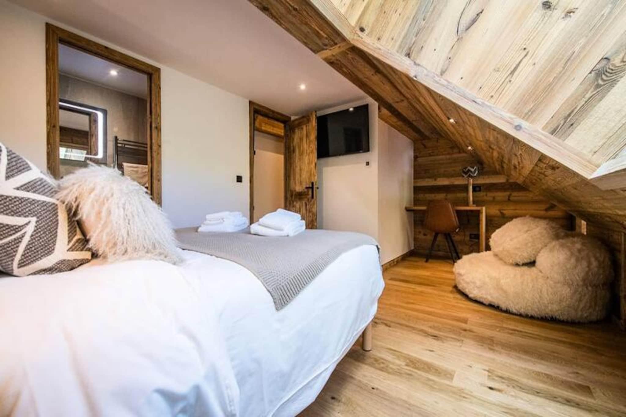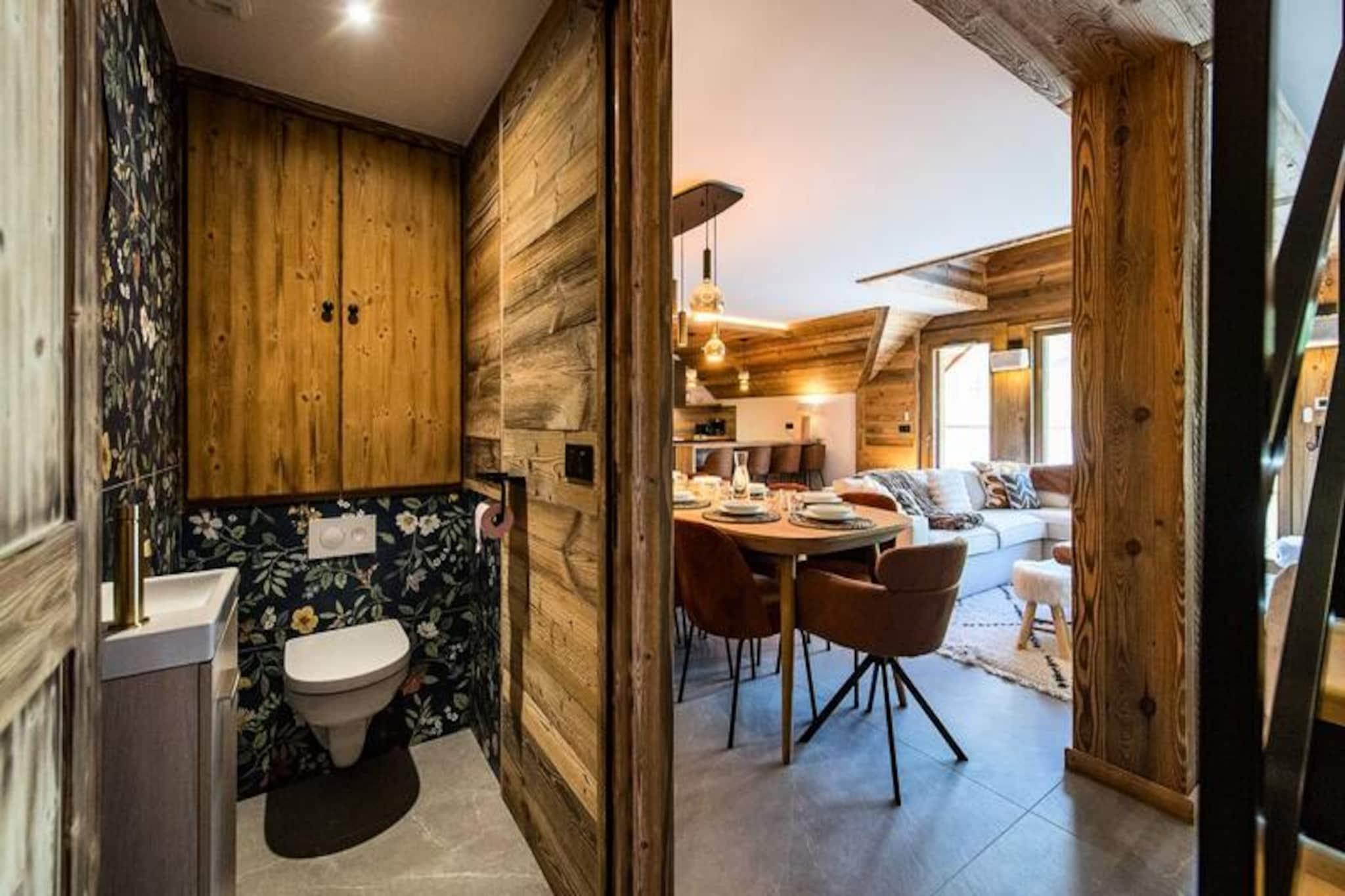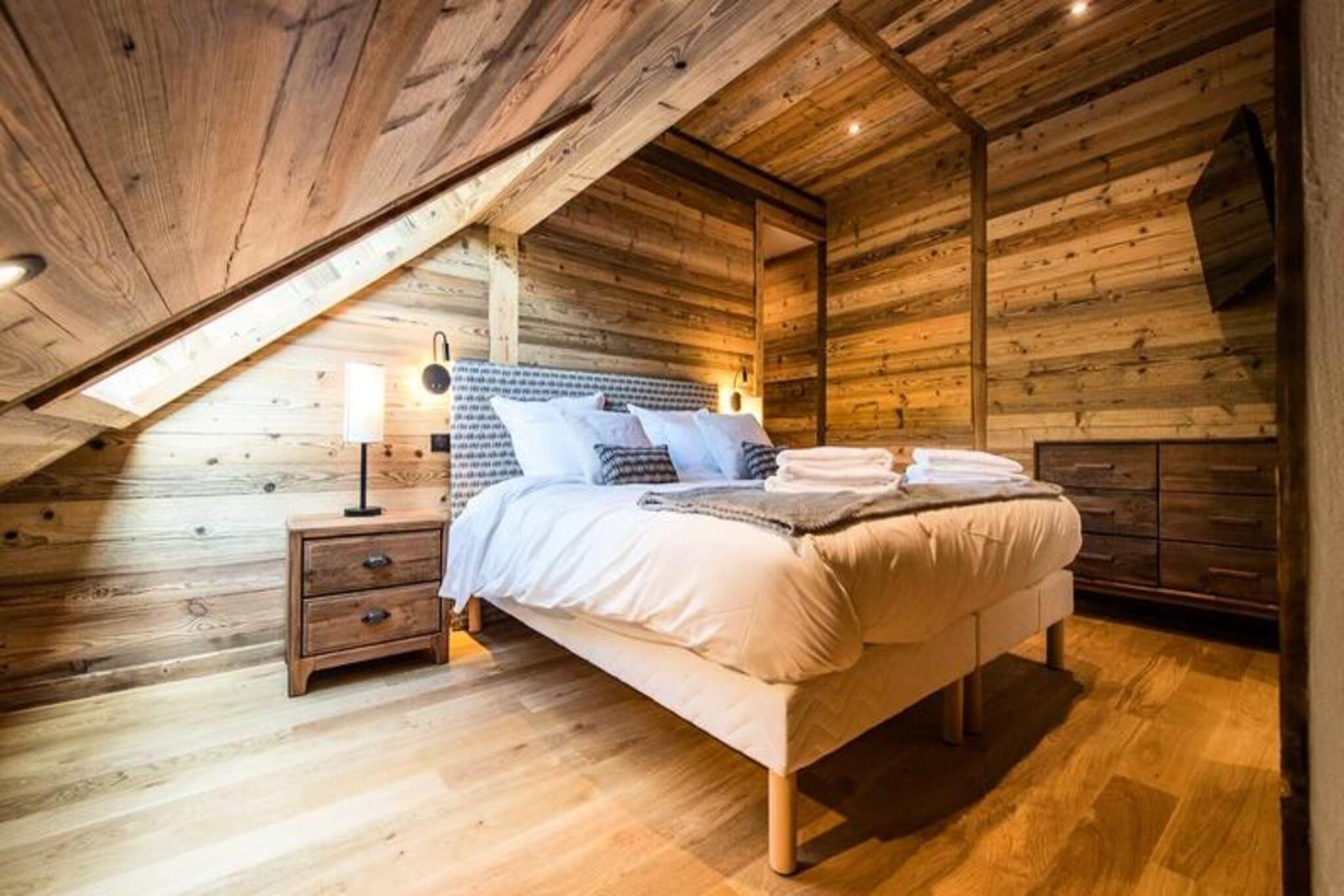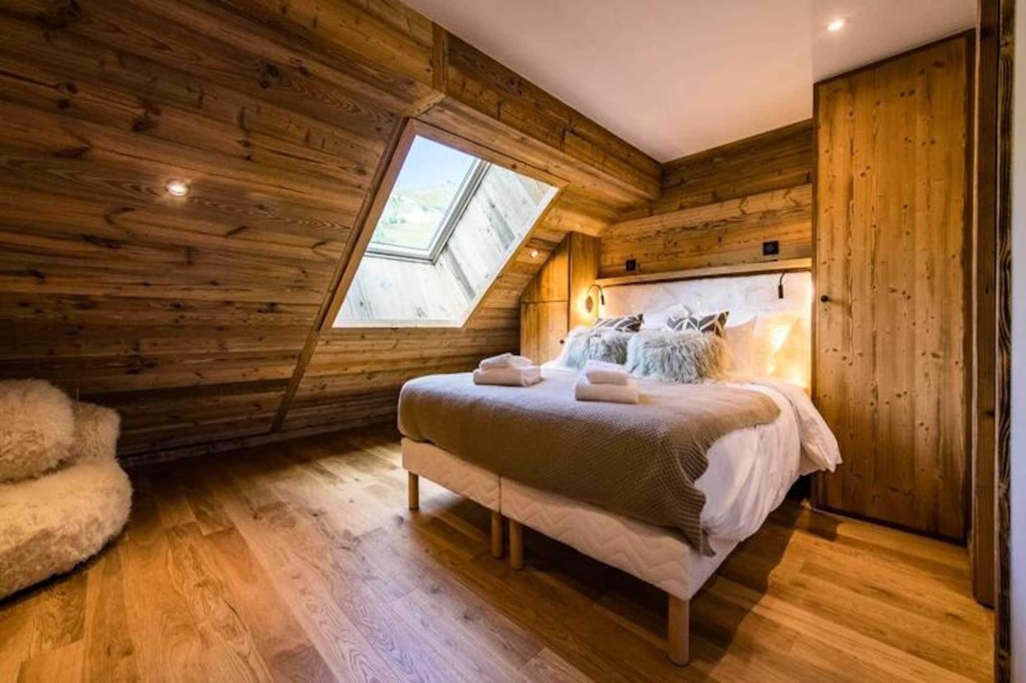 Højt over de glitrende snemarker i La Toussuire inviterer denne luksuriøse duplexlejlighed dig til at opleve de franske alper med stil. Med en betagende udsigt fra den store vestvendte terrasse, komplet med en privat sauna og udendørs jacuzzi, er hvert øjeblik her fyldt med alpin charme. Uanset om du nyder de varme bobler eller ser solnedgangen over bjergtoppene, tilbyder denne bolig et roligt tilflugtssted for familier og venner, der søger en uforglemmelig bjergflugt. \n\nLejligheden er på 130 m² og kombinerer varm, elegant indretning med materialer af høj kvalitet for at skabe en hyggelig, men sofistikeret atmosfære. Den åbne opholdsstue har et fuldt udstyret køkken, en spiseplads og en stue med en bioethanolpejs, perfekt til afslapning efter en dag på pisterne. Fem omhyggeligt designede soveværelser giver rigelig plads til op til tolv gæster, hver med sit eget badeværelse for ultimativ komfort. Yderligere faciliteter inkluderer to skibokse med støvletørrer, et vaskerum og WiFi i hele ejendommen. Slutrengøring, sengelinned og håndklæder er inkluderet, hvilket sikrer en problemfri ferieoplevelse. \n\nBeliggende direkte ved snefronten tilbyder denne lejlighed ægte ski-in/ski-out-bekvemmelighed, så du kan komme ud og prøve pisterne på få minutter. Den nærliggende La Grande Verdette tilbyder reserveret indendørs parkering, mens der er yderligere offentlig parkering i centrum af feriestedet. Ud over skiløb kan La Toussuire prale af en livlig landsbyatmosfære med butikker, restauranter og afterski-aktiviteter kun få skridt væk. \n\nUanset om du er her for at kæmpe dig gennem uberørt puddersne, slappe af i jacuzzien eller udforske det pulserende alpine samfund, leverer denne lejlighed den perfekte blanding af luksus, komfort og eventyr. Book nu for at skabe varige minder i hjertet af de franske alper.