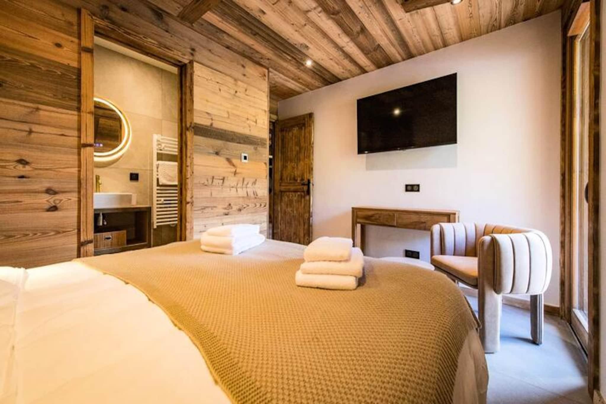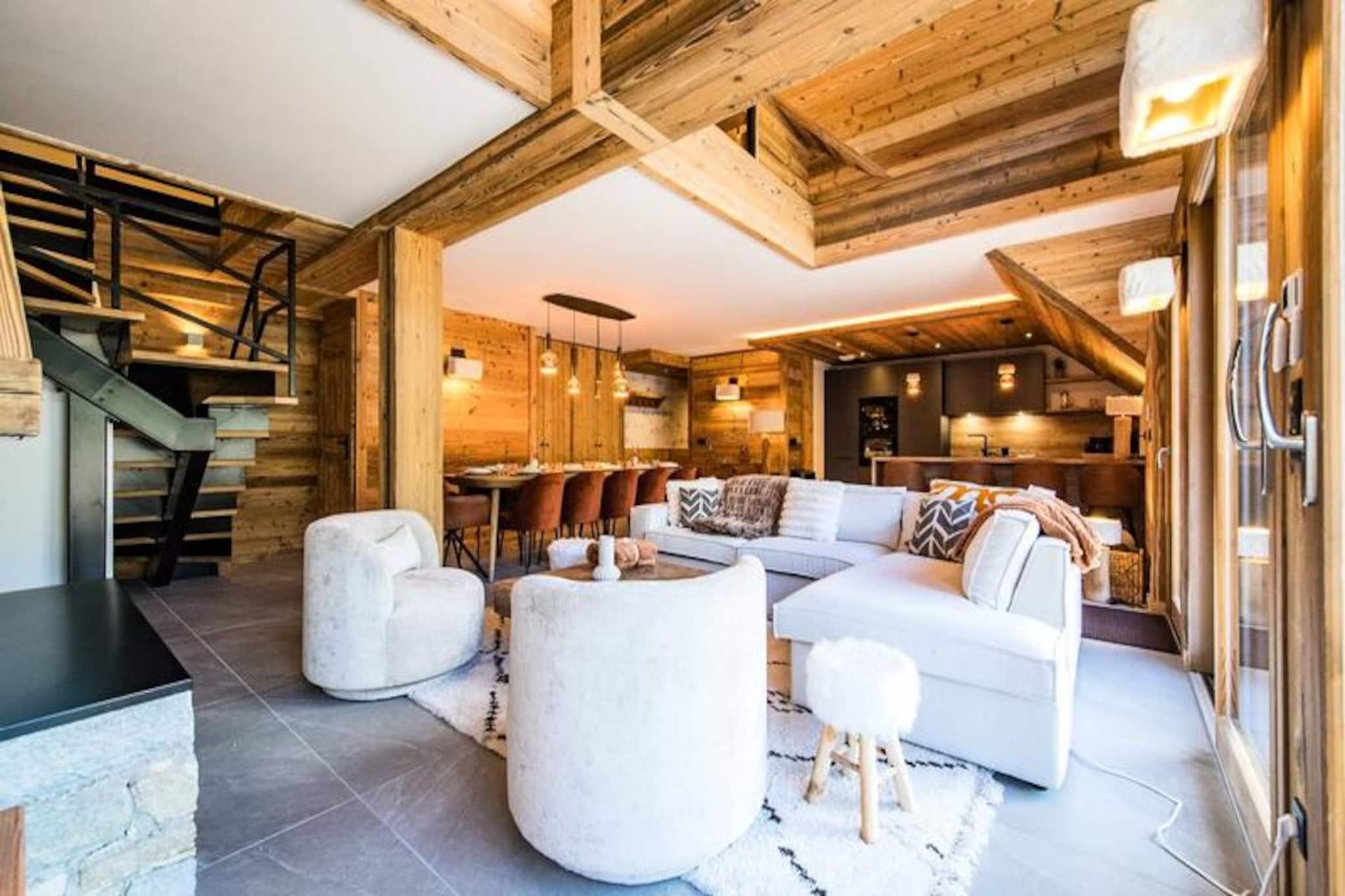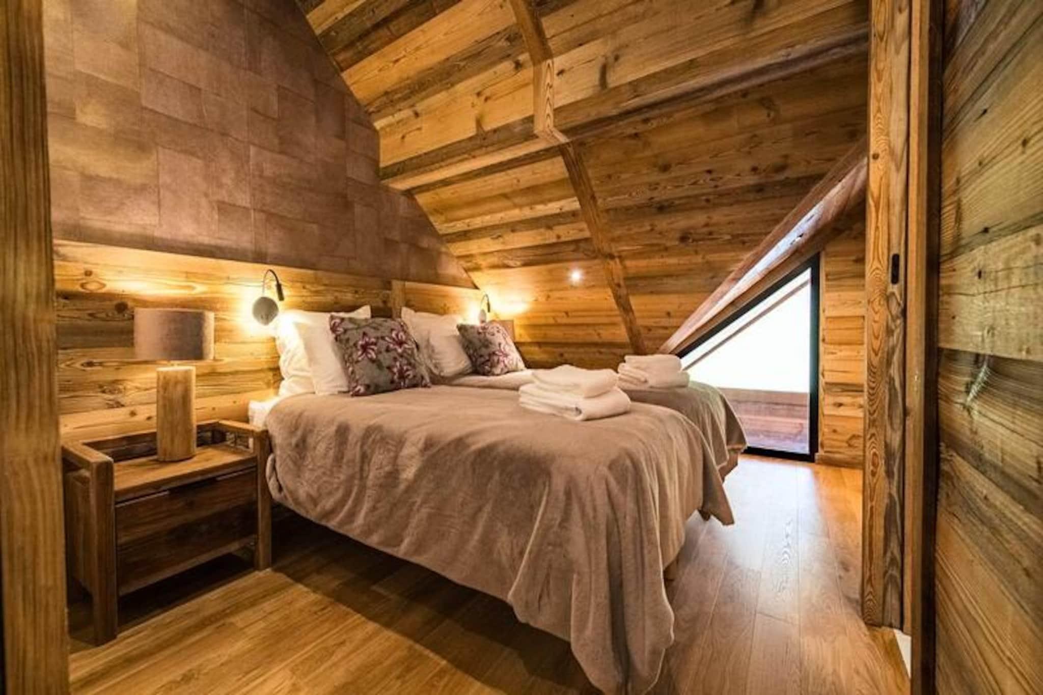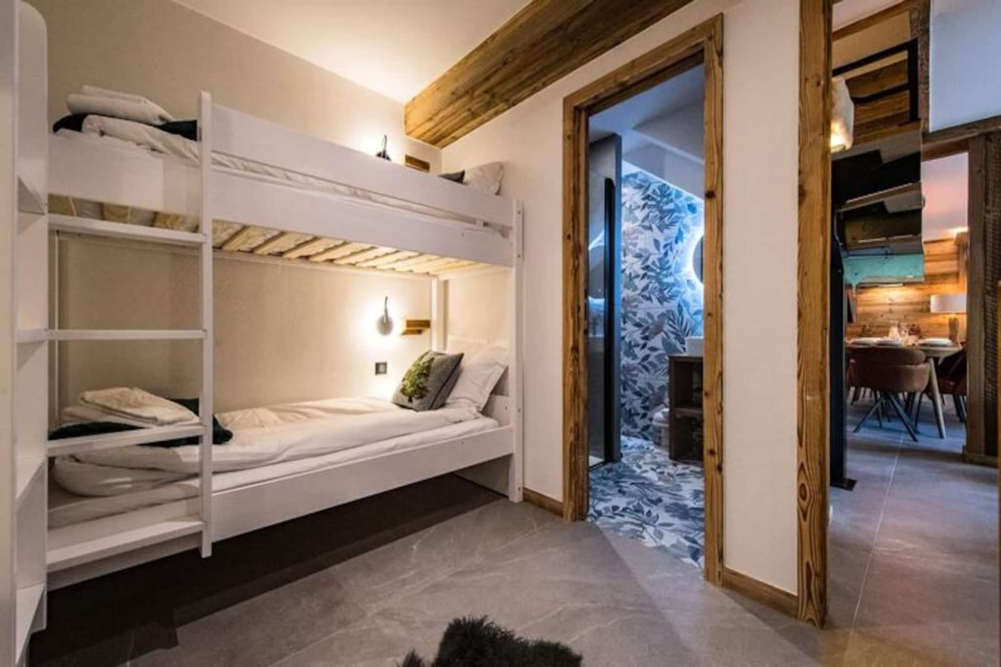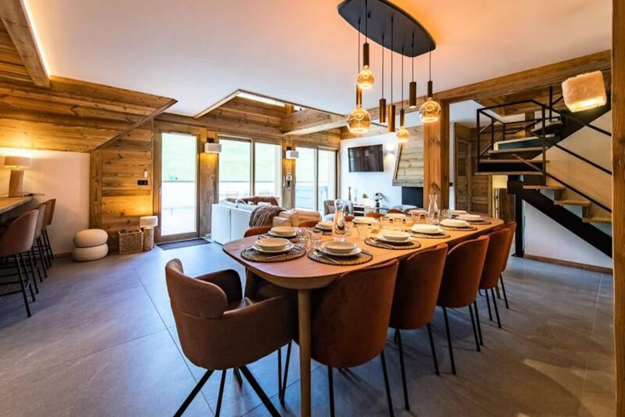 Højt over de glitrende snemarker i La Toussuire inviterer denne luksuriøse duplexlejlighed dig til at opleve de franske alper med stil. Med en betagende udsigt fra den store vestvendte terrasse, komplet med en privat sauna og udendørs jacuzzi, er hvert øjeblik her fyldt med alpin charme. Uanset om du nyder de varme bobler eller ser solnedgangen over bjergtoppene, tilbyder denne bolig et roligt tilflugtssted for familier og venner, der søger en uforglemmelig bjergflugt. \n\nLejligheden er på 130 m² og kombinerer varm, elegant indretning med materialer af høj kvalitet for at skabe en hyggelig, men sofistikeret atmosfære. Den åbne opholdsstue har et fuldt udstyret køkken, en spiseplads og en stue med en bioethanolpejs, perfekt til afslapning efter en dag på pisterne. Fem omhyggeligt designede soveværelser giver rigelig plads til op til tolv gæster, hver med sit eget badeværelse for ultimativ komfort. Yderligere faciliteter inkluderer to skibokse med støvletørrer, et vaskerum og WiFi i hele ejendommen. Slutrengøring, sengelinned og håndklæder er inkluderet, hvilket sikrer en problemfri ferieoplevelse. \n\nBeliggende direkte ved snefronten tilbyder denne lejlighed ægte ski-in/ski-out-bekvemmelighed, så du kan komme ud og prøve pisterne på få minutter. Den nærliggende La Grande Verdette tilbyder reserveret indendørs parkering, mens der er yderligere offentlig parkering i centrum af feriestedet. Ud over skiløb kan La Toussuire prale af en livlig landsbyatmosfære med butikker, restauranter og afterski-aktiviteter kun få skridt væk. \n\nUanset om du er her for at kæmpe dig gennem uberørt puddersne, slappe af i jacuzzien eller udforske det pulserende alpine samfund, leverer denne lejlighed den perfekte blanding af luksus, komfort og eventyr. Book nu for at skabe varige minder i hjertet af de franske alper.