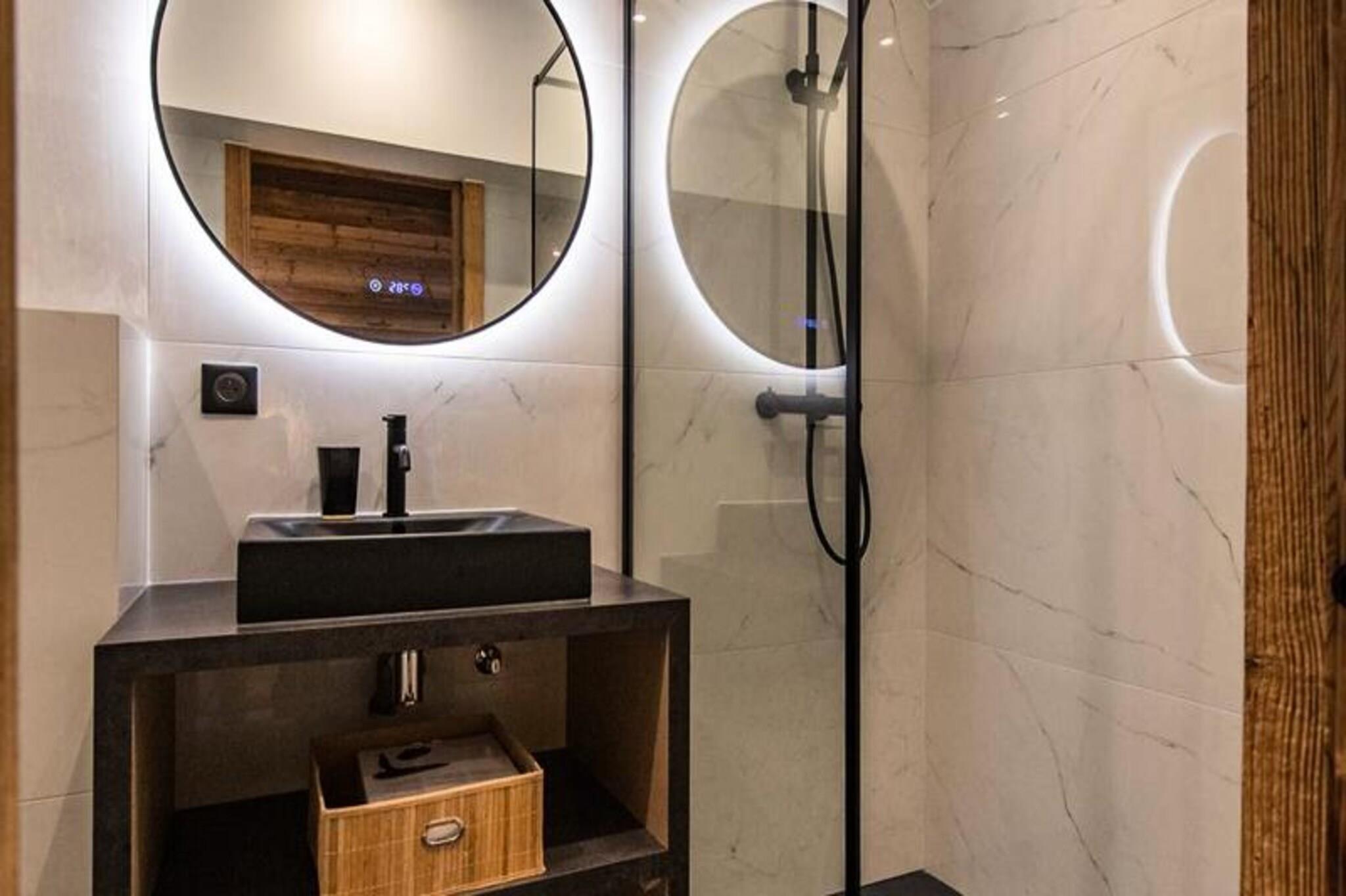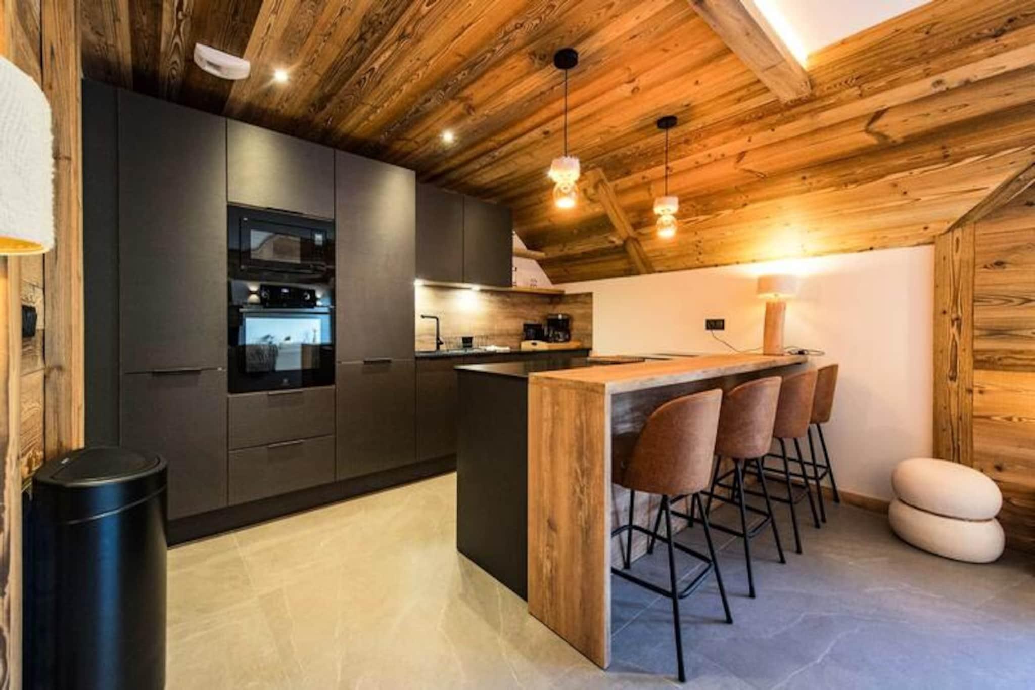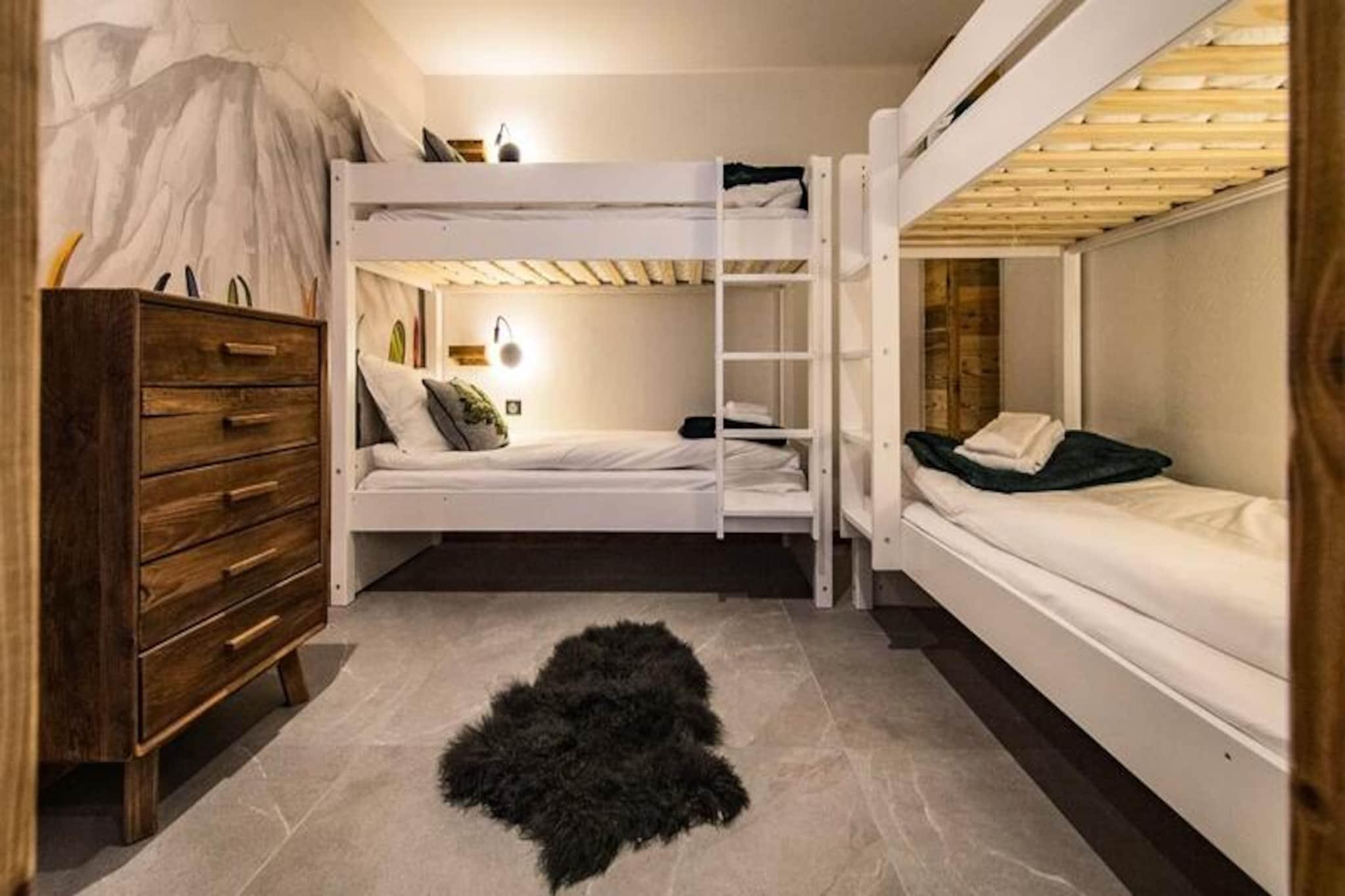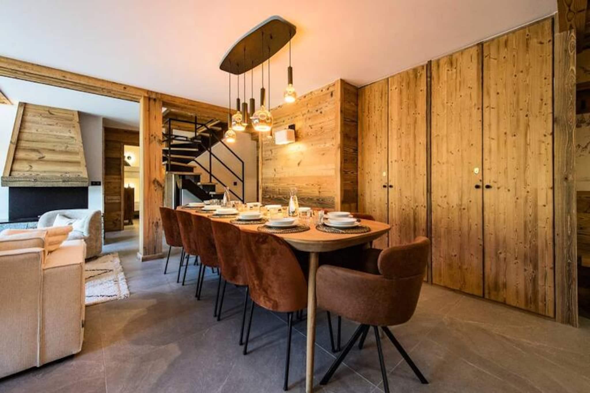 Højt over de glitrende snemarker i La Toussuire inviterer denne luksuriøse duplexlejlighed dig til at opleve de franske alper med stil. Med en betagende udsigt fra den store vestvendte terrasse, komplet med en privat sauna og udendørs jacuzzi, er hvert øjeblik her fyldt med alpin charme. Uanset om du nyder de varme bobler eller ser solnedgangen over bjergtoppene, tilbyder denne bolig et roligt tilflugtssted for familier og venner, der søger en uforglemmelig bjergflugt. \n\nLejligheden er på 130 m² og kombinerer varm, elegant indretning med materialer af høj kvalitet for at skabe en hyggelig, men sofistikeret atmosfære. Den åbne opholdsstue har et fuldt udstyret køkken, en spiseplads og en stue med en bioethanolpejs, perfekt til afslapning efter en dag på pisterne. Fem omhyggeligt designede soveværelser giver rigelig plads til op til tolv gæster, hver med sit eget badeværelse for ultimativ komfort. Yderligere faciliteter inkluderer to skibokse med støvletørrer, et vaskerum og WiFi i hele ejendommen. Slutrengøring, sengelinned og håndklæder er inkluderet, hvilket sikrer en problemfri ferieoplevelse. \n\nBeliggende direkte ved snefronten tilbyder denne lejlighed ægte ski-in/ski-out-bekvemmelighed, så du kan komme ud og prøve pisterne på få minutter. Den nærliggende La Grande Verdette tilbyder reserveret indendørs parkering, mens der er yderligere offentlig parkering i centrum af feriestedet. Ud over skiløb kan La Toussuire prale af en livlig landsbyatmosfære med butikker, restauranter og afterski-aktiviteter kun få skridt væk. \n\nUanset om du er her for at kæmpe dig gennem uberørt puddersne, slappe af i jacuzzien eller udforske det pulserende alpine samfund, leverer denne lejlighed den perfekte blanding af luksus, komfort og eventyr. Book nu for at skabe varige minder i hjertet af de franske alper.
