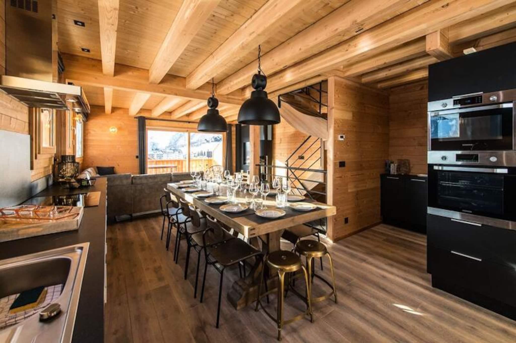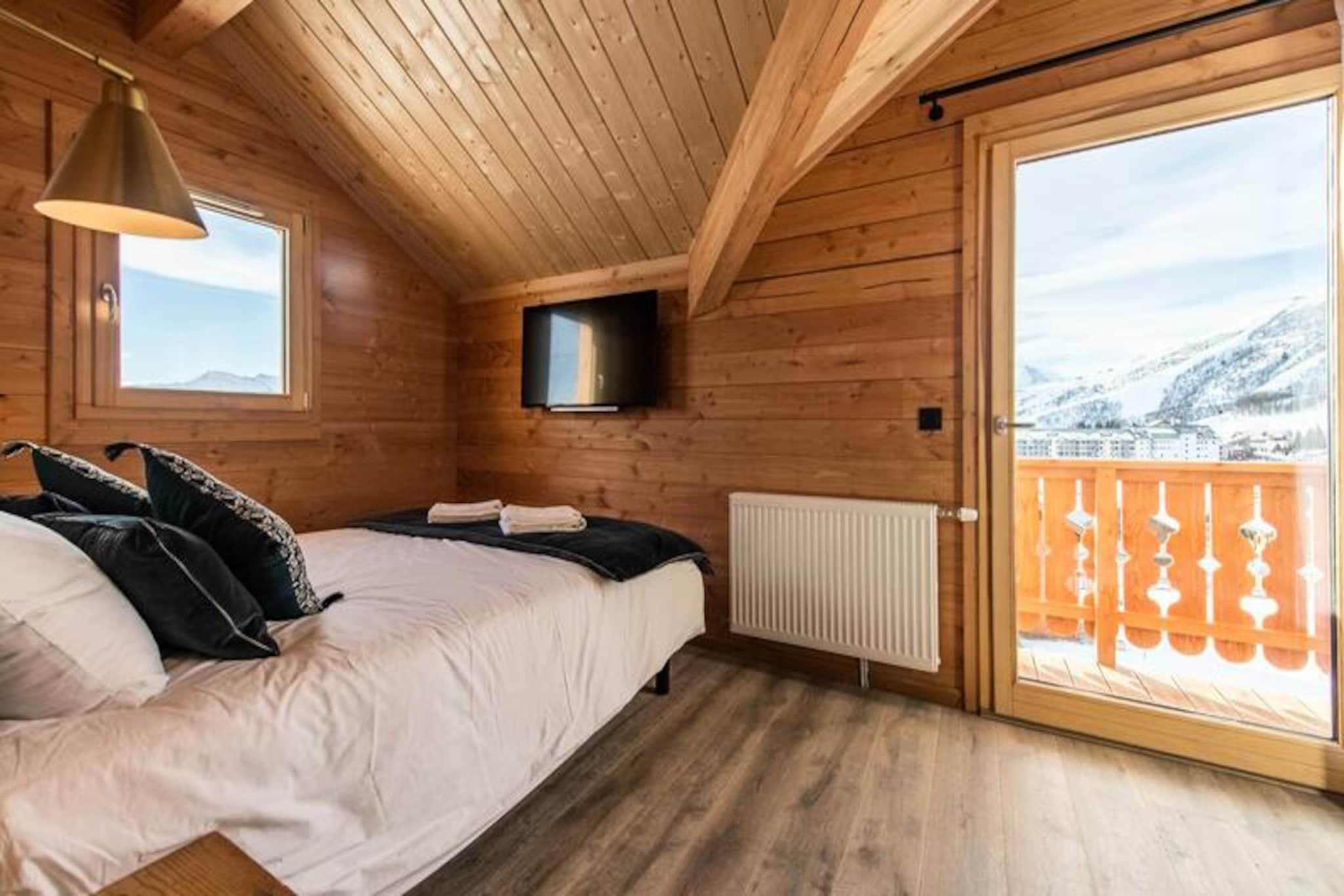 Højt over de fredfyldte alpine landskaber inviterer denne fantastiske hytte dig til at opleve de franske alpers skønhed i uovertruffen komfort. Med sin sydvendte beliggenhed fyldes Lake Louise med naturligt lys og tilbyder en betagende 180° udsigt over de majestætiske Aiguilles d'Arves-toppe. Uanset om du søger eventyr på pisterne eller rolige øjeblikke ved pejsen, er denne ejendom designet til at skabe uforglemmelige minder. Fra indgangen i haveplan, der er udstyret med skiopbevaring og støvletørrer, er hver detalje omhyggeligt udvalgt for din bekvemmelighed og nydelse. \n\nChaleten kan prale af en rummelig planløsning på tre etager med plads til op til 12 gæster. I stueetagen finder du et hyggeligt soveværelse med dobbeltseng, en sovesal med to køjesenge, et badeværelse med dobbelt håndvask og et vaskerum. Hjertet af hjemmet ligger i den store opholdsstue, hvor et fuldt udstyret køkken, spiseplads og en komfortabel stue med pejs åbner ud til en terrasse med panoramaudsigt. Ovenpå har master-suiten eget badeværelse og en privat balkon, mens yderligere soveværelser og en sovesal giver rigelig plads til familier eller grupper. Moderne faciliteter såsom Wi-Fi, en elektrisk ladestation og slutrengøring sikrer et stressfrit ophold. \n\nDenne hytte ligger i nærheden af ??skiløjper i verdensklasse og tilbyder problemfri adgang til liftkort og skilektioner, der leveres direkte til din dør ved ankomst. Gæster kan også nyde eksklusive rabatter på leje af udstyr og skilektioner, når de booker på forhånd. Ud over skiløb forvandles regionen til et sommerparadis med vandrestier, mountainbiking og betagende udsigter. Uanset om du udforsker de uberørte omgivelser eller slapper af i hyttens varme, er Lake Louise din port til Alpernes vidundere. Book nu og fordyb dig i magien ved dette alpine tilflugtssted.