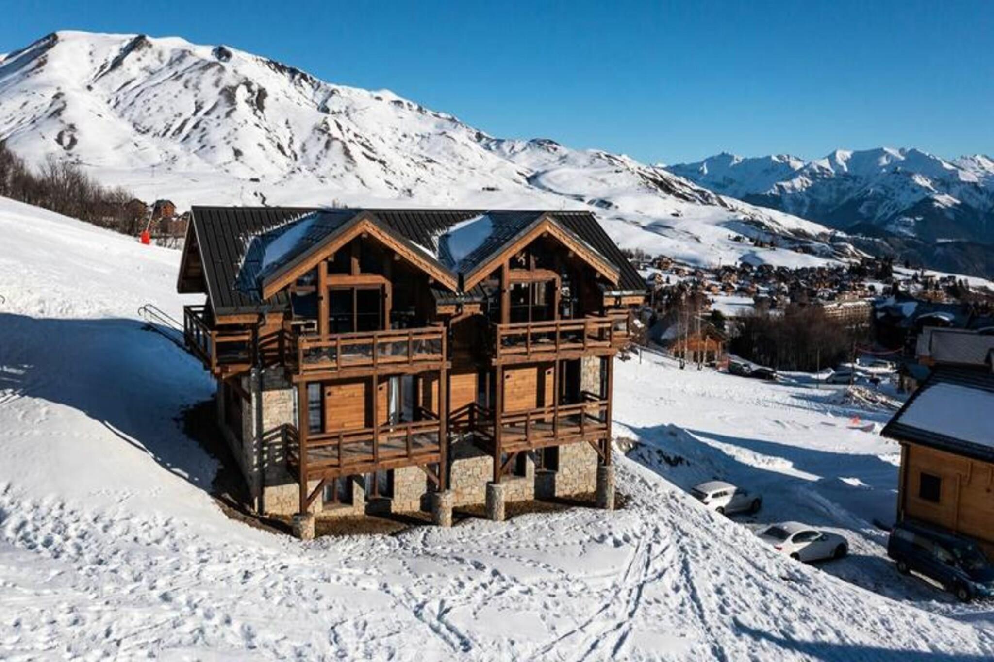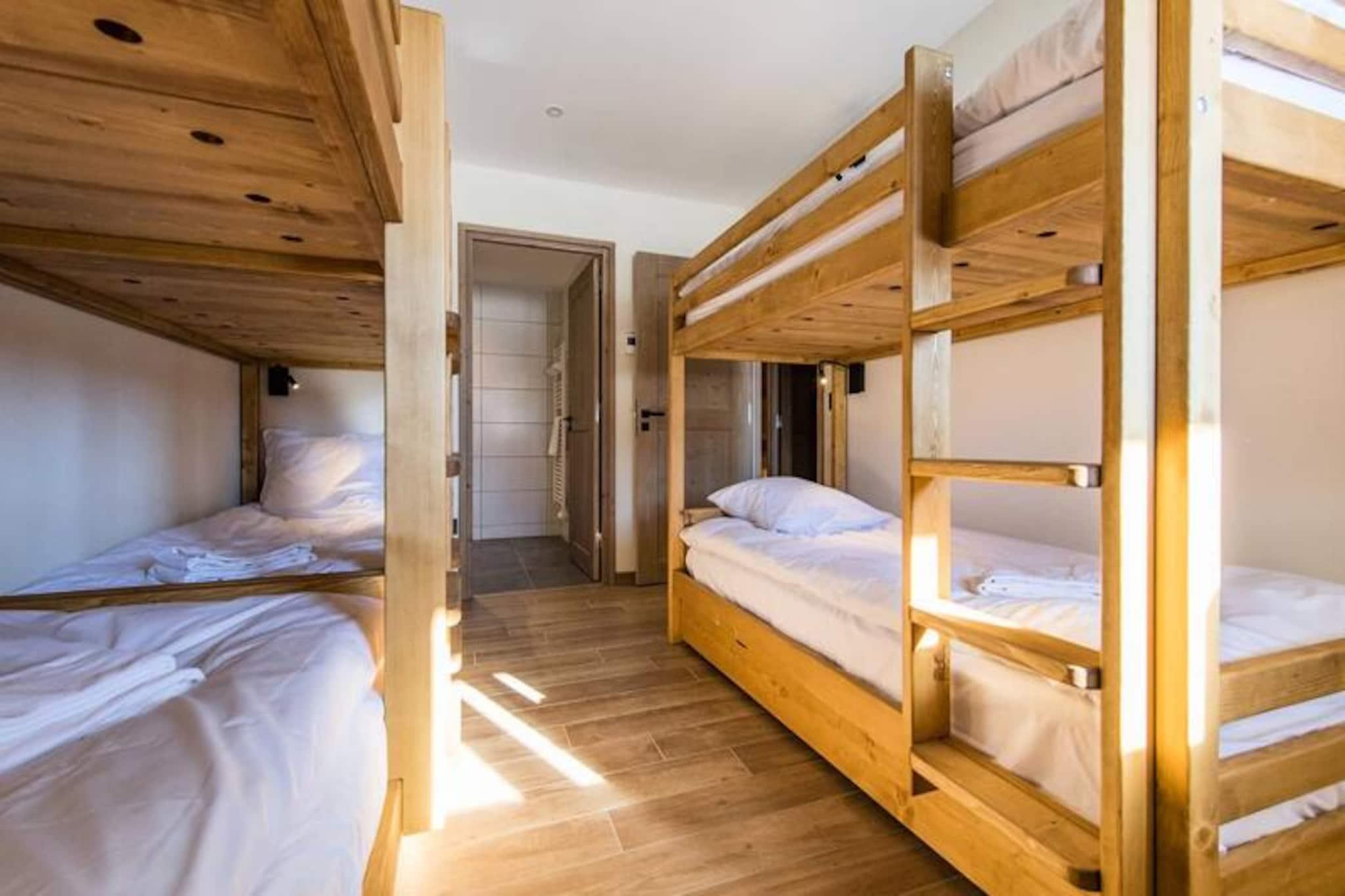 I hjertet af de franske alper, hvor snedækkede tinder møder endeløse blå himmel, inviterer denne fantastiske hytte dig til at opleve det ultimative bjergtilflugtssted. Med sit sofistikerede design og varme atmosfære er det de perfekte rammer for uforglemmelige øjeblikke med familie eller venner. Den sydvendte orientering sikrer rigeligt naturligt lys og en betagende udsigt, hvilket skaber en rolig atmosfære at slappe af i efter en dag med alpine eventyr. \n\nFordelt på tre etager tilbyder hytten exceptionel komfort og gennemtænkte faciliteter. I haveplan finder du et skirum til praktisk opbevaring, en master suite med en queensize-seng og eget brusebad, en sovesal med tre køjesenge med plads til seks gæster, et ekstra brusebad og to separate toiletter. Første sal kan prale af yderligere to master suiter, hver med en queensize-seng og eget brusebad, en sauna til ultimativ afslapning og et spisekammer. Kronjuvelen er opholdsstuen på øverste etage med en hyggelig stue, en spisestue og et fuldt udstyret køkken med førsteklasses apparater, herunder to opvaskemaskiner og en 90 cm induktionskogeplade. Moderne bekvemmeligheder som Wi-Fi og inkluderet sengetøj sikrer et stressfrit ophold. \n\nBeliggende kun få øjeblikke fra pisterne er dette chalet et paradis for skientusiaster. Med liftkort og skilektionskort leveret direkte til din dør begynder dit alpine eventyr i det øjeblik, du ankommer. Derudover giver forudbestilling dig eksklusive rabatter på leje af udstyr og liftkort. Uanset om du udforsker de uberørte stier eller slapper af i saunaen, tilbyder dette chalet en problemfri blanding af luksus og bekvemmelighed. Gå ikke glip af chancen for at skabe dyrebare minder i denne idylliske bjergferie.